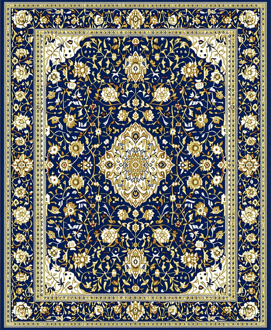 Chateau Collection Grandeur Medallion Regal Blue Tan Classic Motif(Blue)