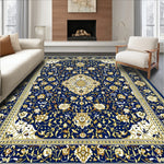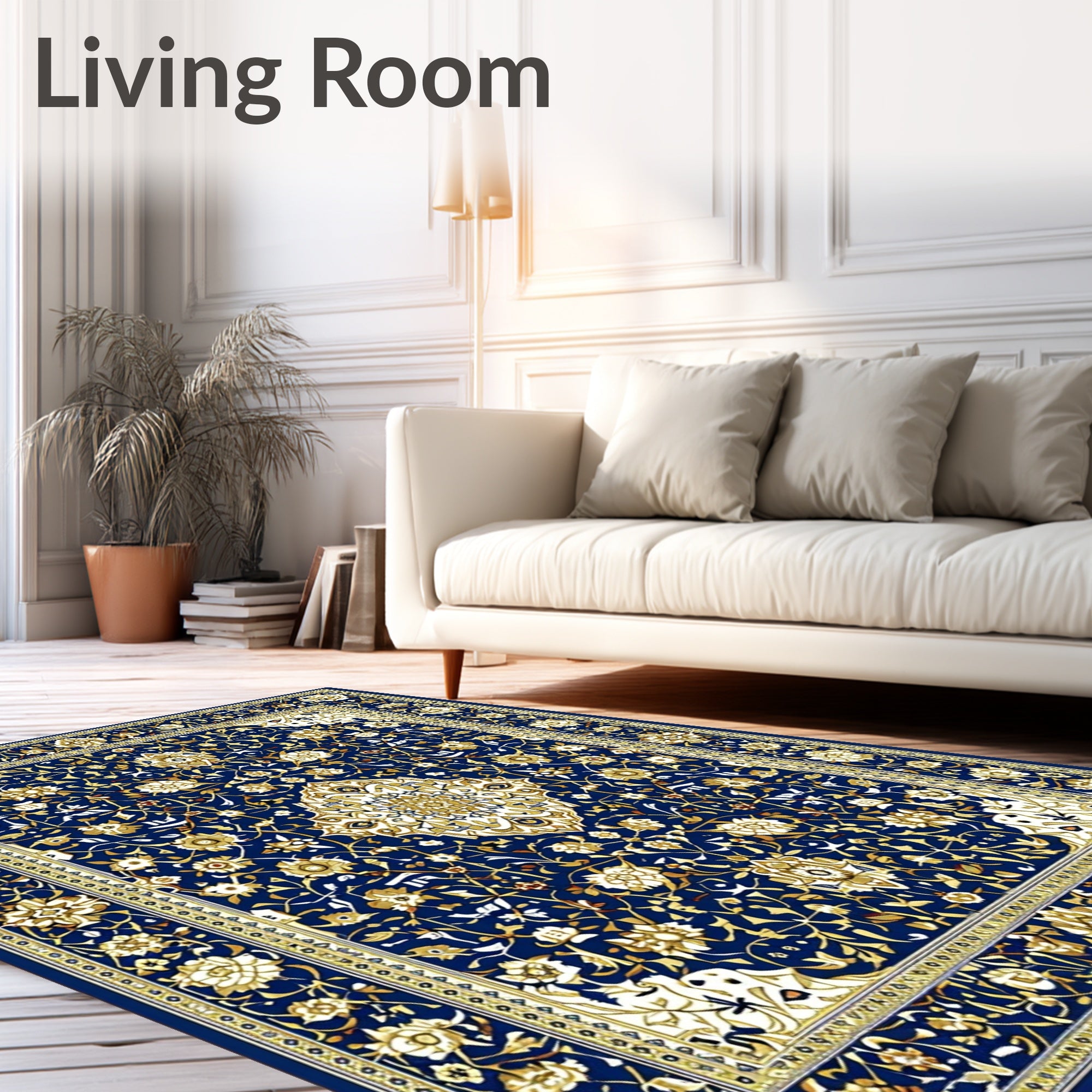 Ultra Soft Area Rug, Non Slip, Stain Resistant, Washable Area Rugs for Living Room, Bedroom, Chateau Collection Grandeur Medallion Regal Blue Tan Classic Motif(Blue) Overview: