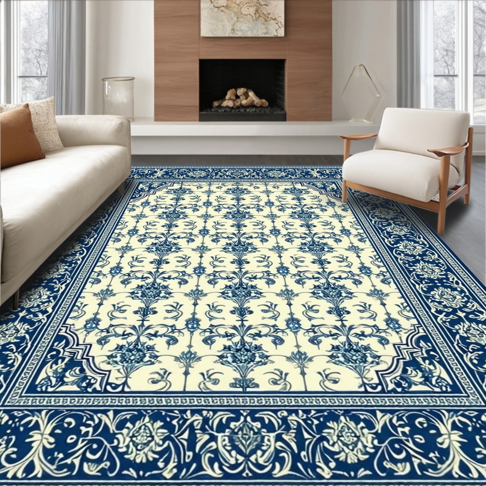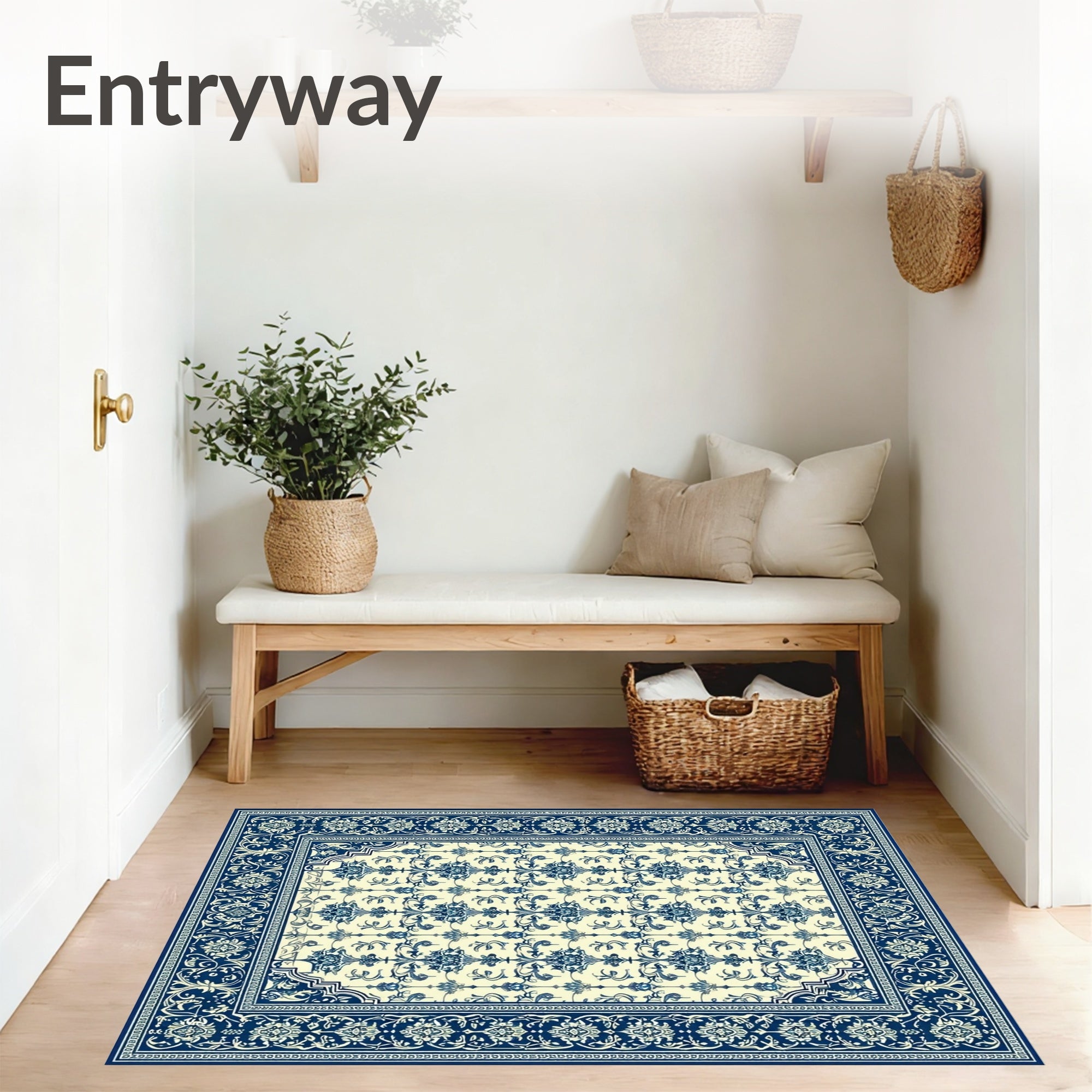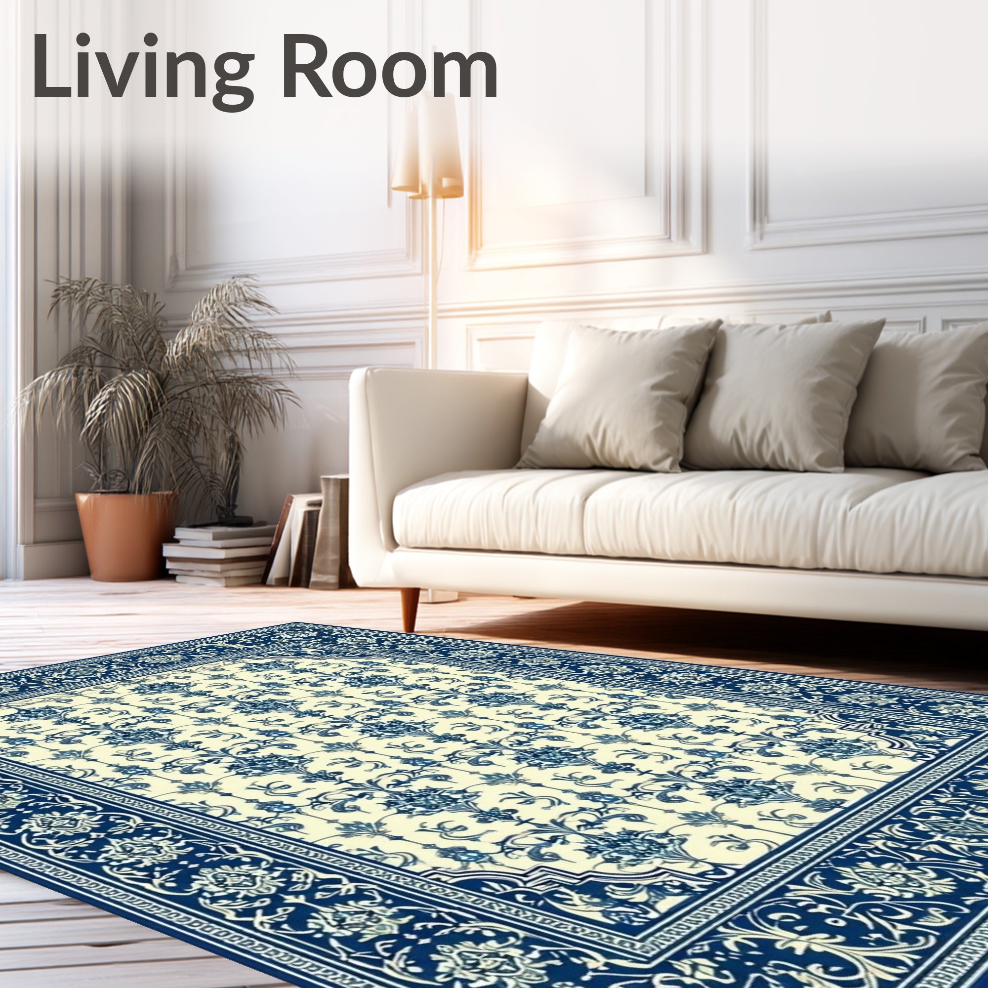Ultra Soft Area Rug, Non Slip, Stain Resistant, Washable Area Rugs for Living Room, Bedroom, Chateau Collection Sapphire Crest Area Dark Blue Beige(Blue) Overview: