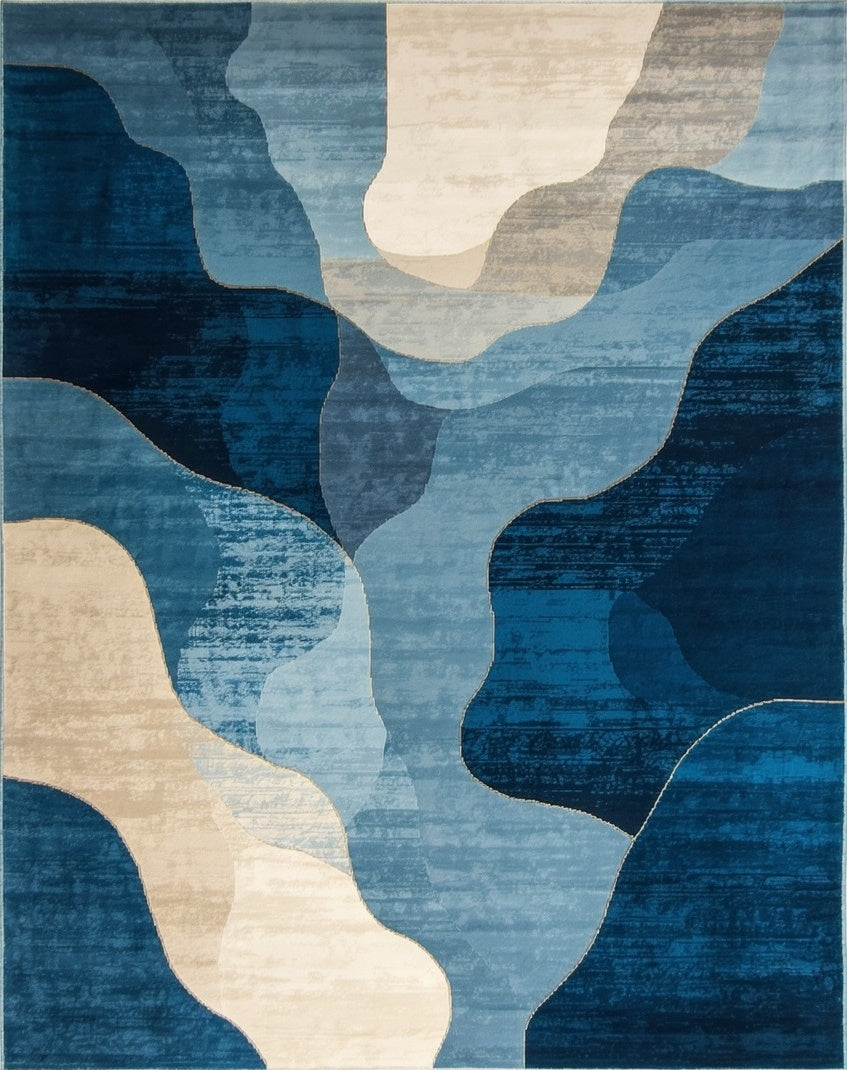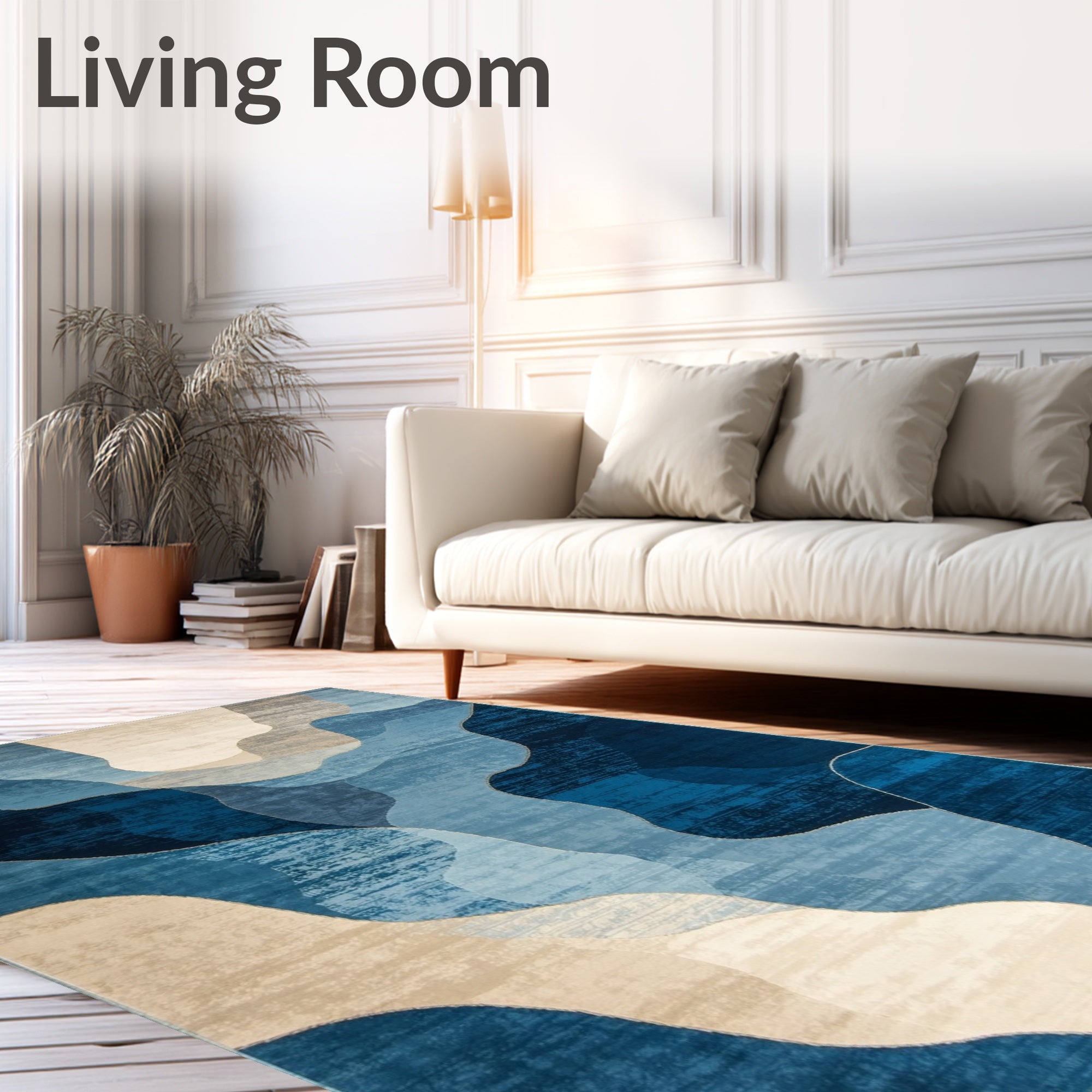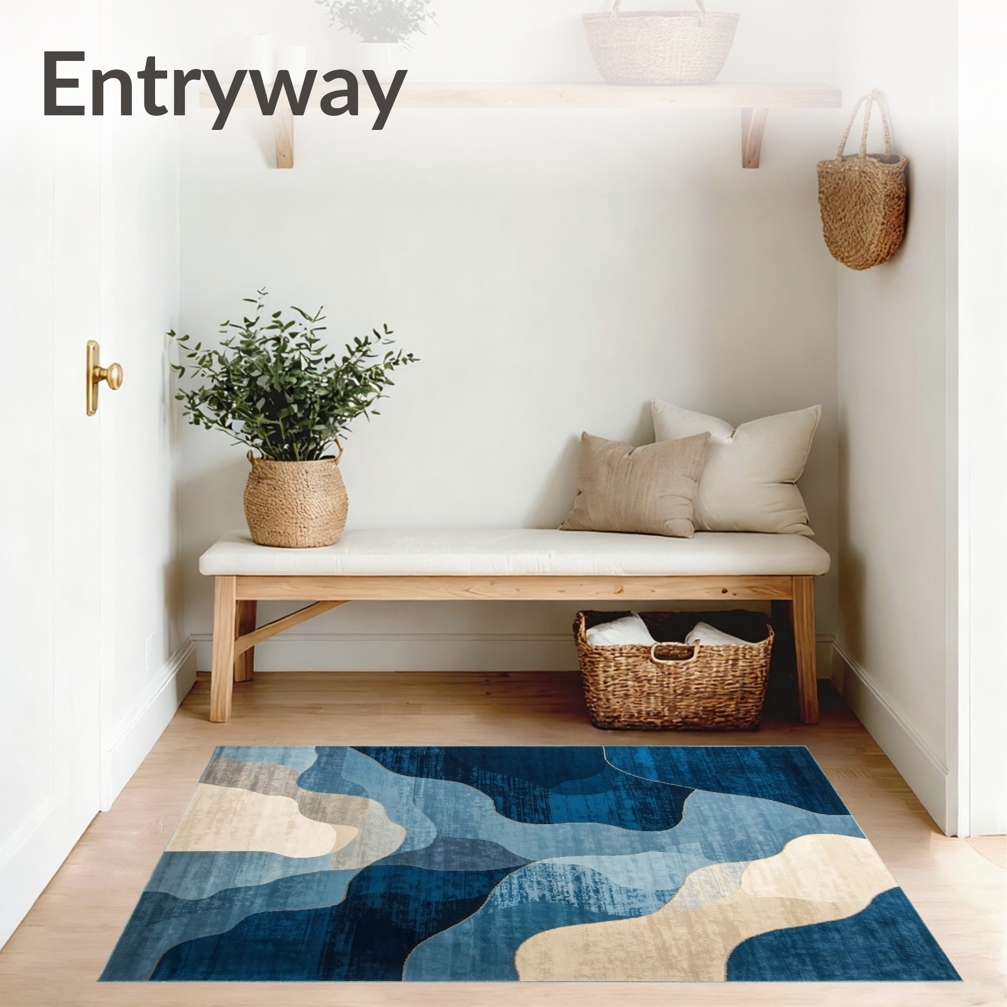 Ultra Soft Area Rug, Non Slip, Stain Resistant, Washable Area Rugs for Living Room, Bedroom, Chateau Collection Serene Horizon Area Dark Blue Beige Abstract Design(Blue) Overview: