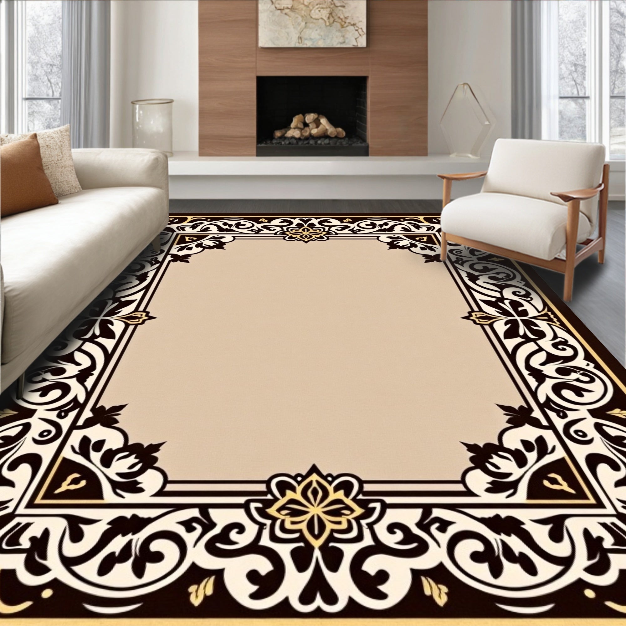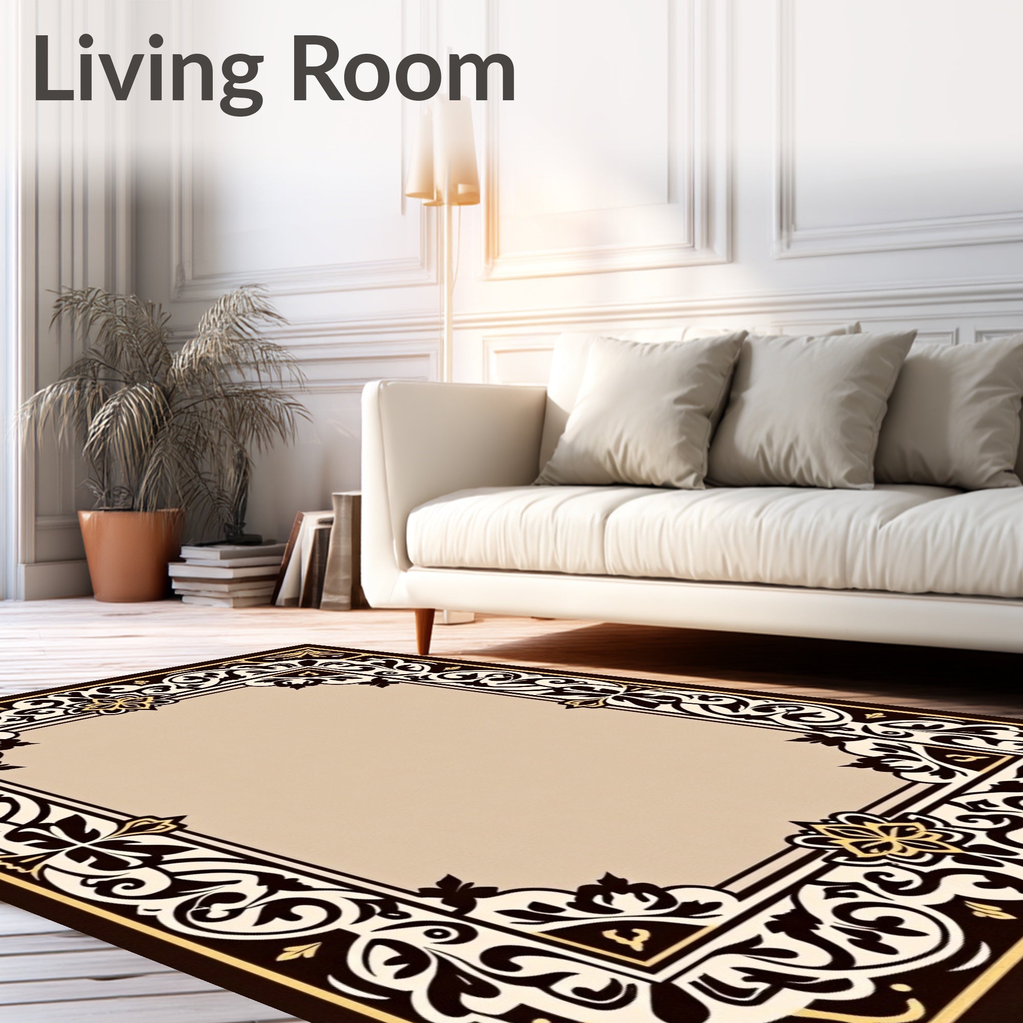 Ultra Soft Area Rug, Non Slip, Stain Resistant, Washable Area Rugs for Living Room, Bedroom, Chateau Garden Trellis with Vintage Interlocking Botanical Embellishments(Beige) Overview: