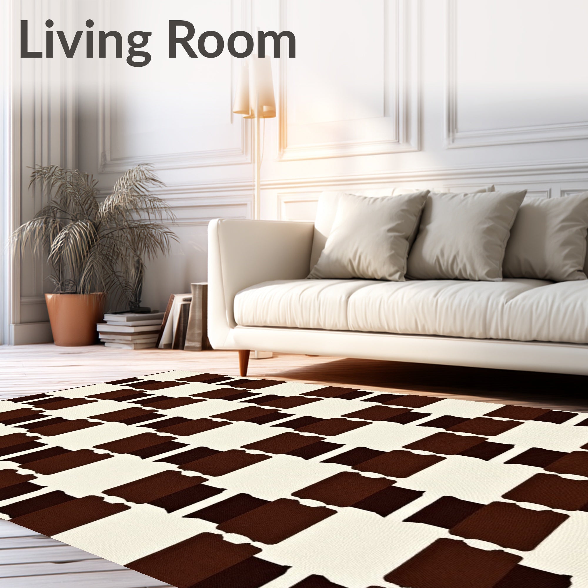 Ultra Soft Area Rug, Non Slip, Stain Resistant, Washable Area Rugs for Living Room, Bedroom, Checker with Hand Inspired Folk Art Appeal(Ivory) Overview: