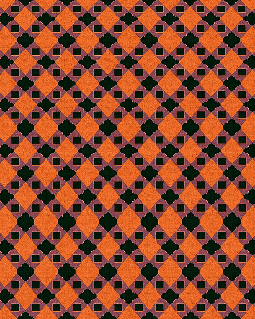 Checkered Grid Area with Intersecting Lines Design(Orange)