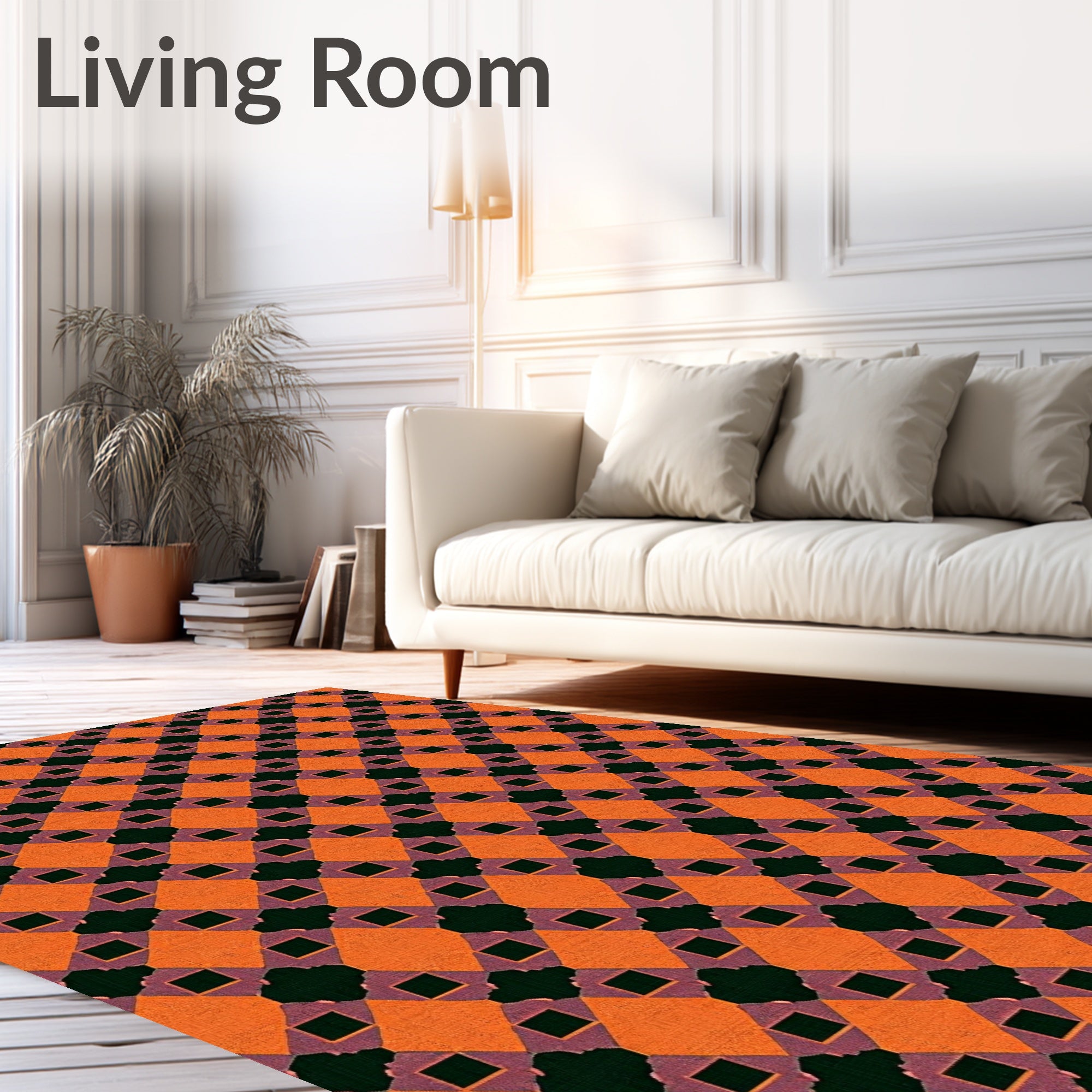 Ultra Soft Area Rug, Non Slip, Stain Resistant, Washable Area Rugs for Living Room, Bedroom, Checkered Grid Area with Intersecting Lines Design(Orange) Overview: