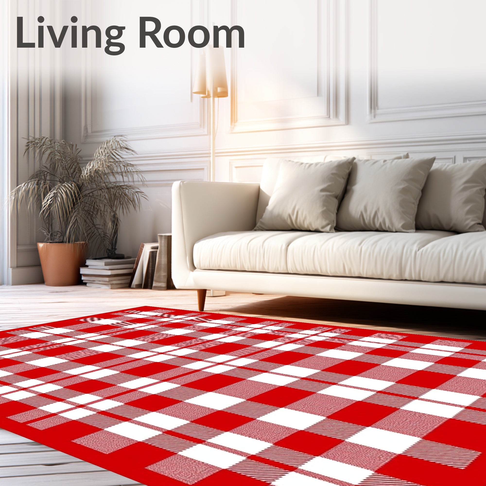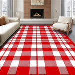 Ultra Soft Area Rug, Non Slip, Stain Resistant, Washable Area Rugs for Living Room, Bedroom, Checkered Plaid with Classic Holiday Design(Red) Overview: