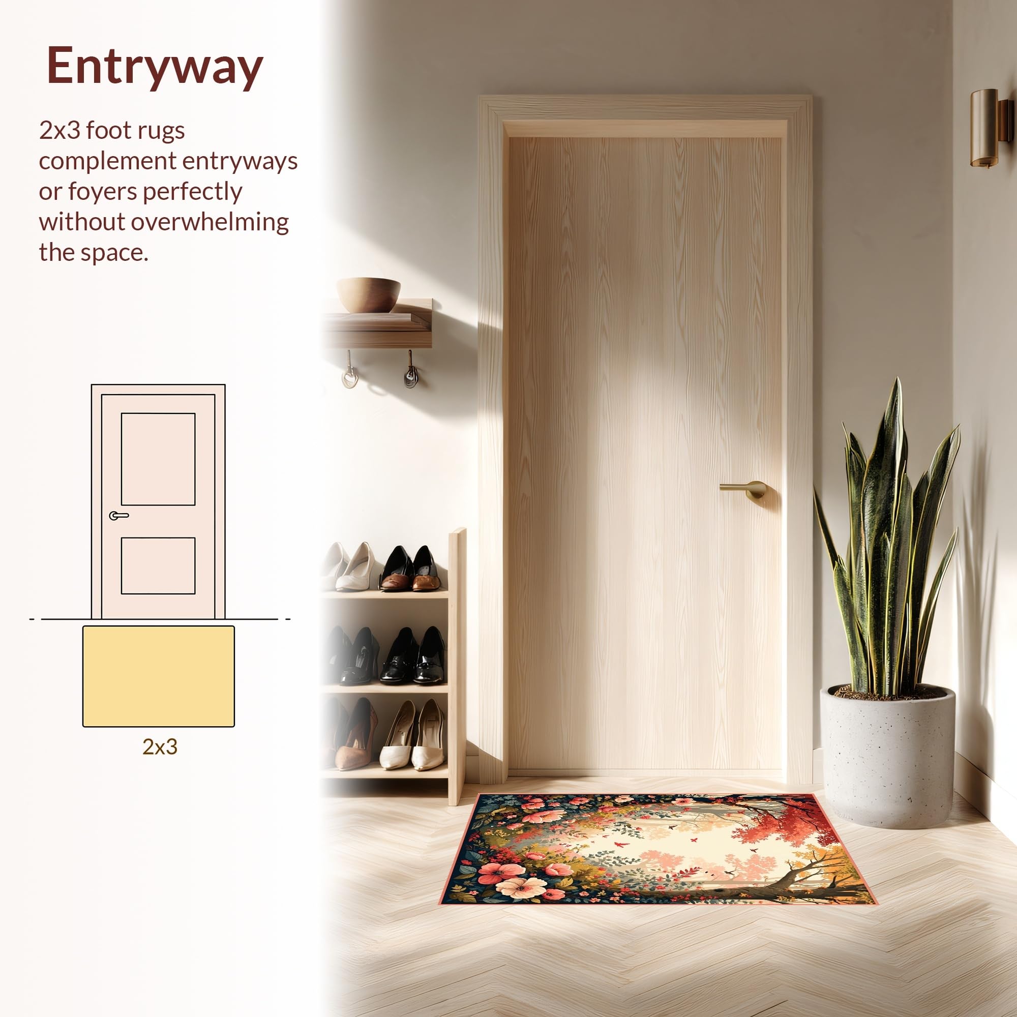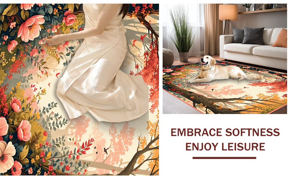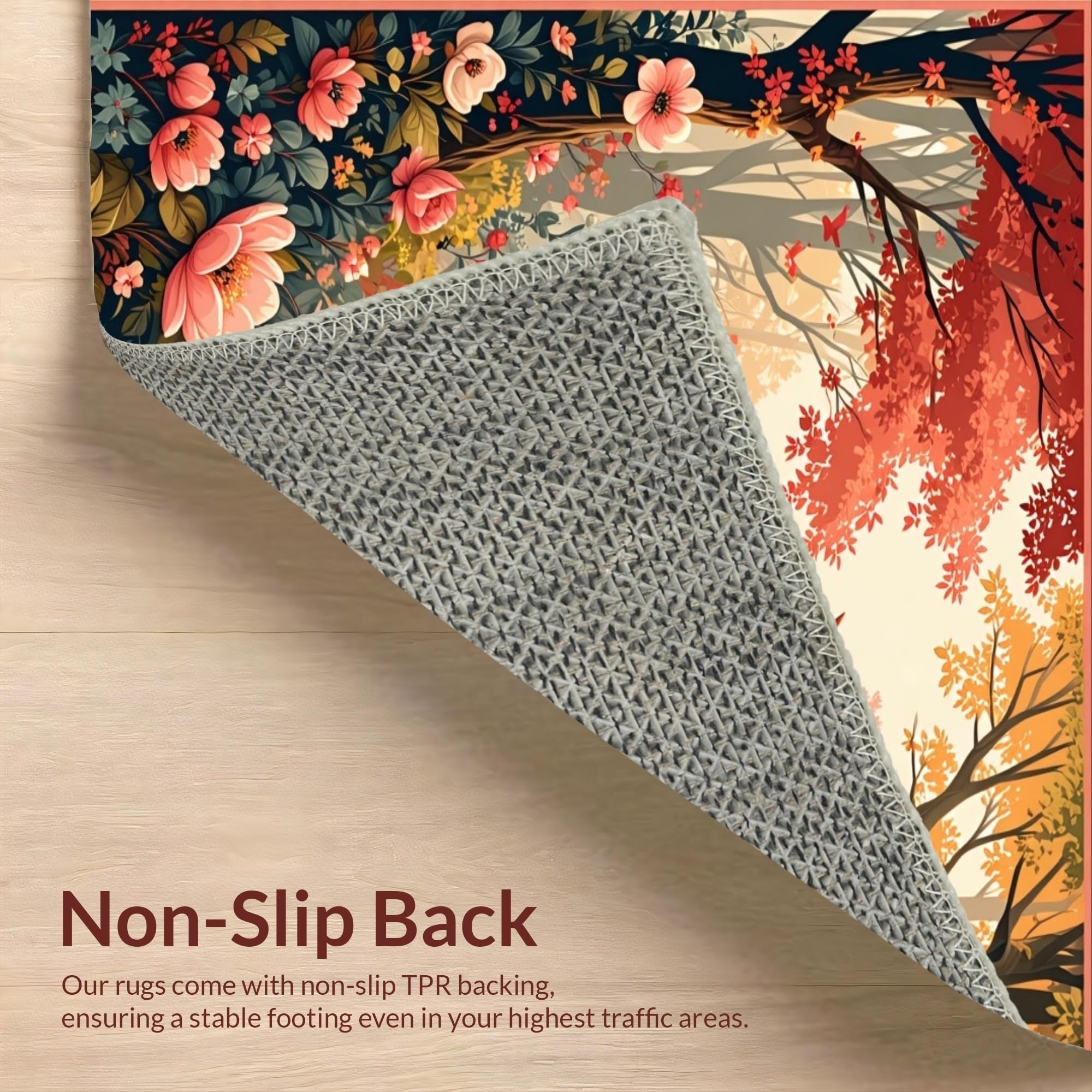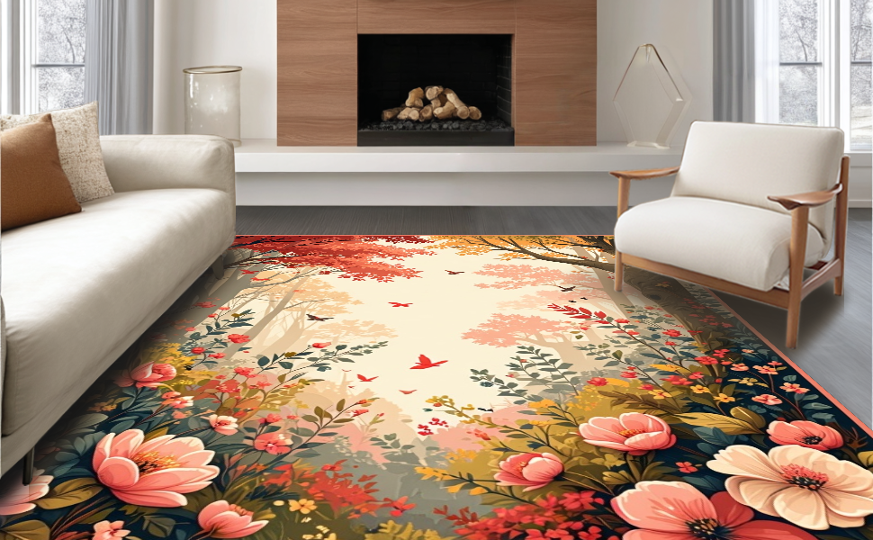 Ultra Soft Area Rug, Non Slip, Stain Resistant, Washable Area Rugs for Living Room, Bedroom, Cheerful Abstract Botanical Pattern(Red) Overview: