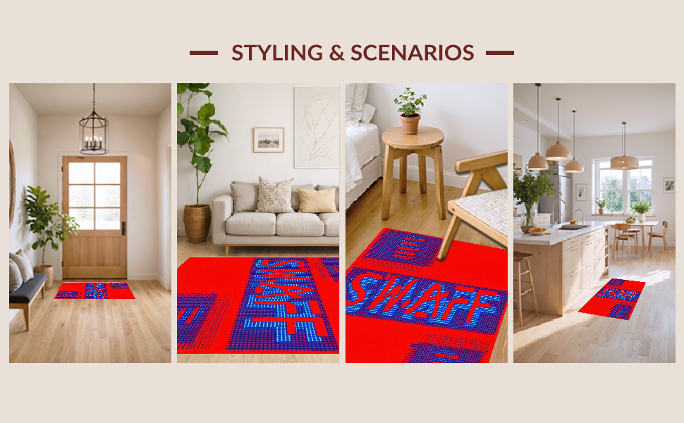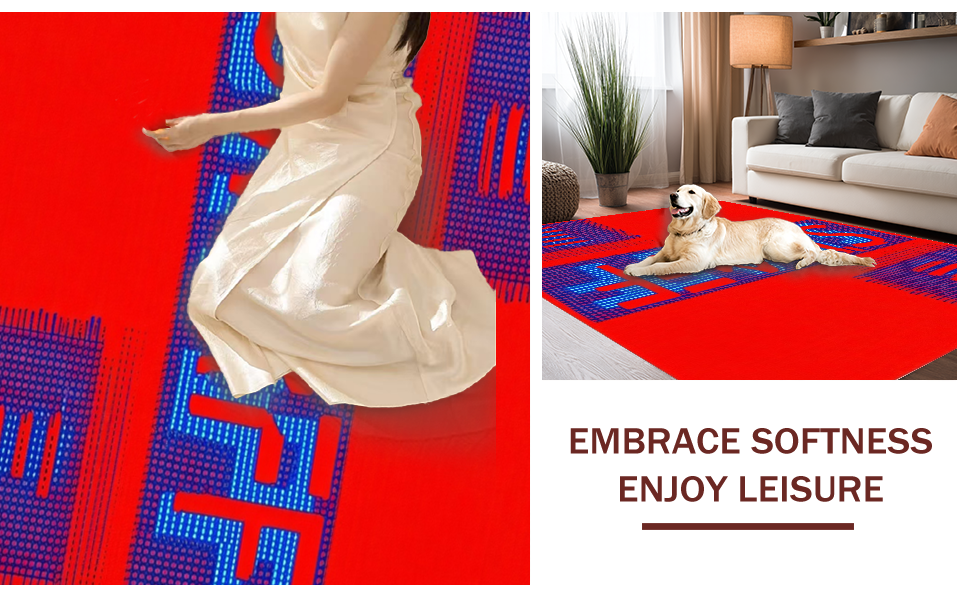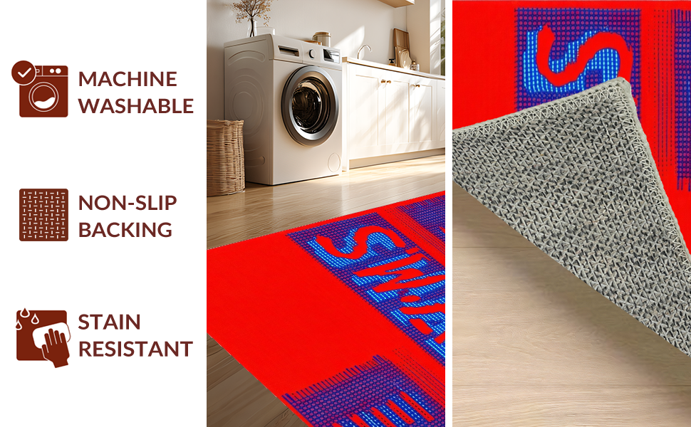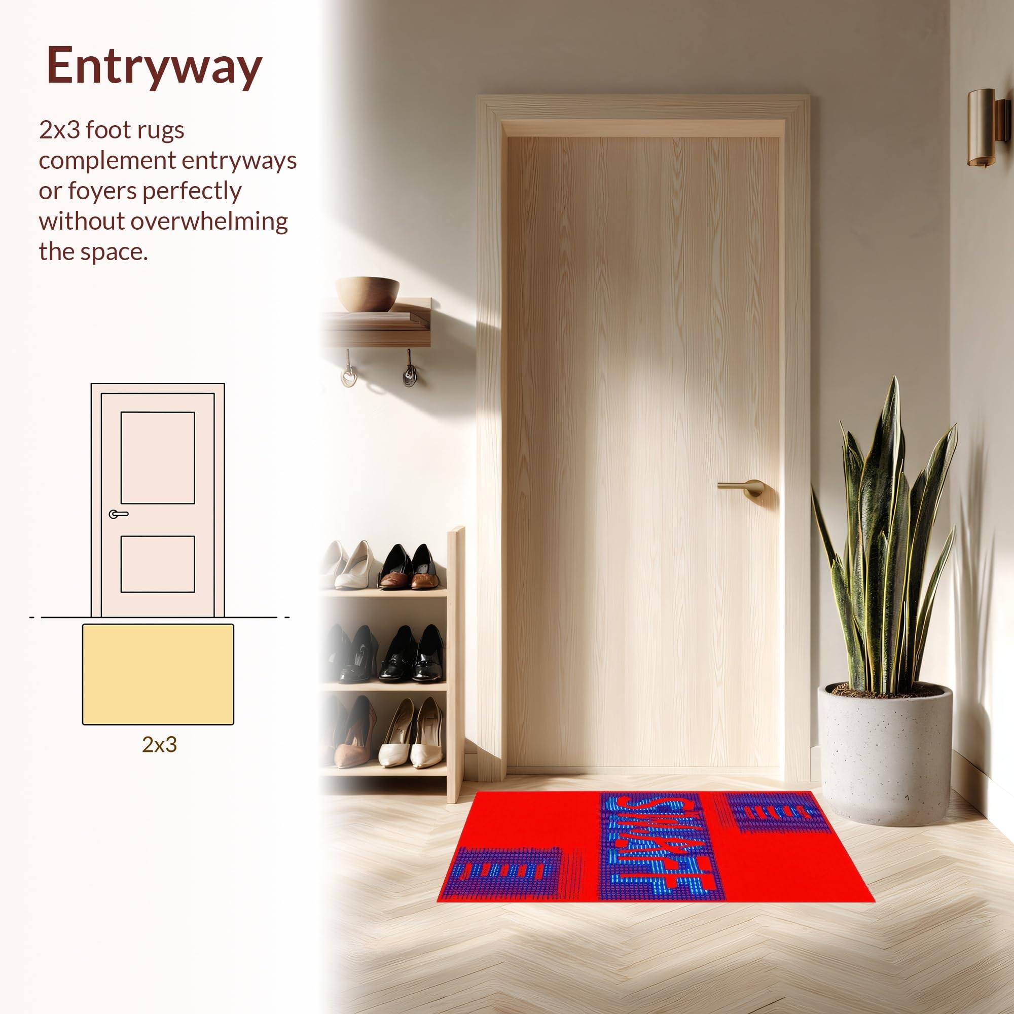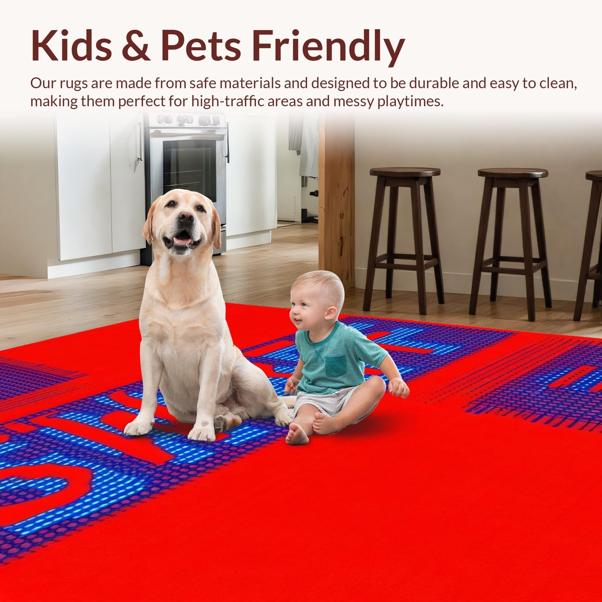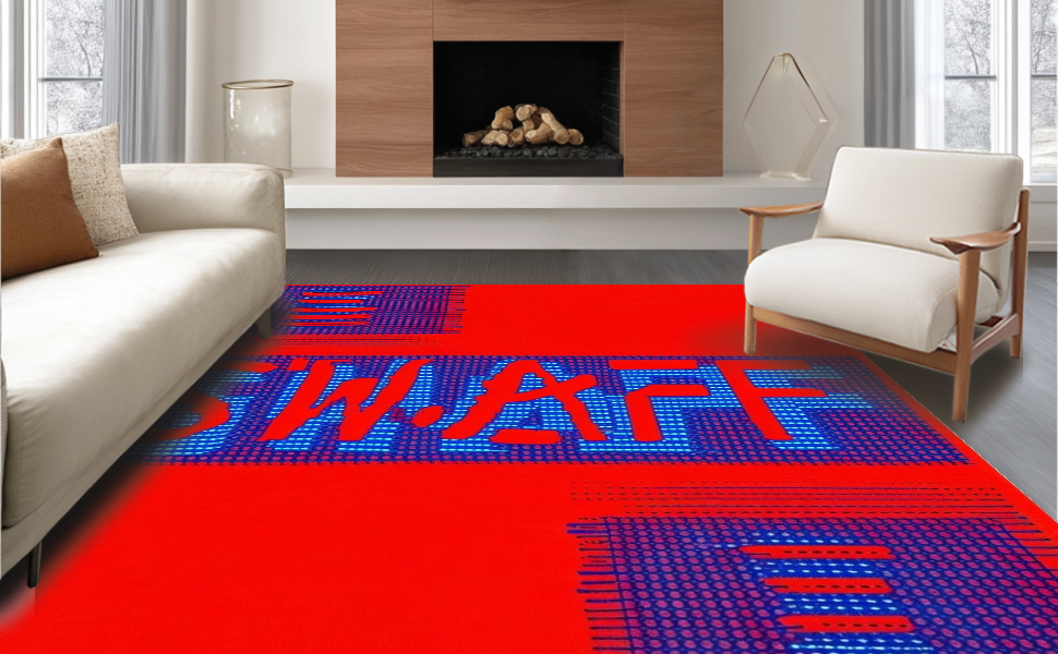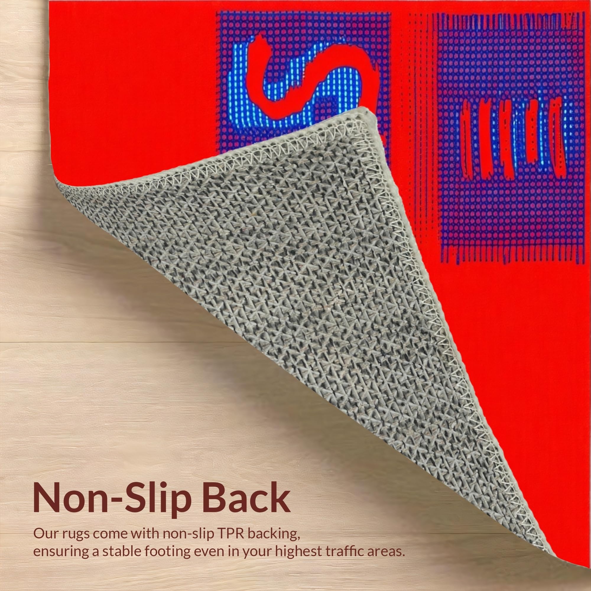 Ultra Soft Area Rug, Non Slip, Stain Resistant, Washable Area Rugs for Living Room, Bedroom, Cheerful Abstract Typography Style(Red) Overview: