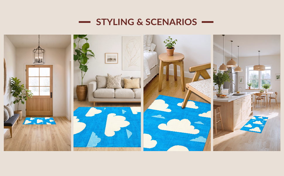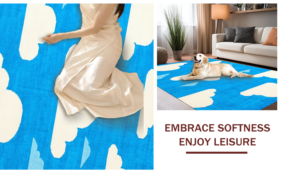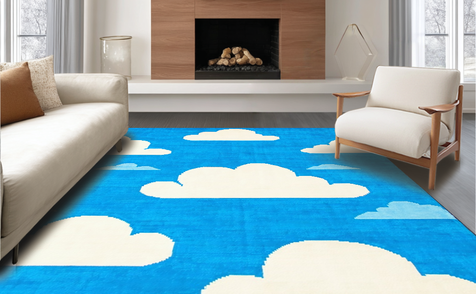 Ultra Soft Area Rug, Non Slip, Stain Resistant, Washable Area Rugs for Living Room, Bedroom, Cheerful Airy Design Inspiration(Blue) Overview: