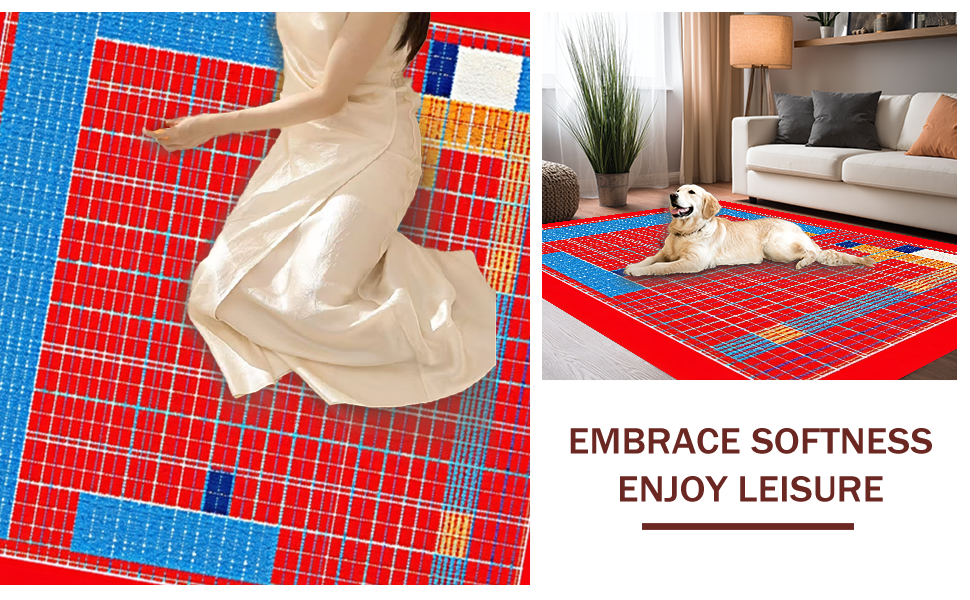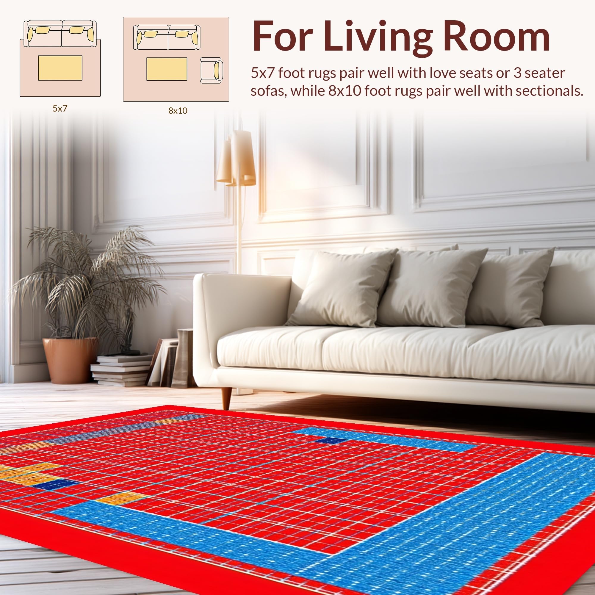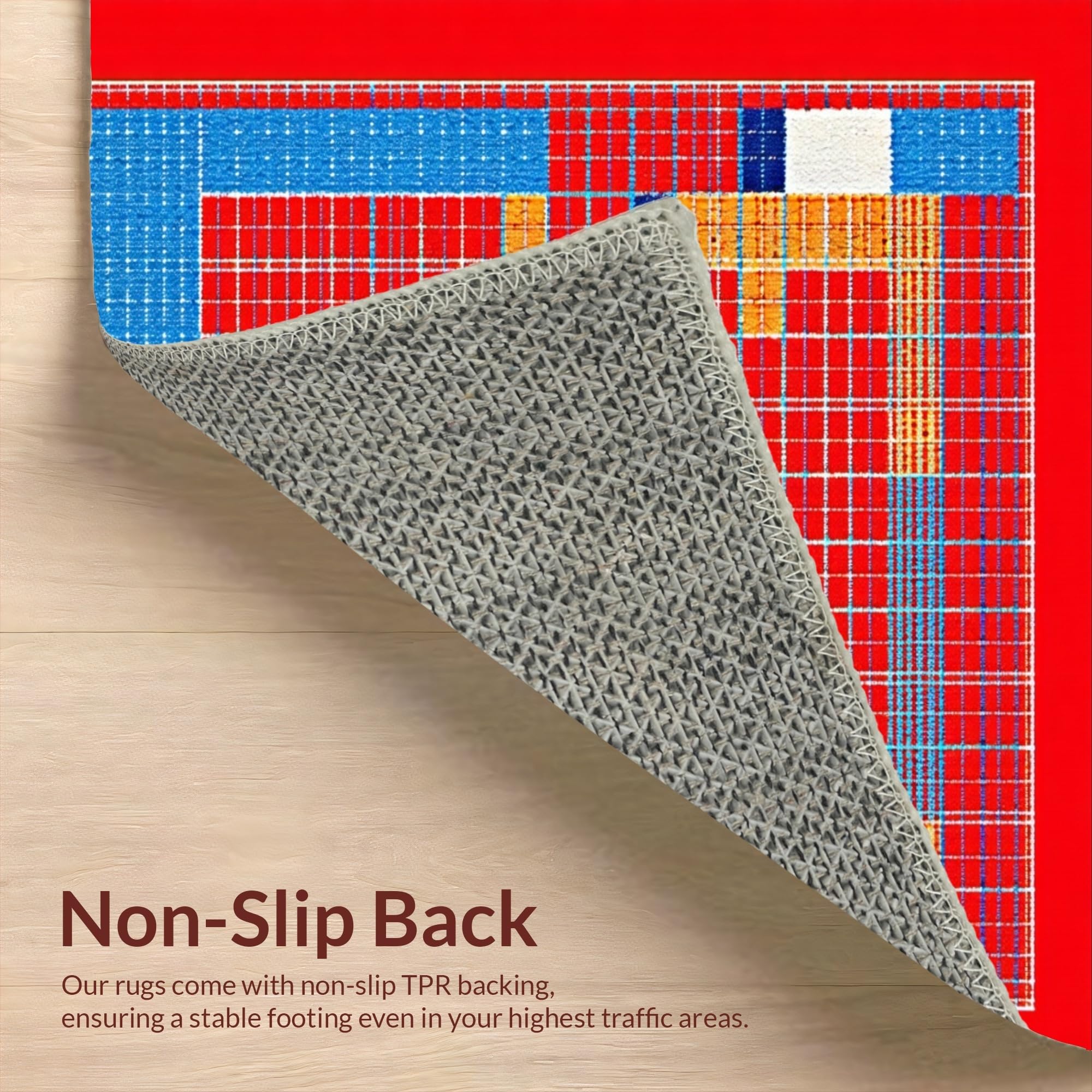 Ultra Soft Area Rug, Non Slip, Stain Resistant, Washable Area Rugs for Living Room, Bedroom, Cheerful Alphabetical Pattern Layout(Red) Overview: