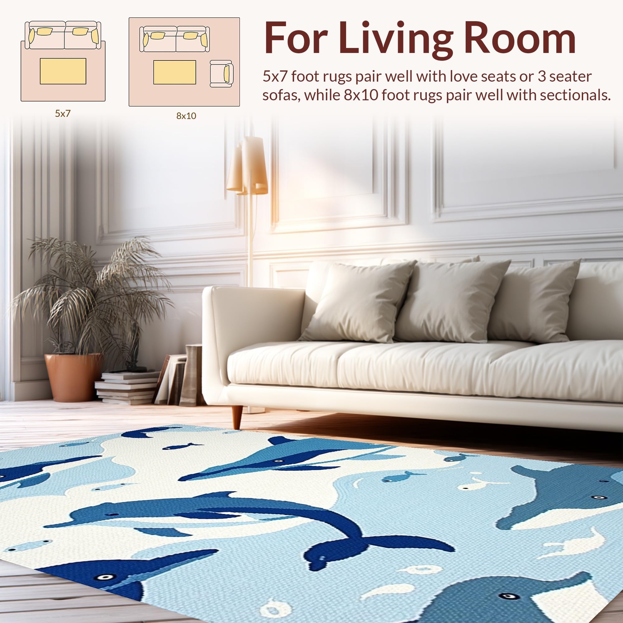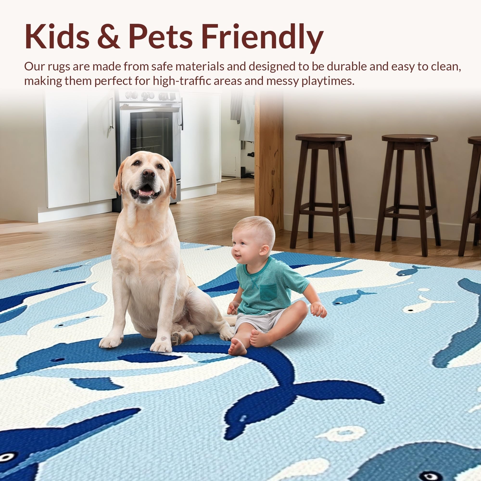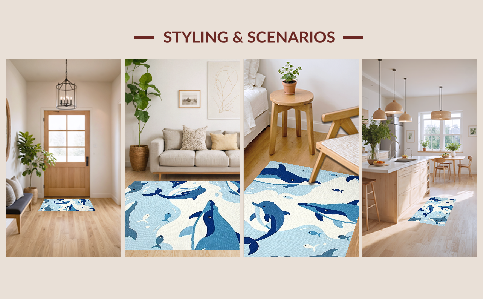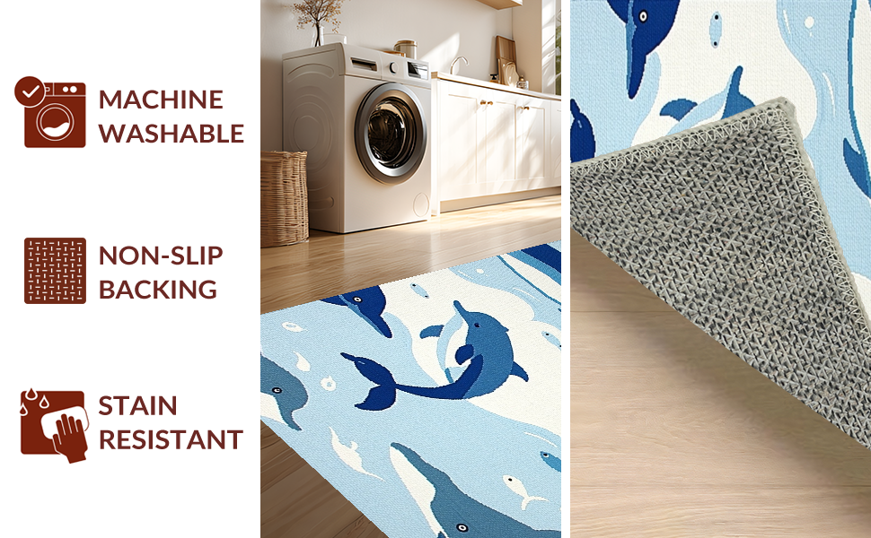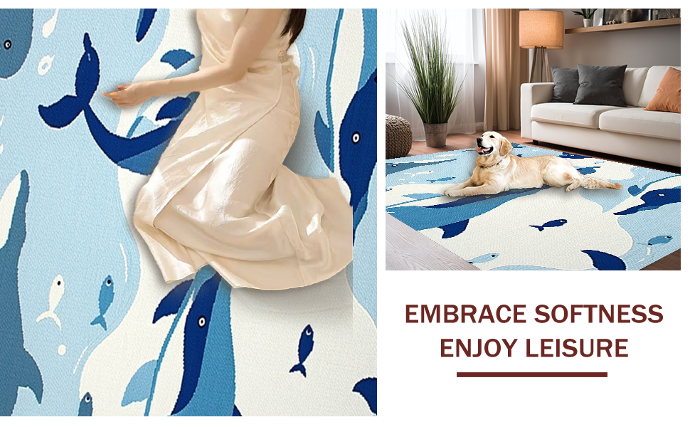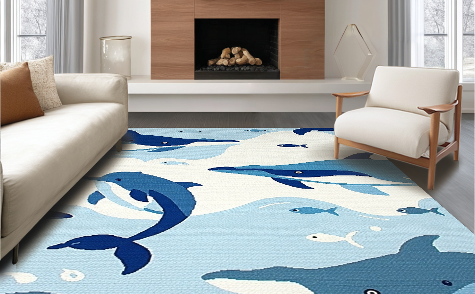 Ultra Soft Area Rug, Non Slip, Stain Resistant, Washable Area Rugs for Living Room, Bedroom, Cheerful Aquatic Character Aesthetic(Blue) Overview: