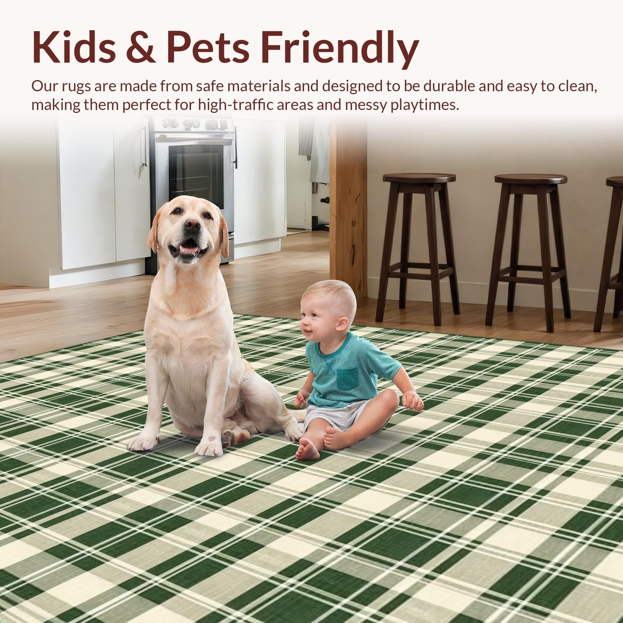 Ultra Soft Area Rug, Non Slip, Stain Resistant, Washable Area Rugs for Living Room, Bedroom, Cheerful Checkered Earthy Tones(Beige) Overview: