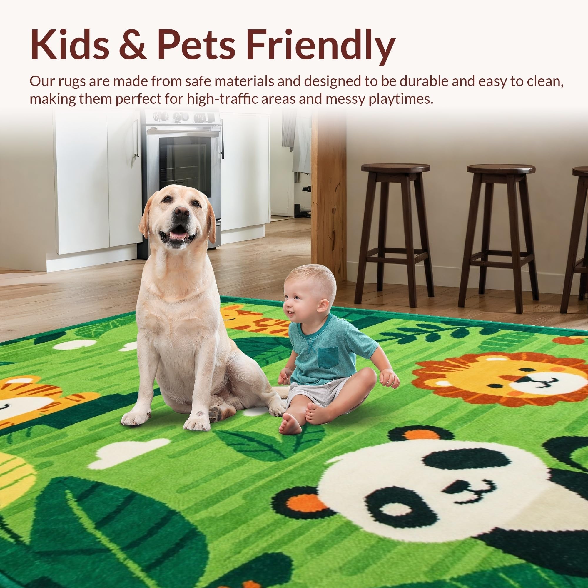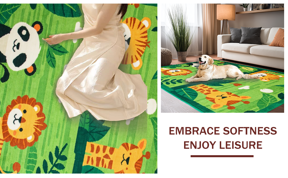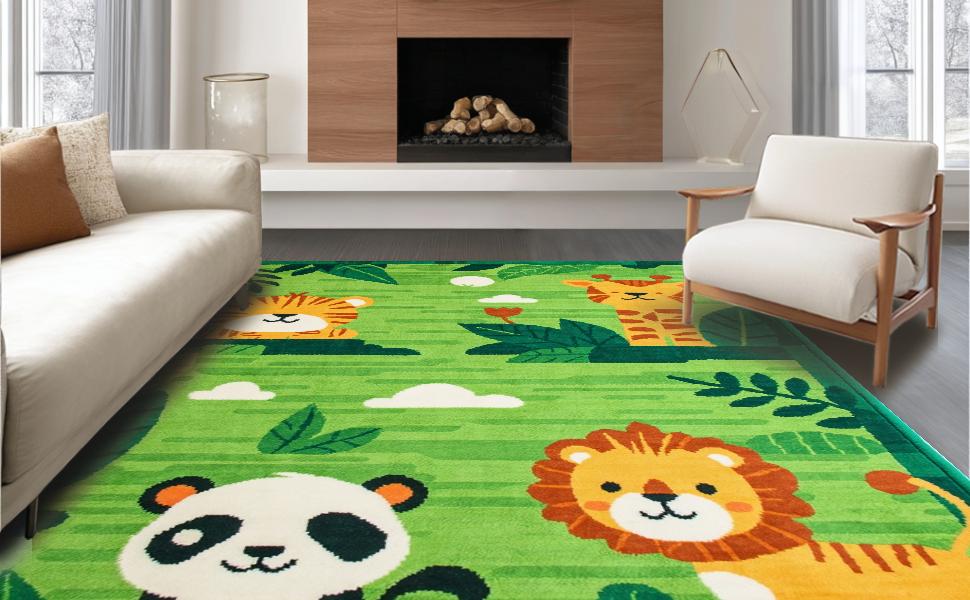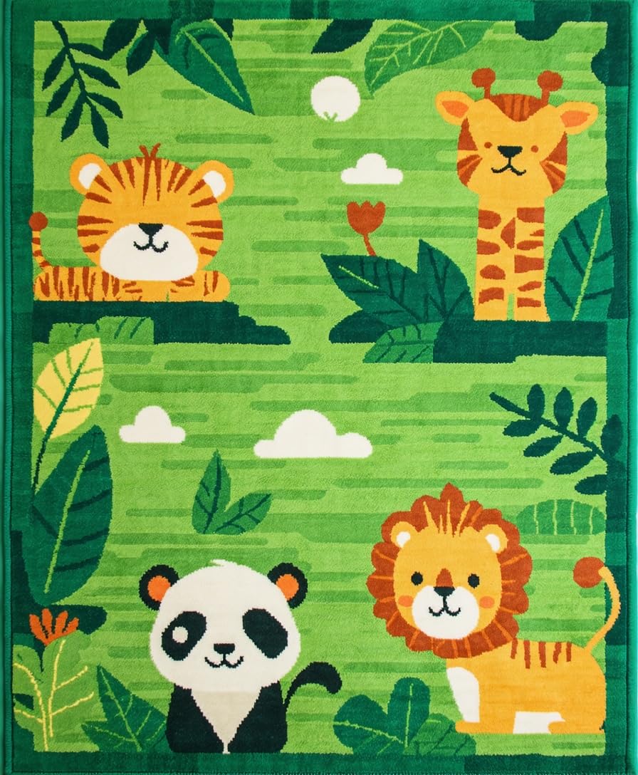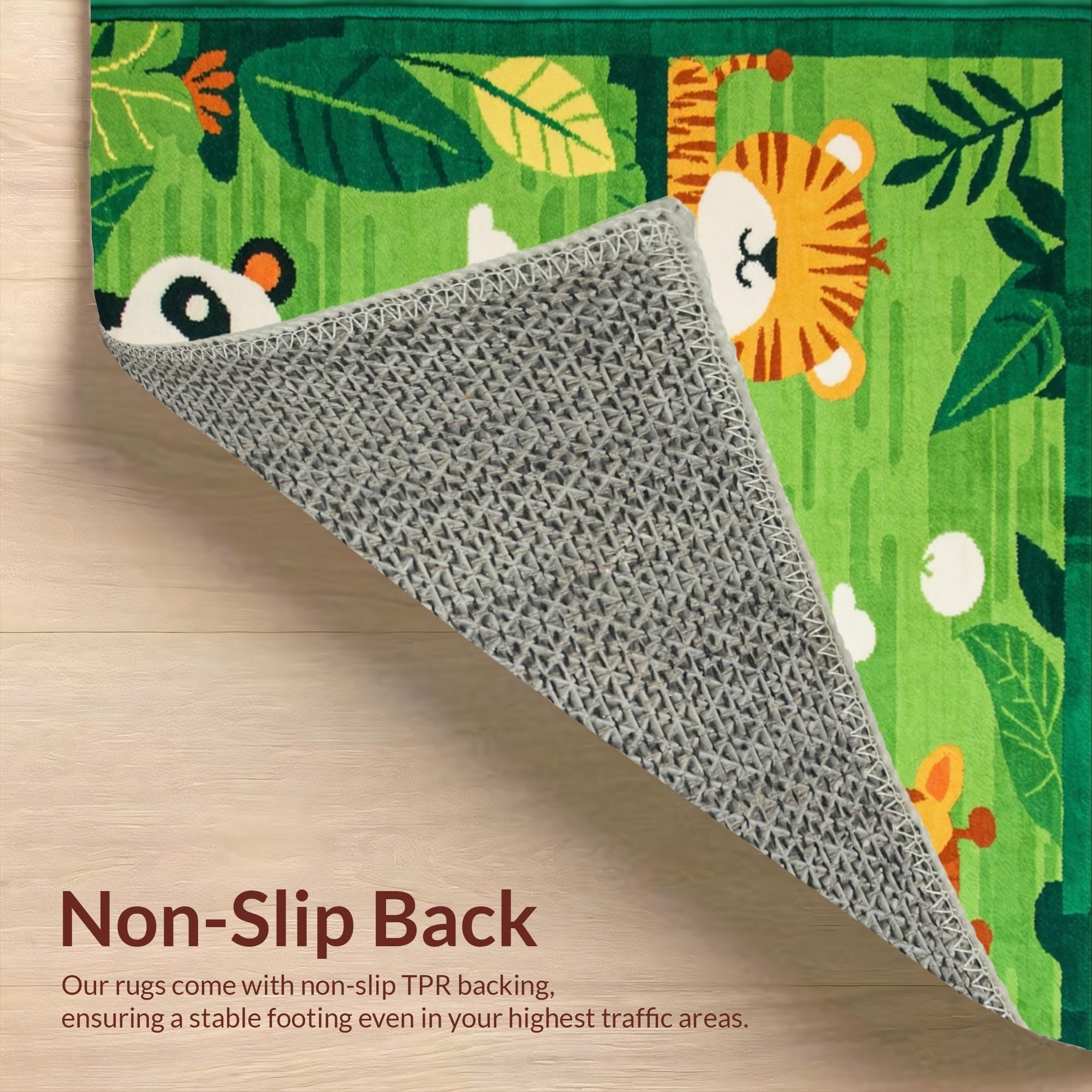Ultra Soft Area Rug, Non Slip, Stain Resistant, Washable Area Rugs for Living Room, Bedroom, Cheerful Circular Jungle Scene(Green) Overview: