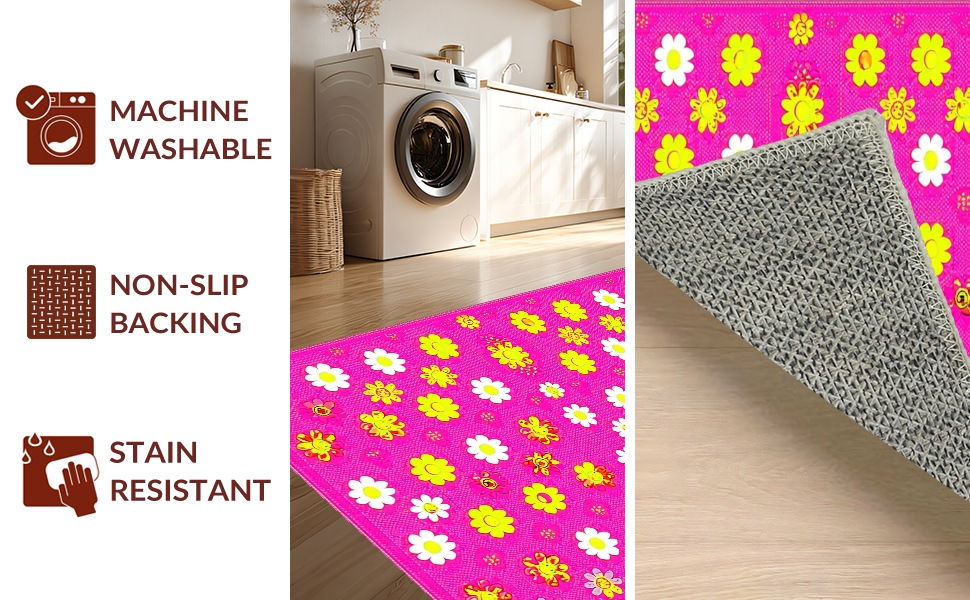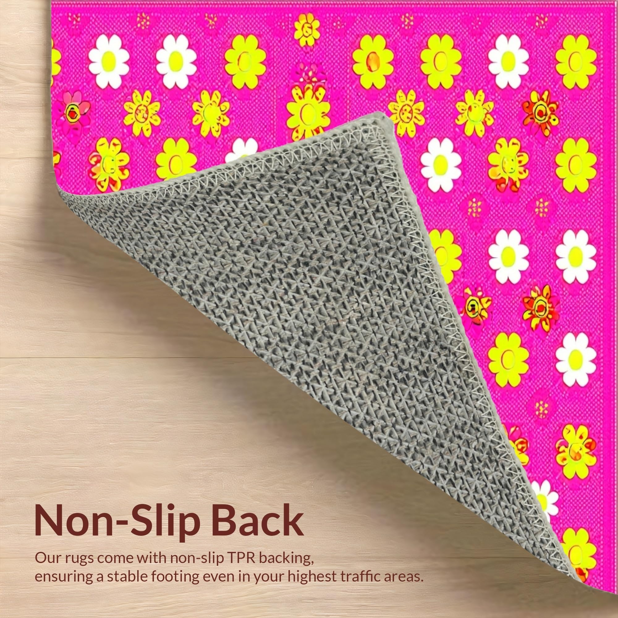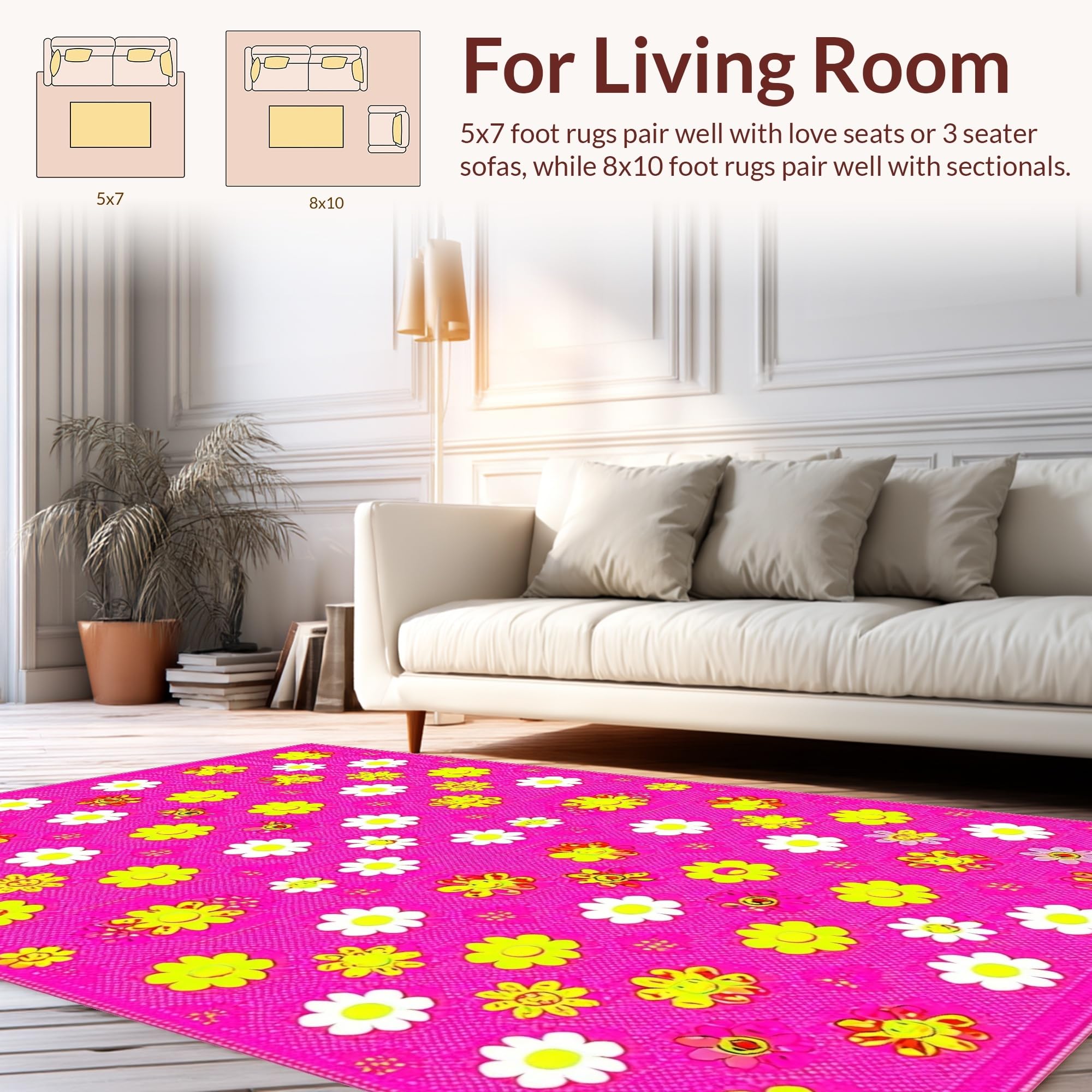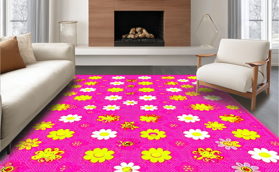 Ultra Soft Area Rug, Non Slip, Stain Resistant, Washable Area Rugs for Living Room, Bedroom, Cheerful Colorful Patterned Accent(Pink) Overview:
