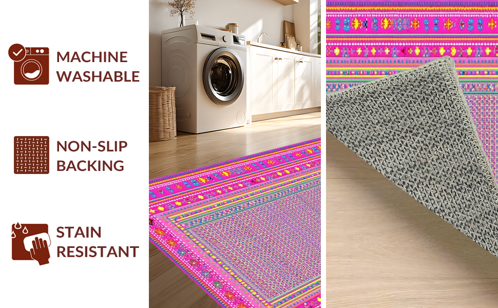 - Machine Washable: Our rugs can be easily thrown in the wash machine.