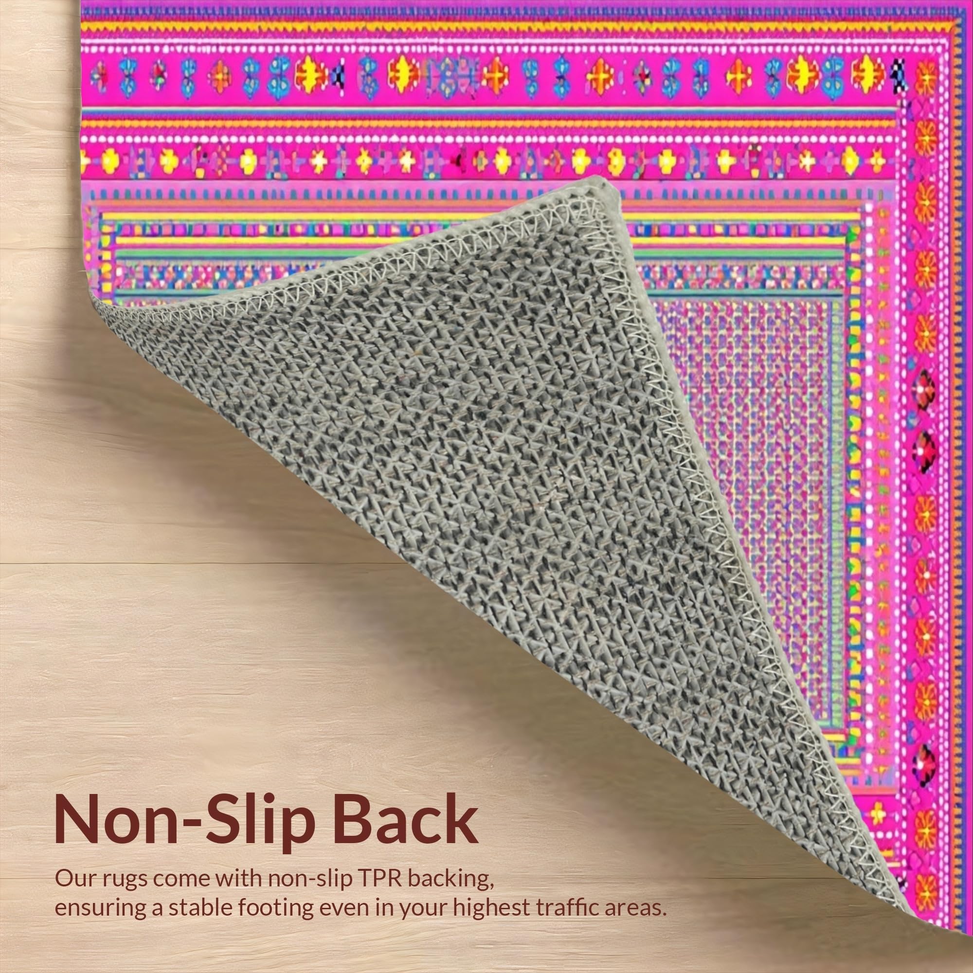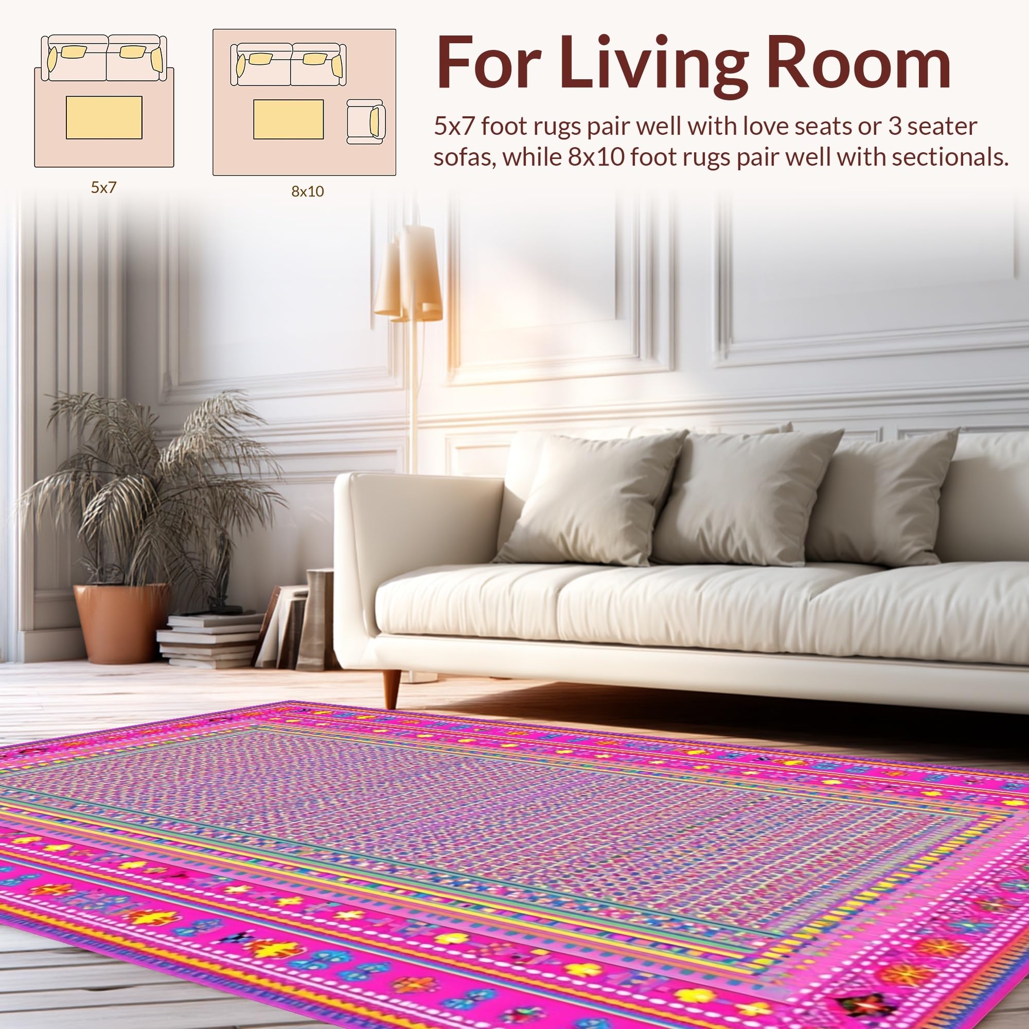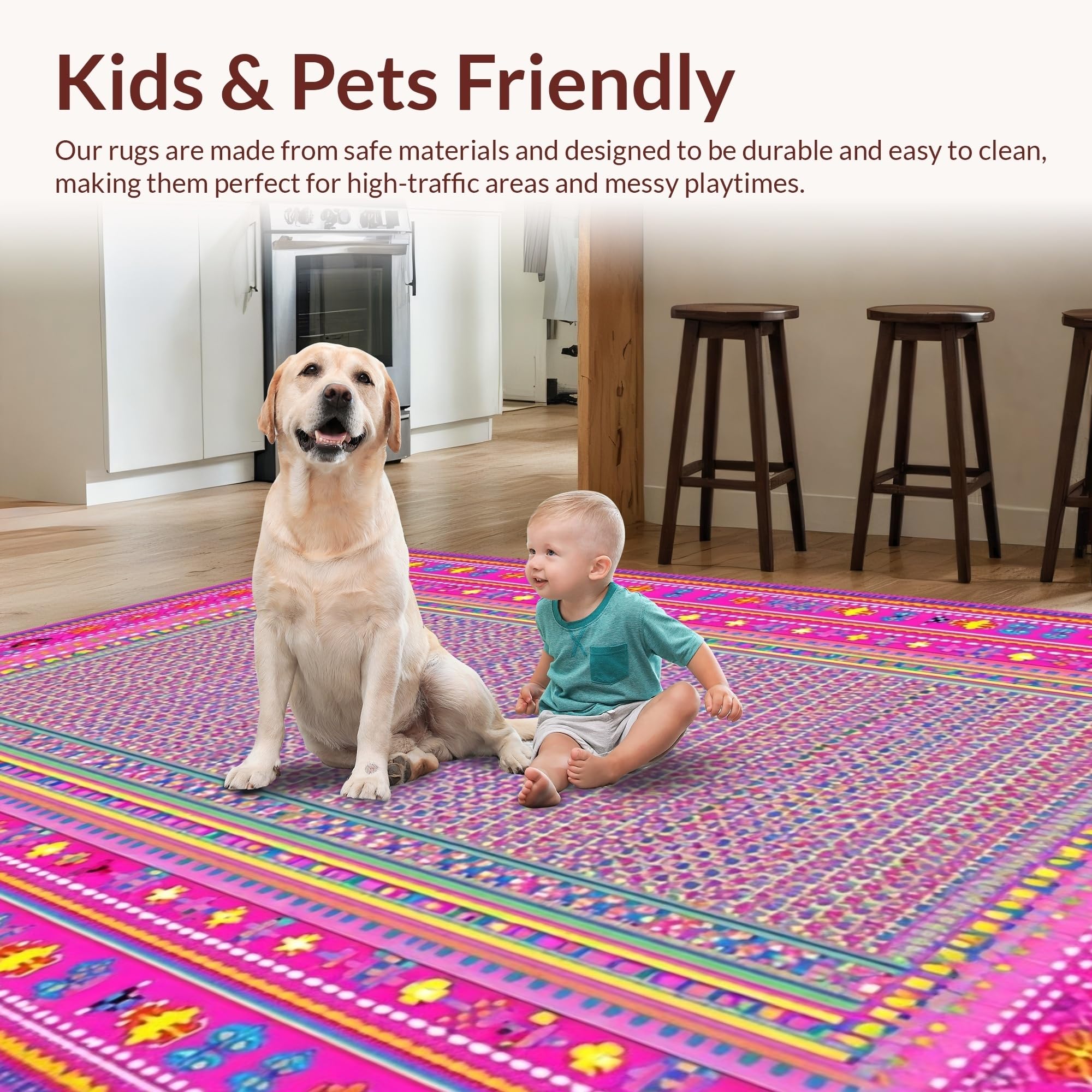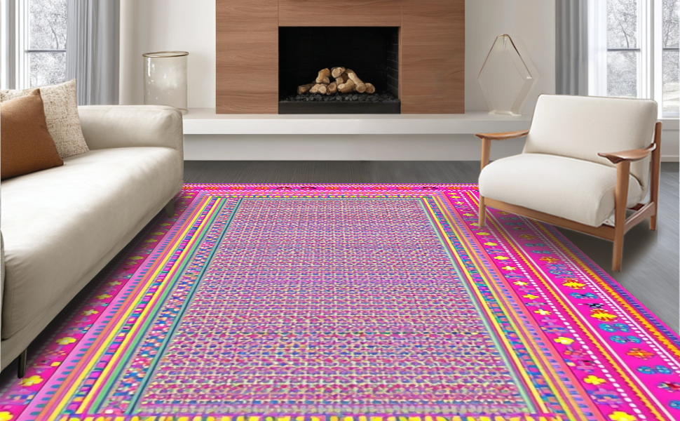 Ultra Soft Area Rug, Non Slip, Stain Resistant, Washable Area Rugs for Living Room, Bedroom, Cheerful Colorful Swirl Arrangement(Pink) Overview: