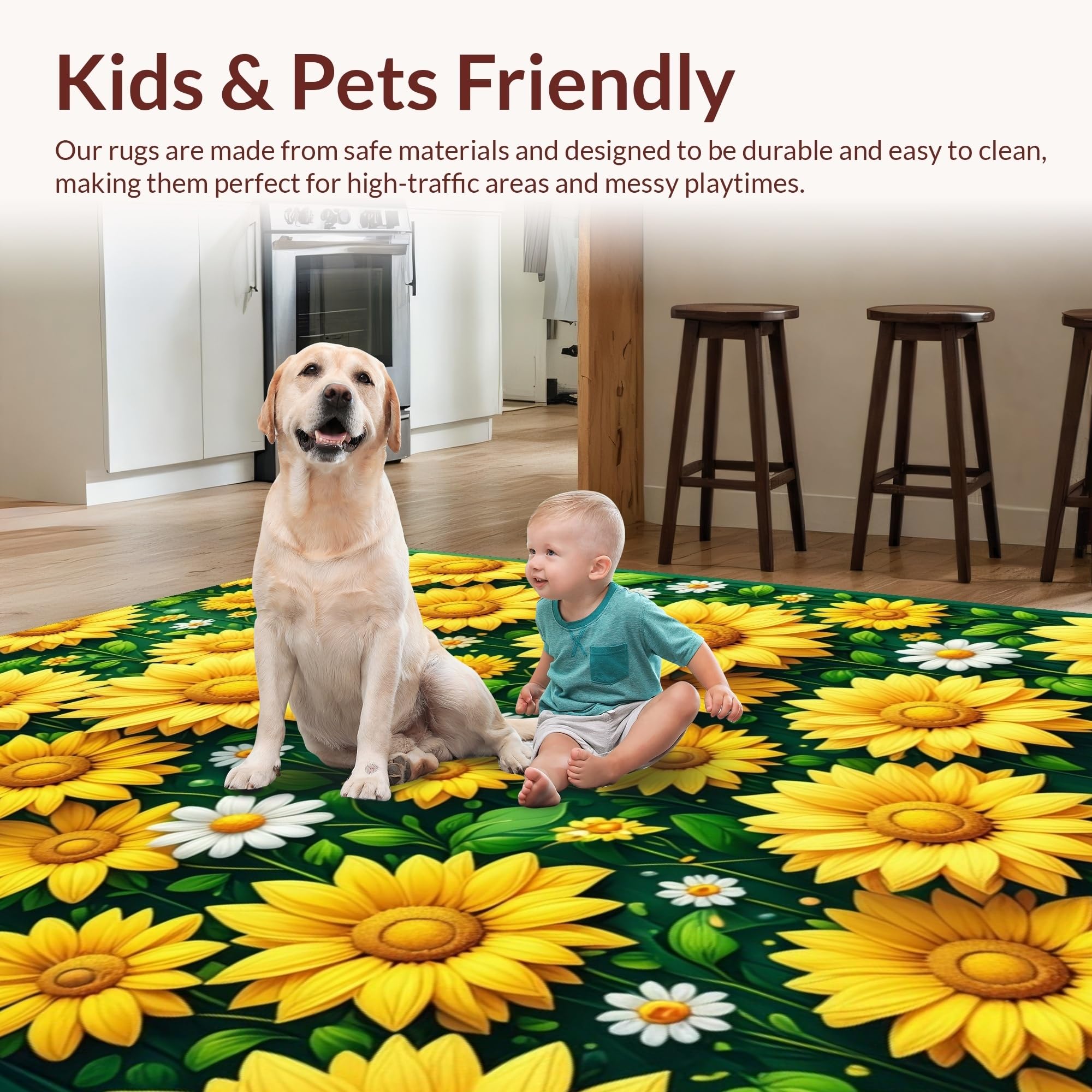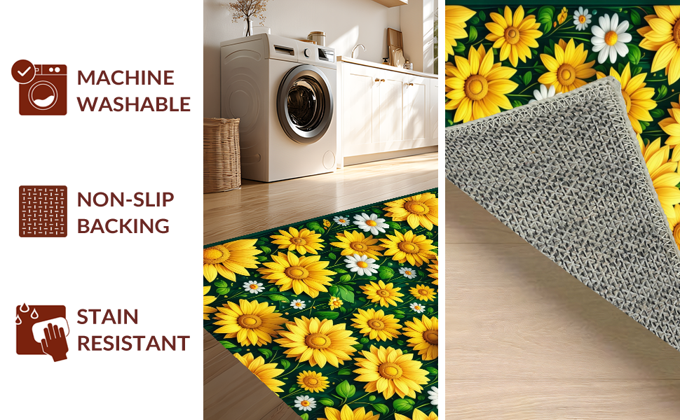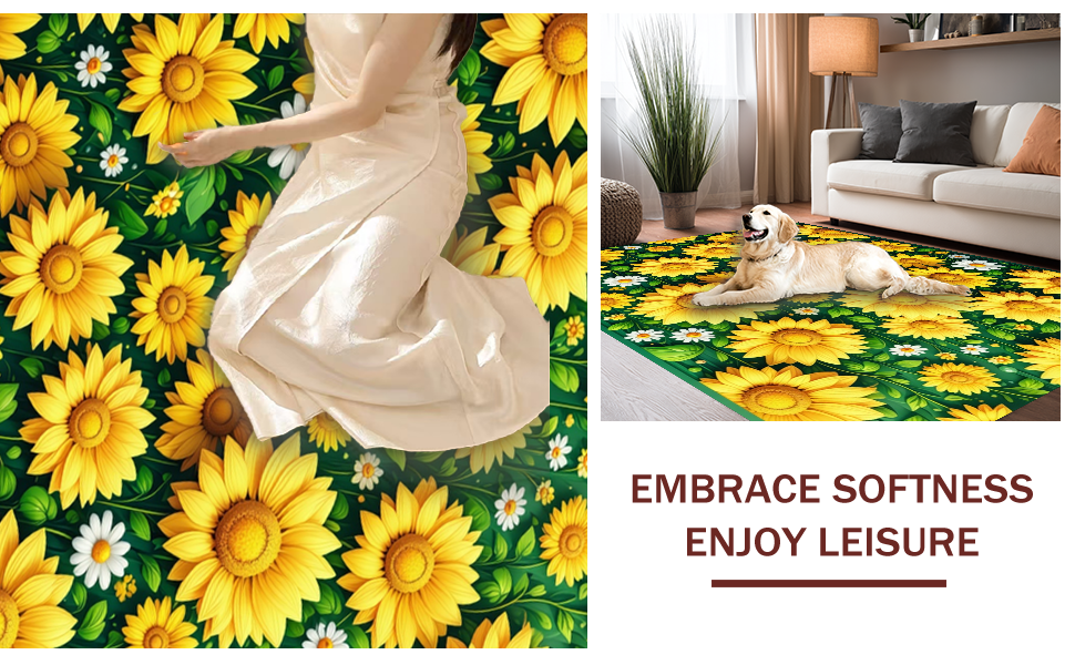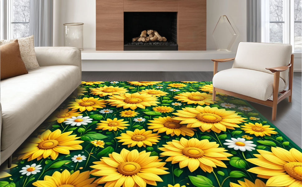 Ultra Soft Area Rug, Non Slip, Stain Resistant, Washable Area Rugs for Living Room, Bedroom, Cheerful Daisy Floral Arrangement(Yellow) Overview: