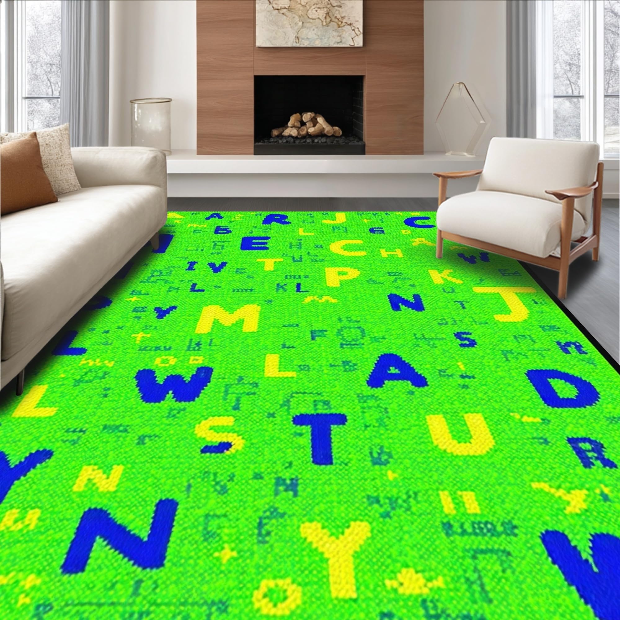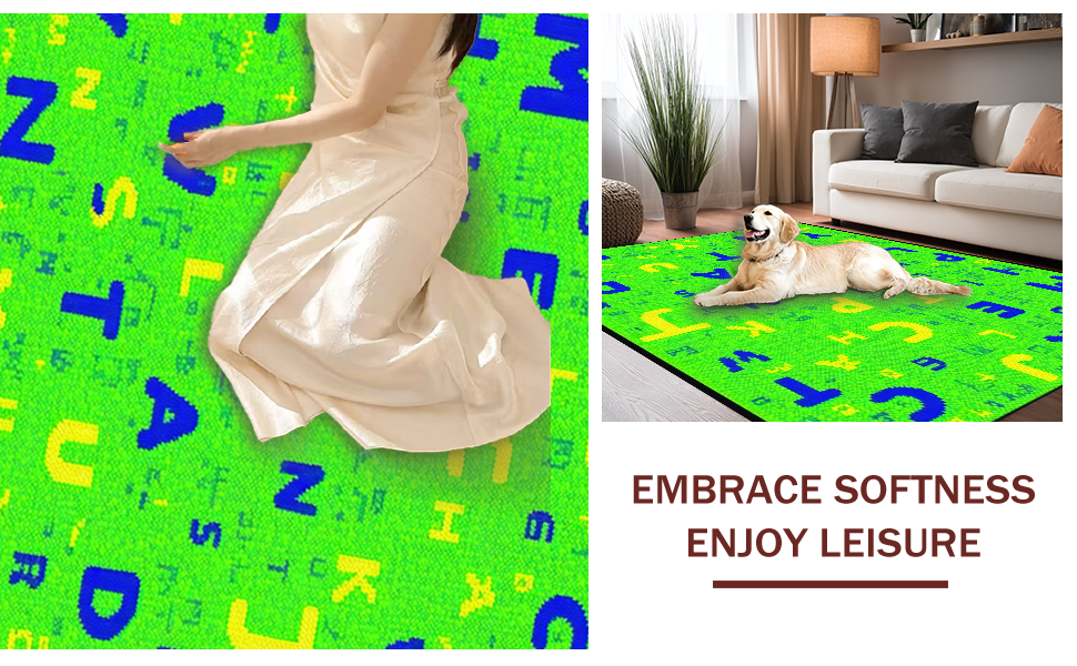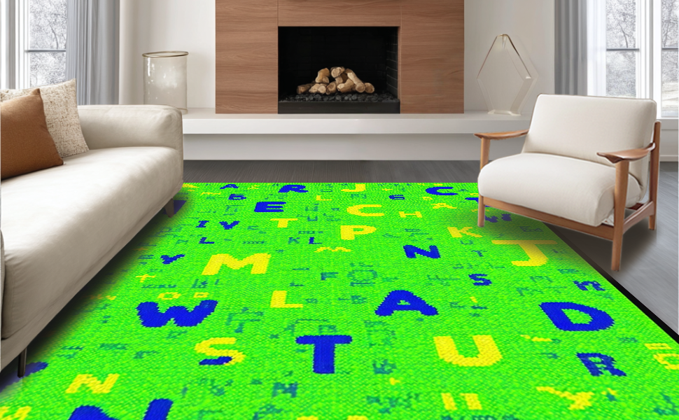 Ultra Soft Area Rug, Non Slip, Stain Resistant, Washable Area Rugs for Living Room, Bedroom, Cheerful Educational Rainbow Motif(Green) Overview: