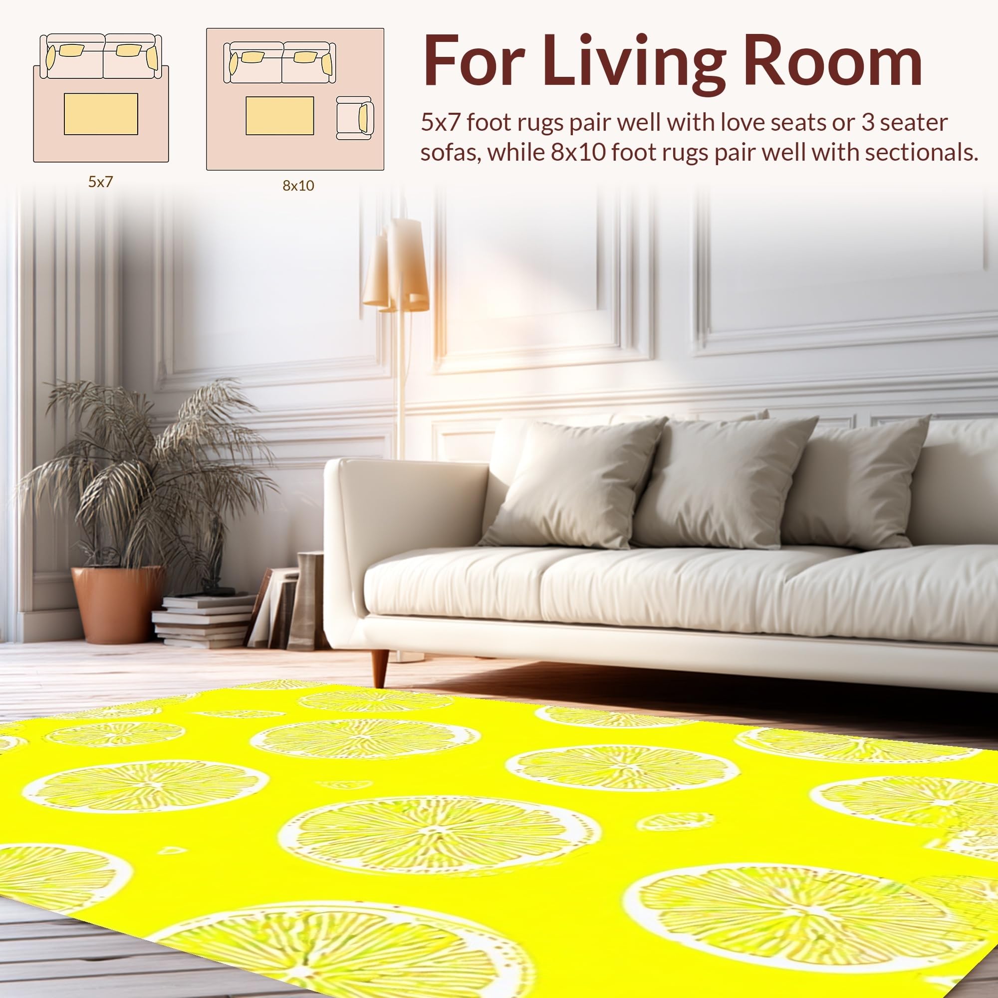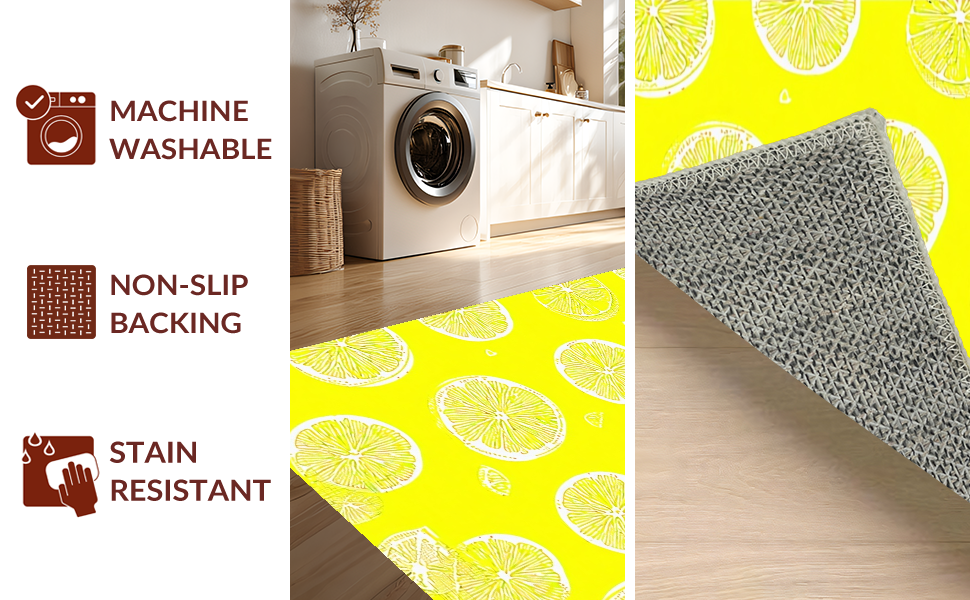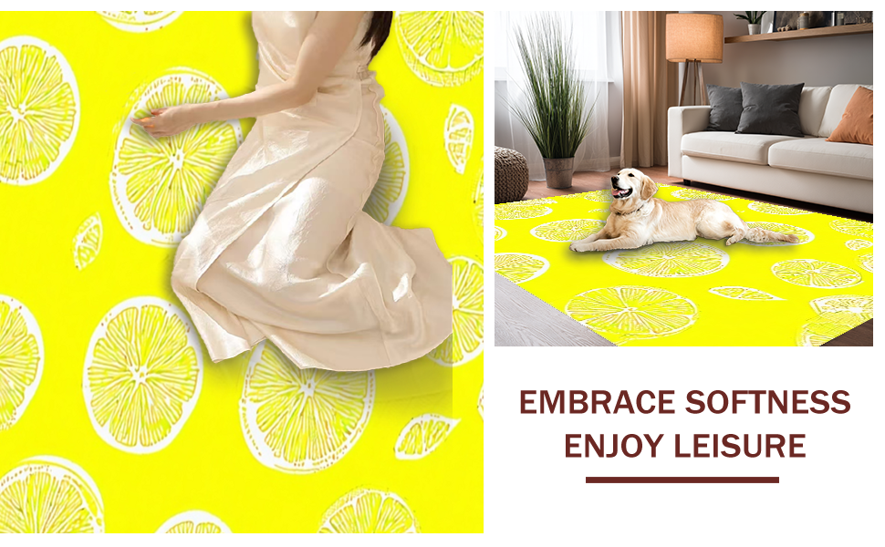 Ultra Soft Area Rug, Non Slip, Stain Resistant, Washable Area Rugs for Living Room, Bedroom, Cheerful Fresh Fruit Arrangement(Yellow) Overview:
