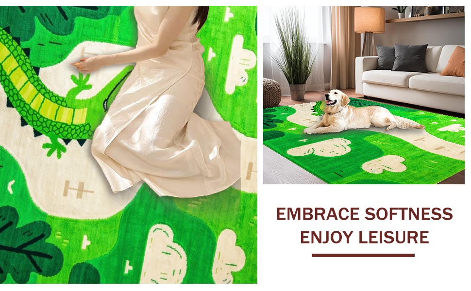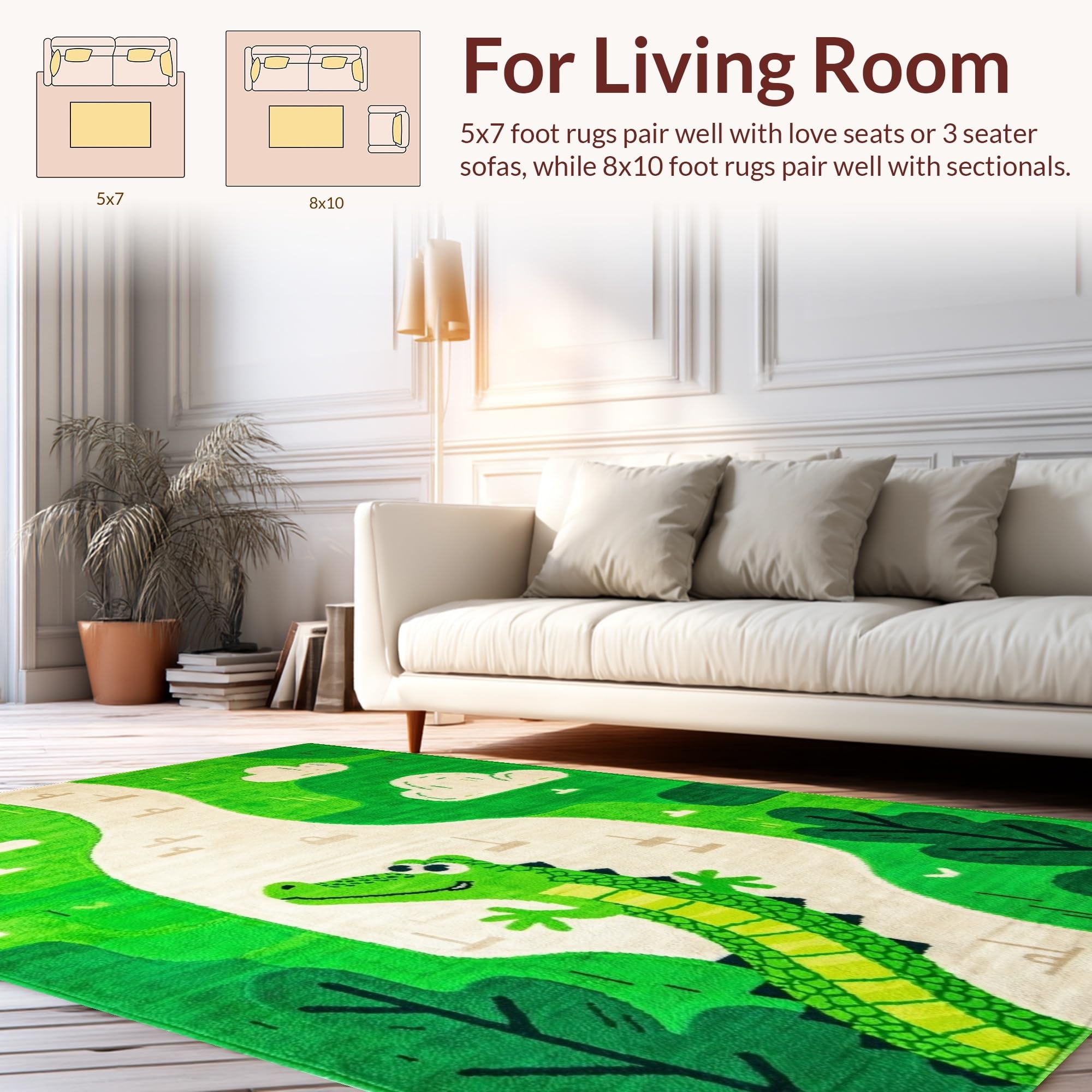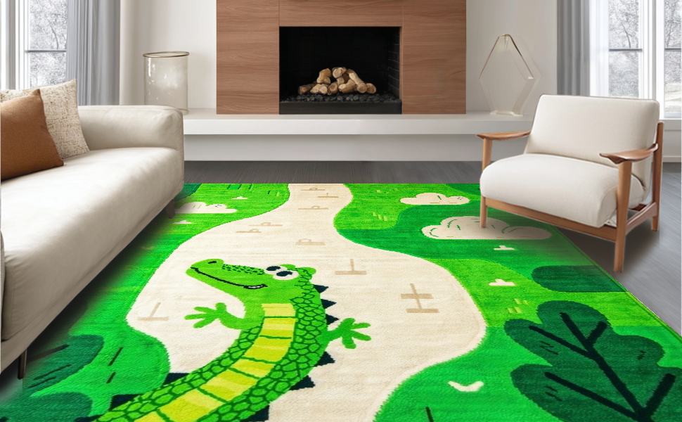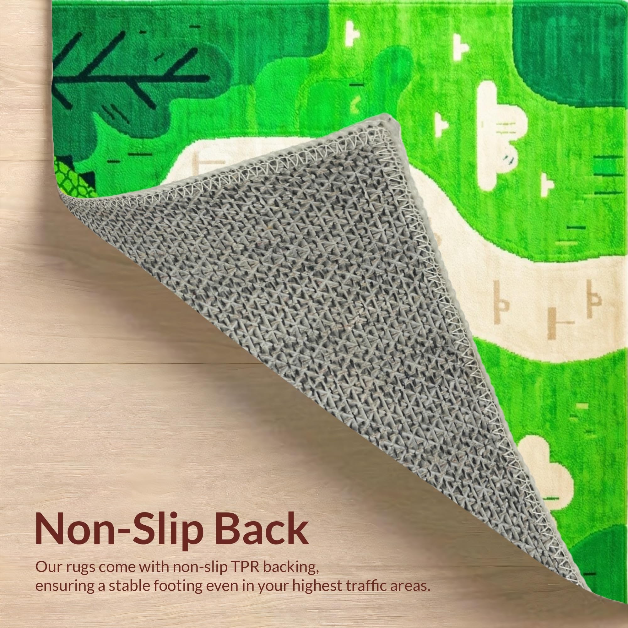 Ultra Soft Area Rug, Non Slip, Stain Resistant, Washable Area Rugs for Living Room, Bedroom, Cheerful Green Wildlife Theme(Green) Overview: