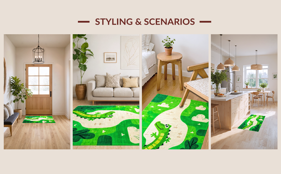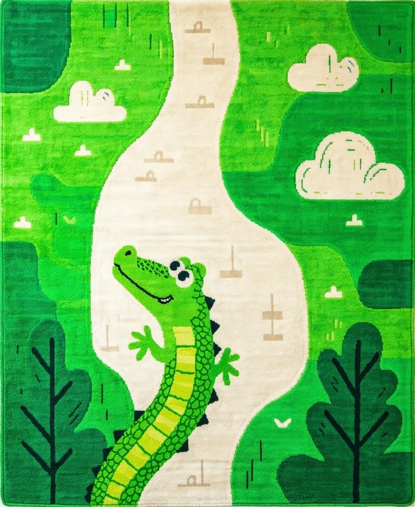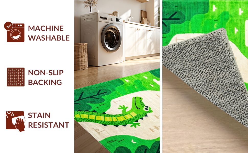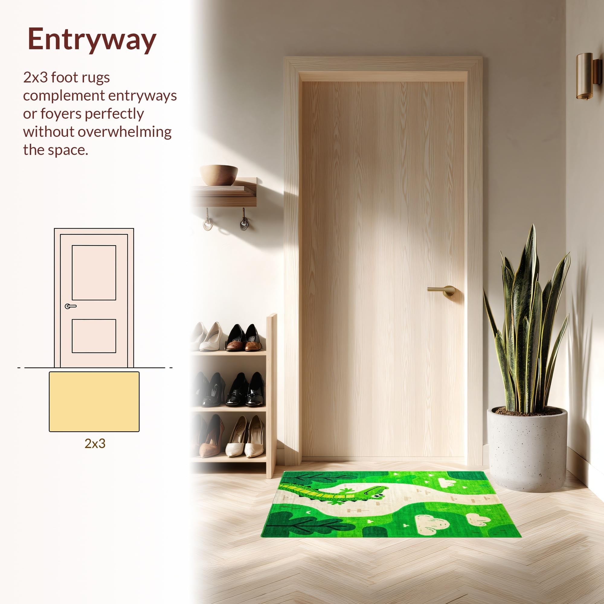 Ultra Soft Area Rug, Non Slip, Stain Resistant, Washable Area Rugs for Living Room, Bedroom, Cheerful Green Wildlife Theme(Green) Overview: