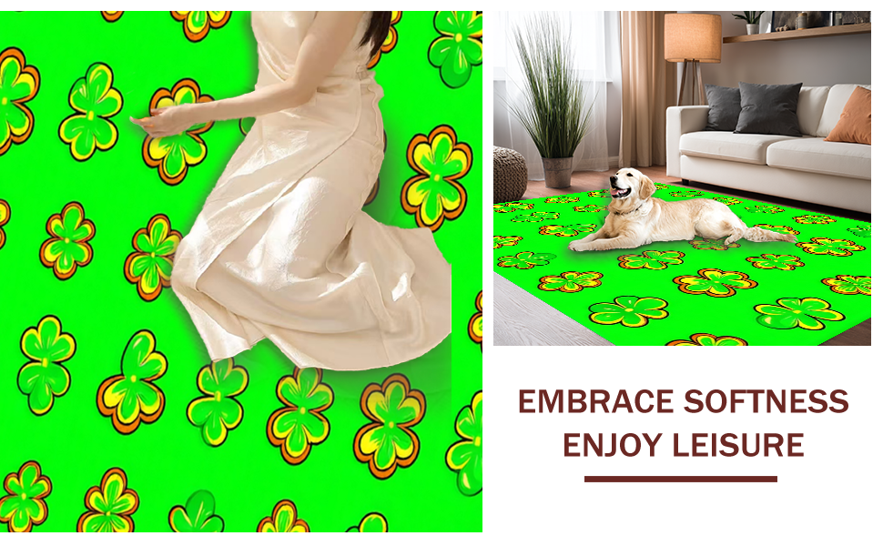 Ultra Soft Area Rug, Non Slip, Stain Resistant, Washable Area Rugs for Living Room, Bedroom, Cheerful Green Yellow Design(Green) Overview:
