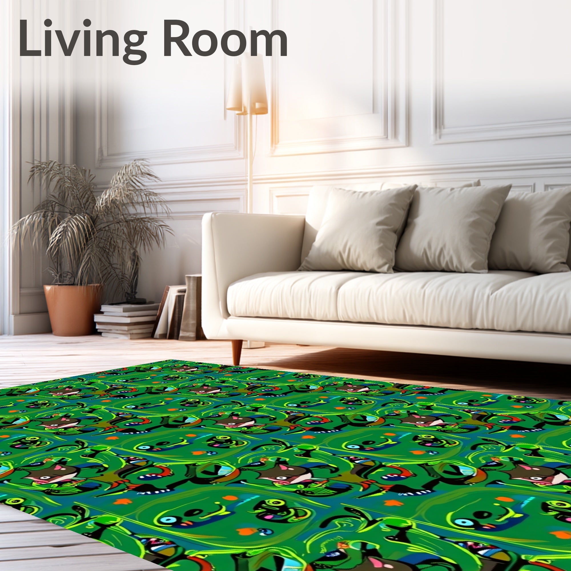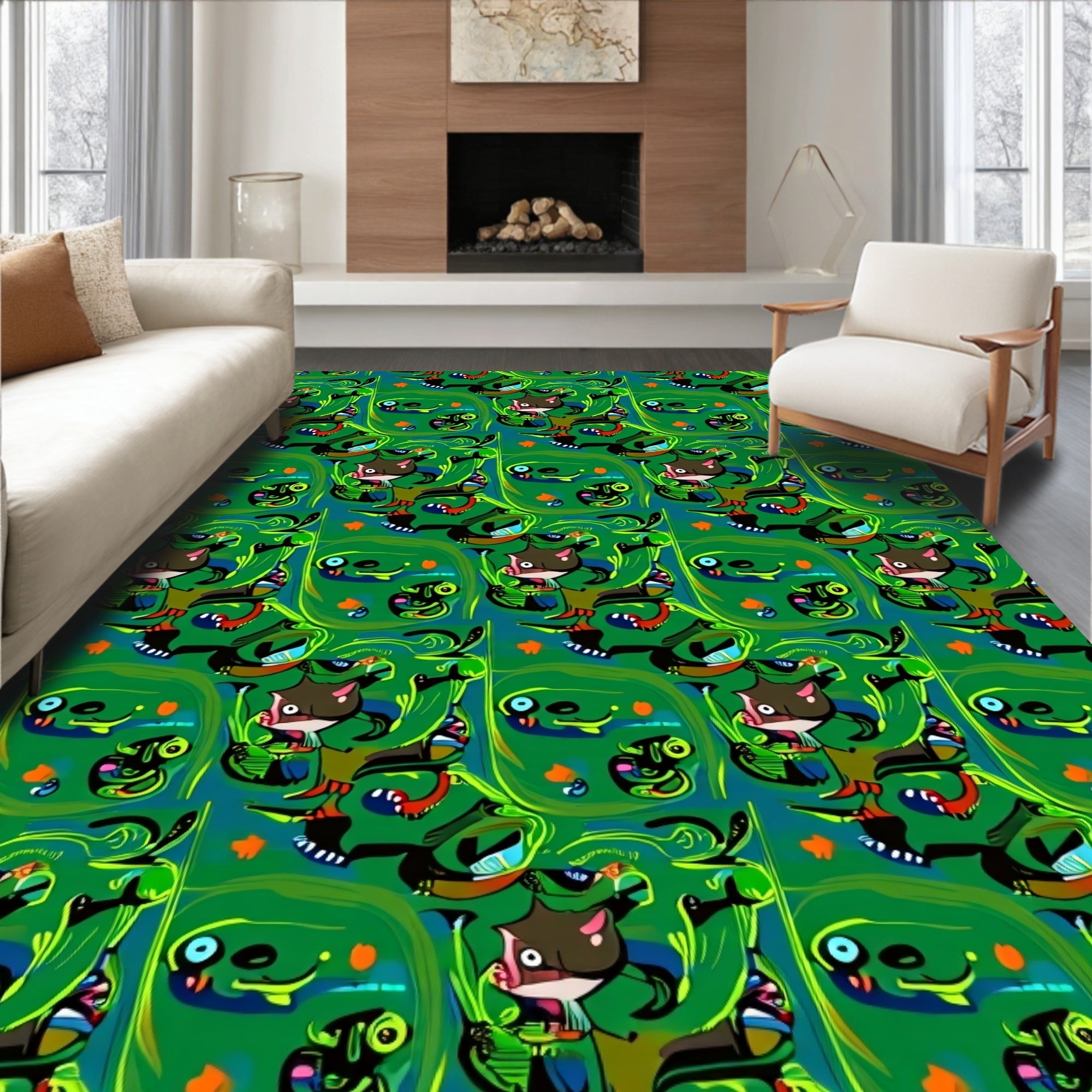 Ultra Soft Area Rug, Non Slip, Stain Resistant, Washable Area Rugs for Living Room, Bedroom, Cheerful Holiday Cats Amidst Sparkling Light Trails(Green) Overview:
