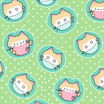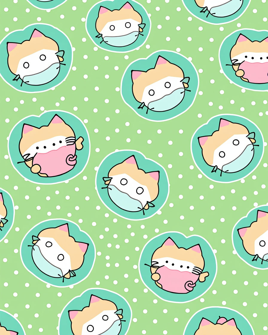Cheerful Kitten Faces with Polka Dot Accents and Swirling Tail Motifs(Green)