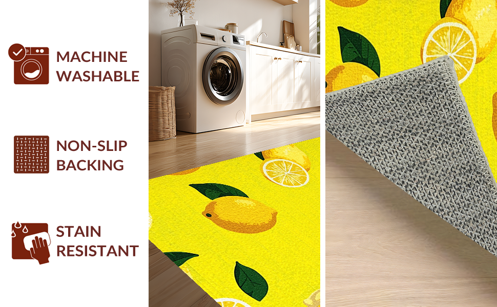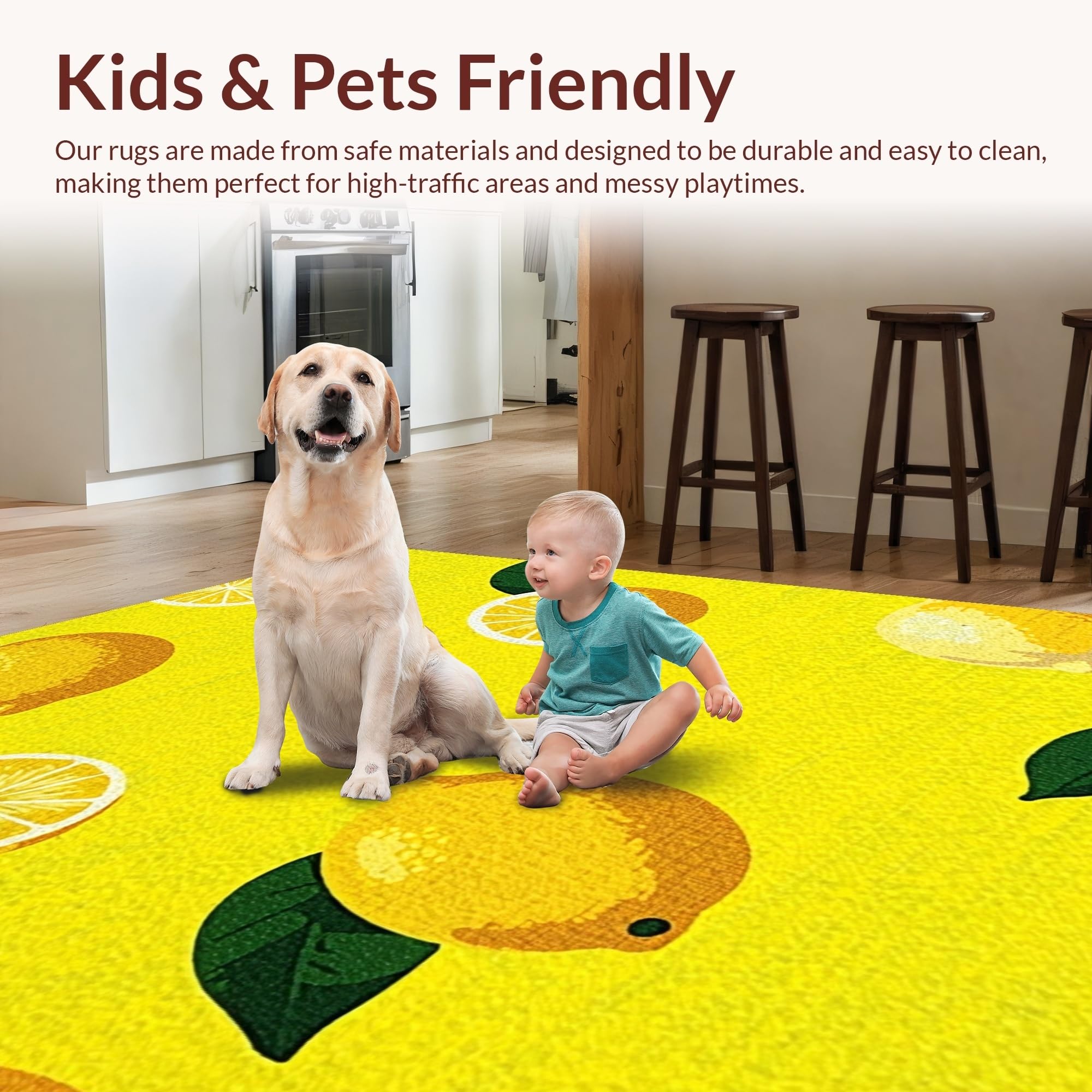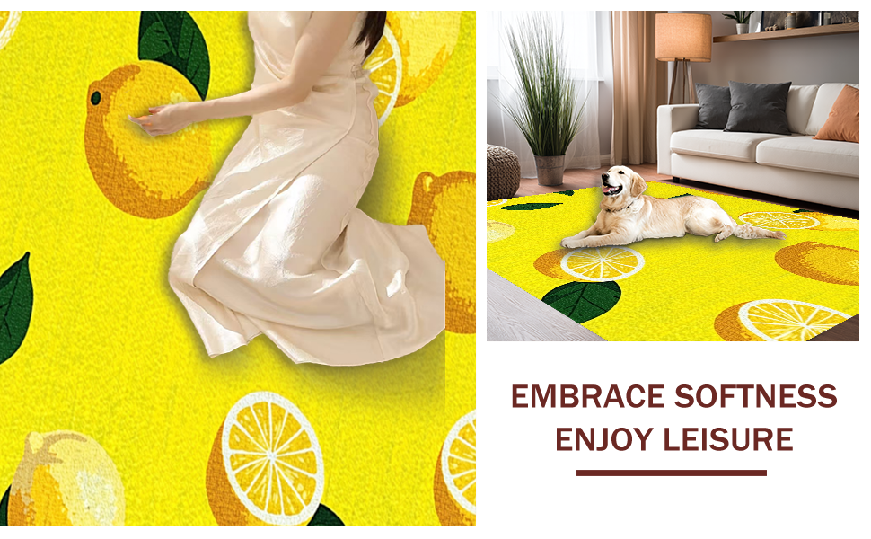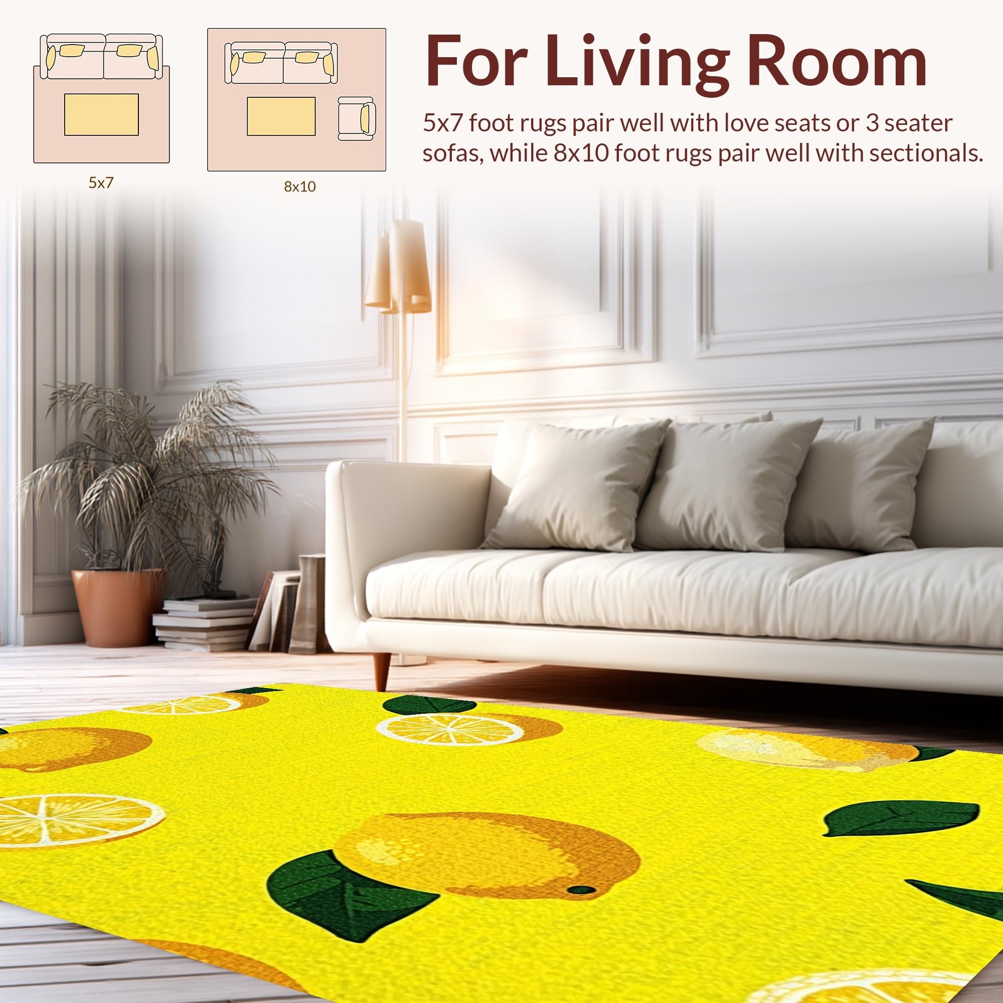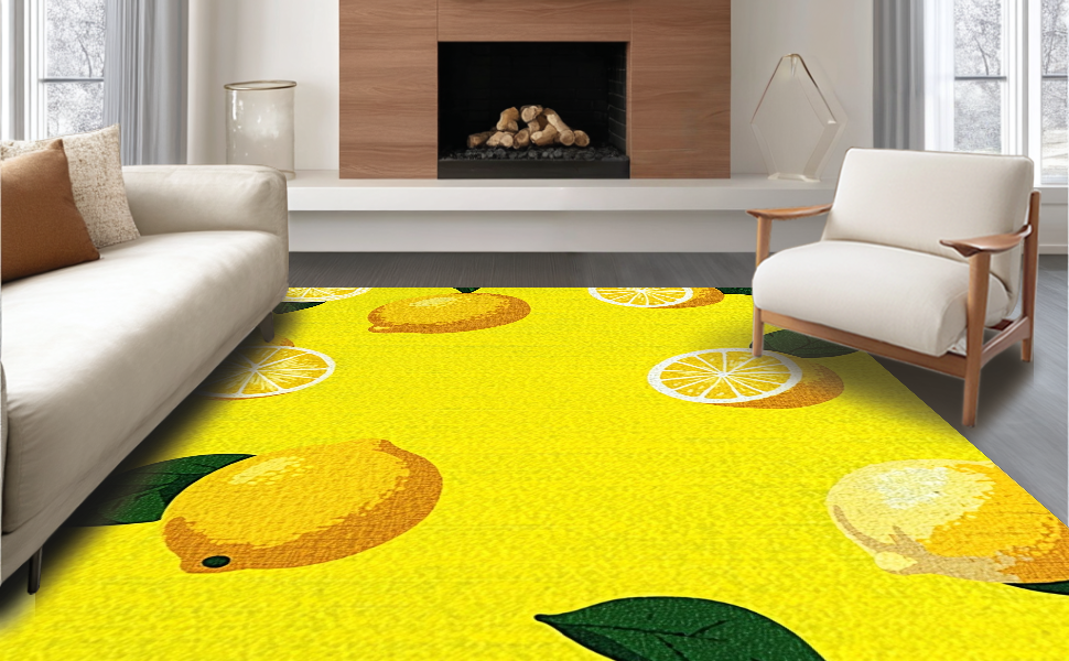 Ultra Soft Area Rug, Non Slip, Stain Resistant, Washable Area Rugs for Living Room, Bedroom, Cheerful Lemon Fruit Motif(Yellow) Overview:
