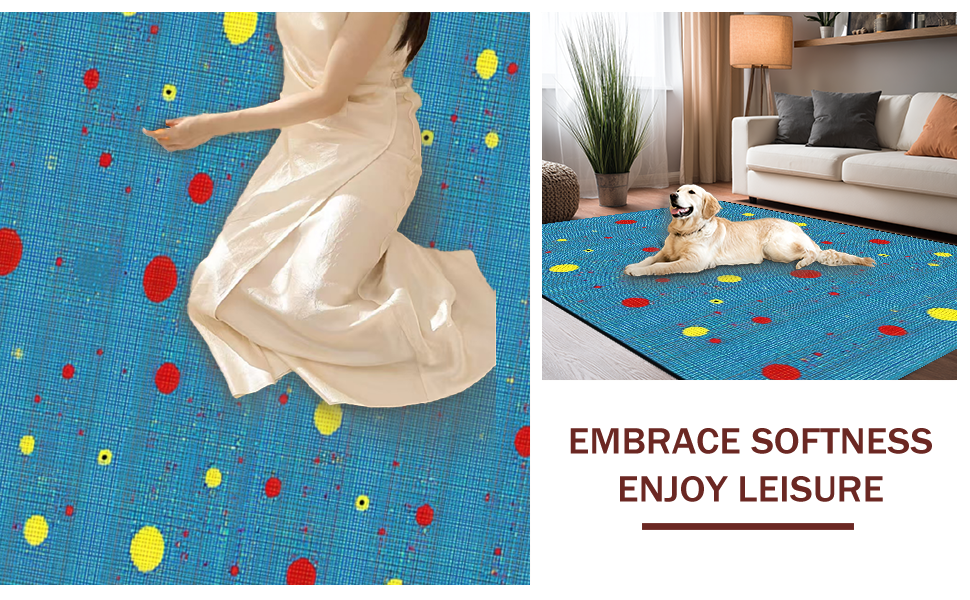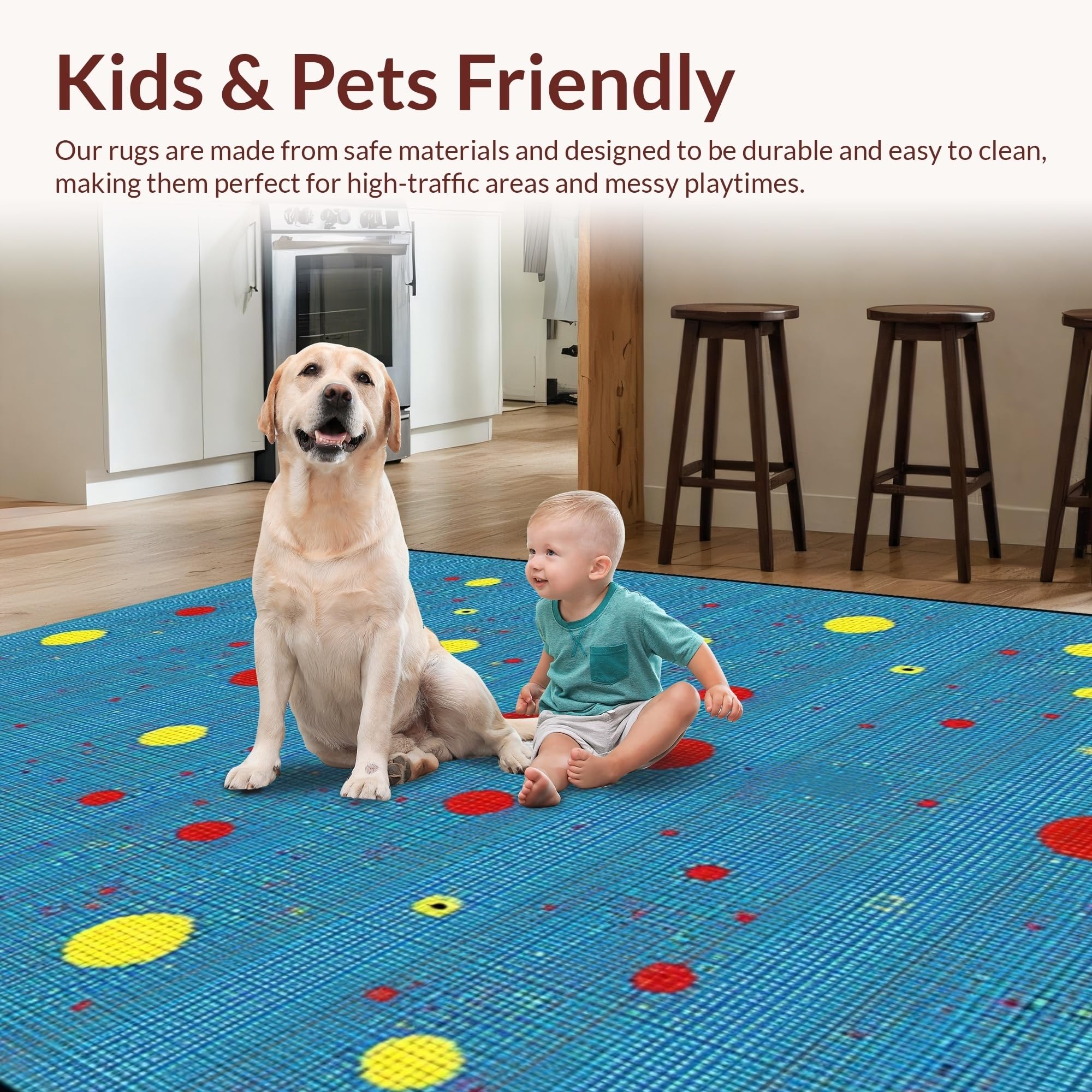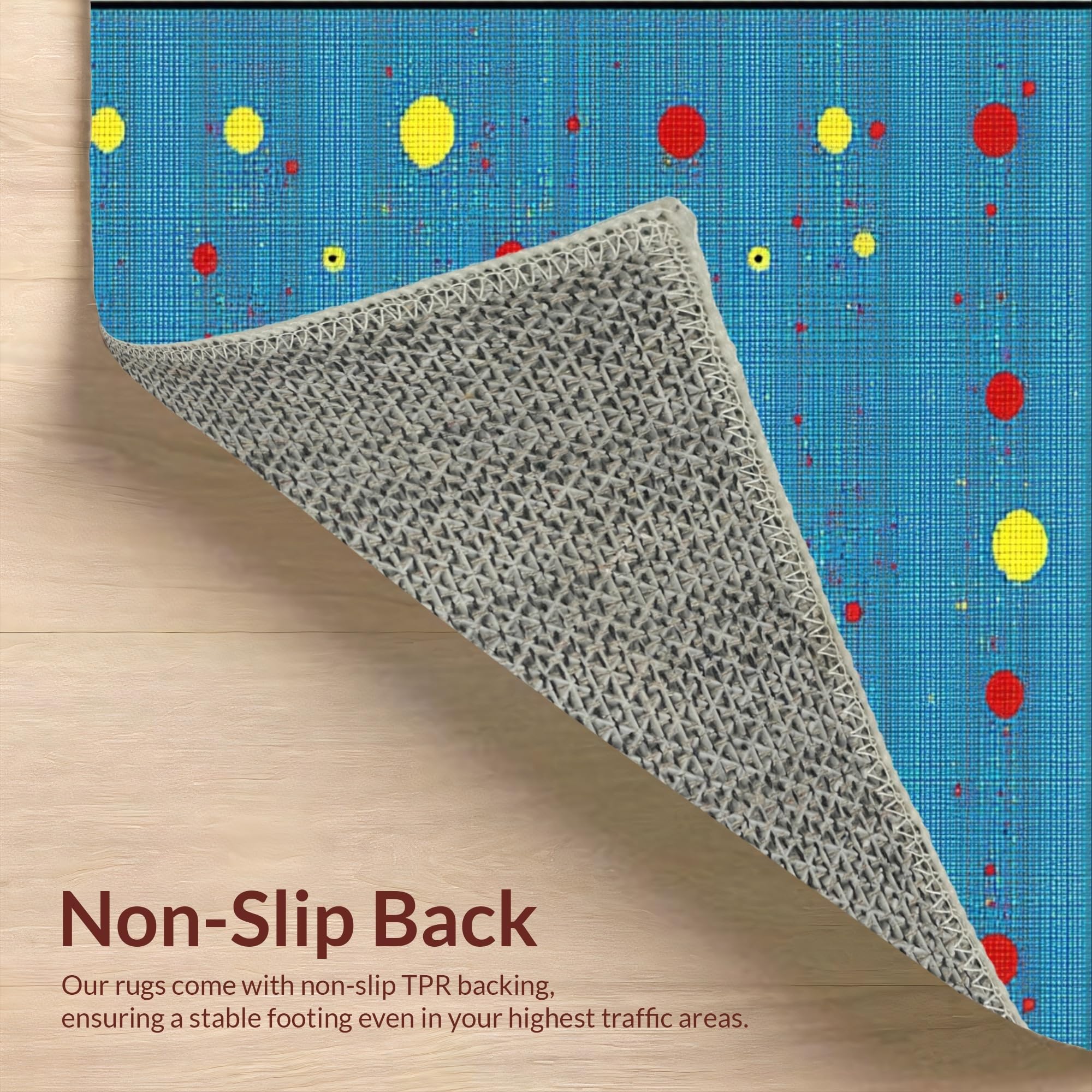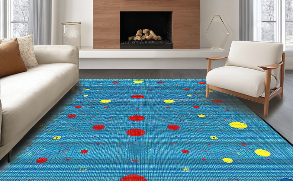 Ultra Soft Area Rug, Non Slip, Stain Resistant, Washable Area Rugs for Living Room, Bedroom, Cheerful Multi-Hued Circular Design(Blue) Overview: