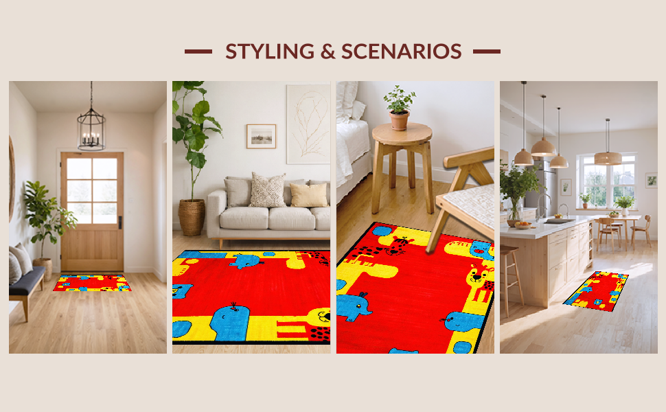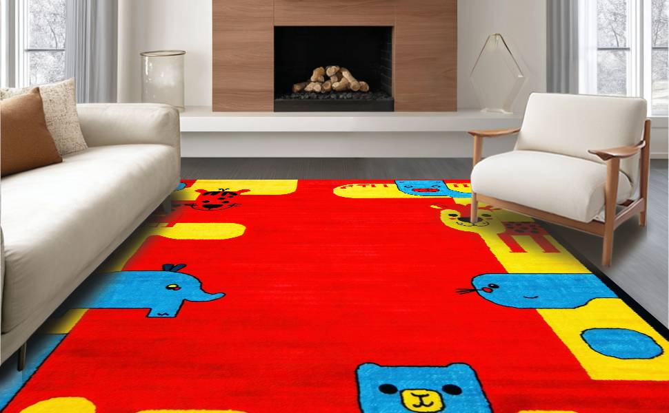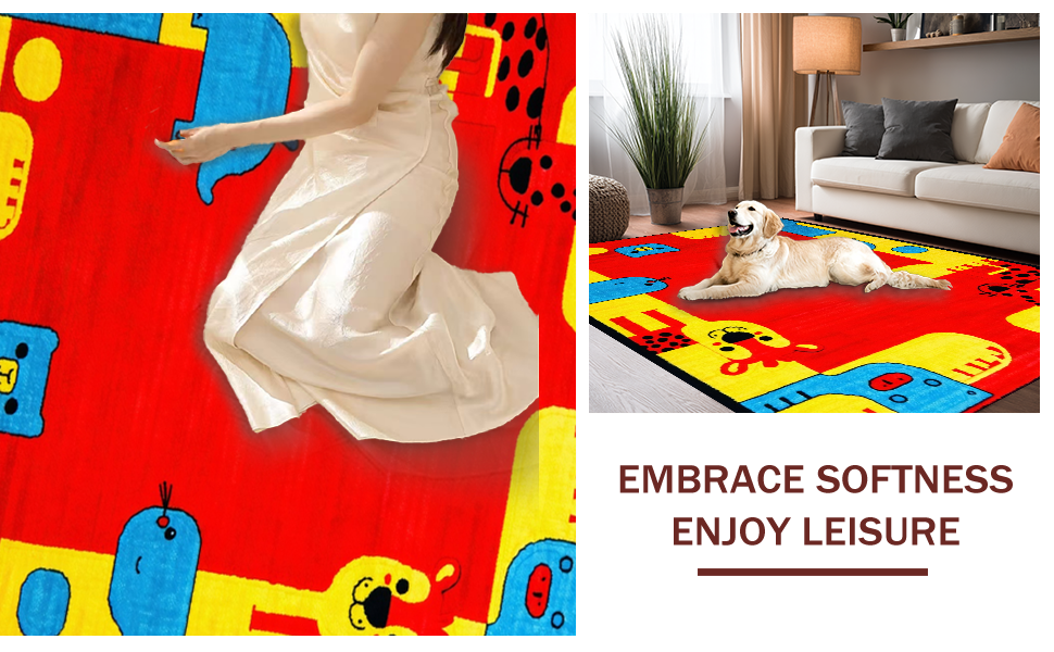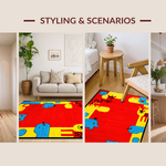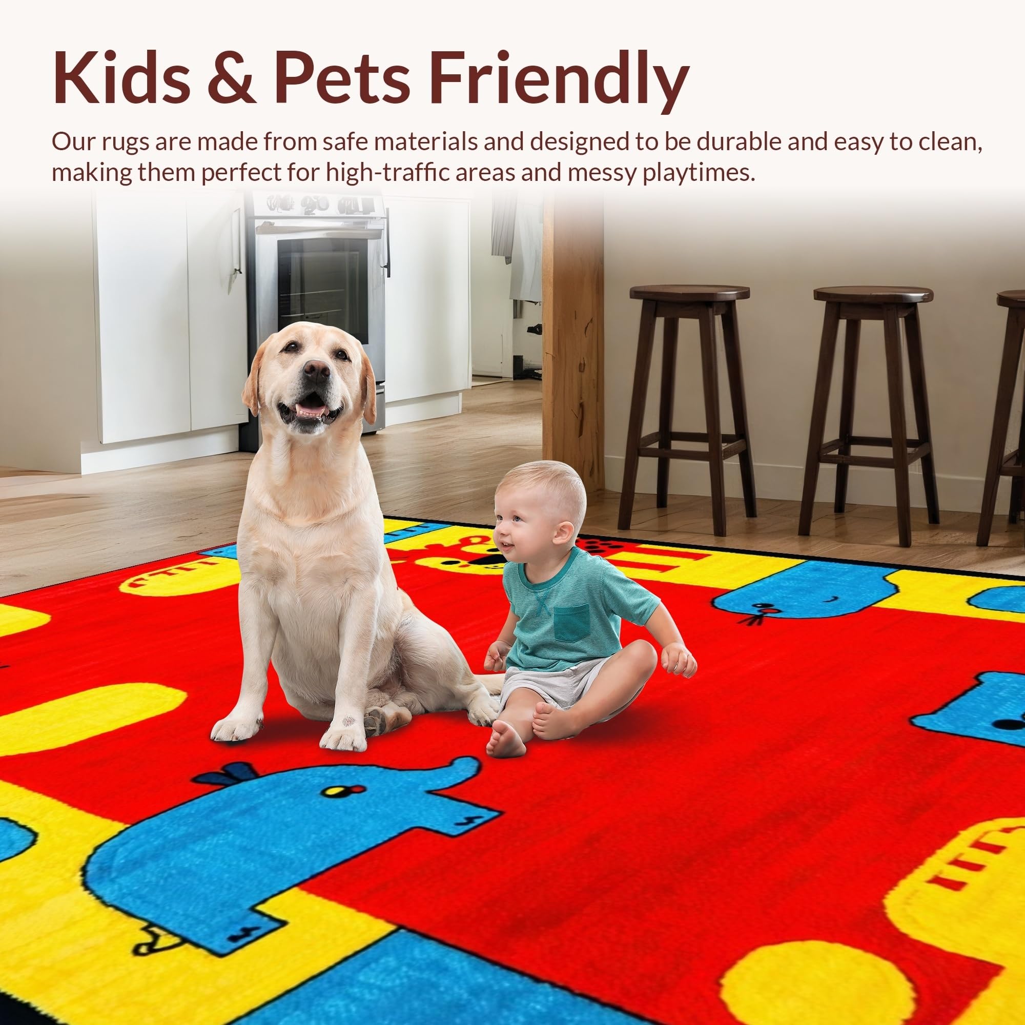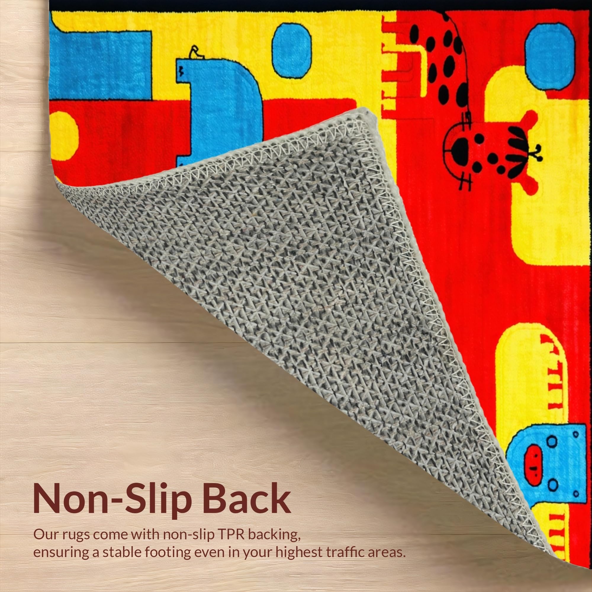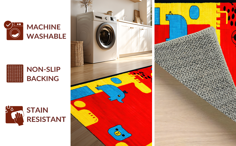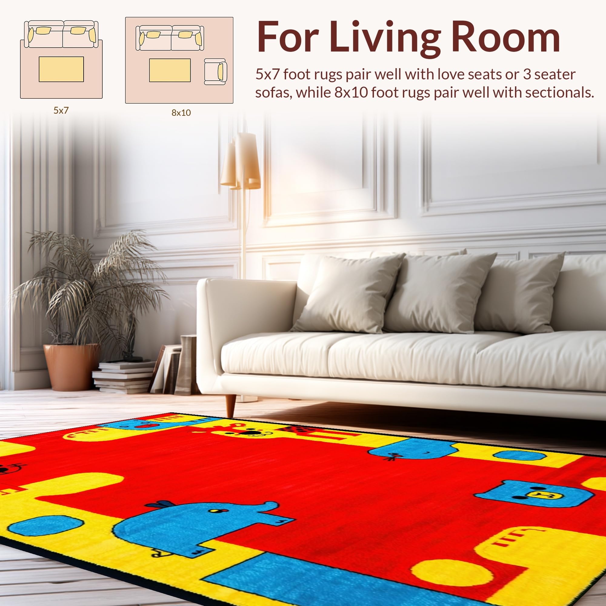 Ultra Soft Area Rug, Non Slip, Stain Resistant, Washable Area Rugs for Living Room, Bedroom, Cheerful Multicolored Educational Pattern(Red) Overview: