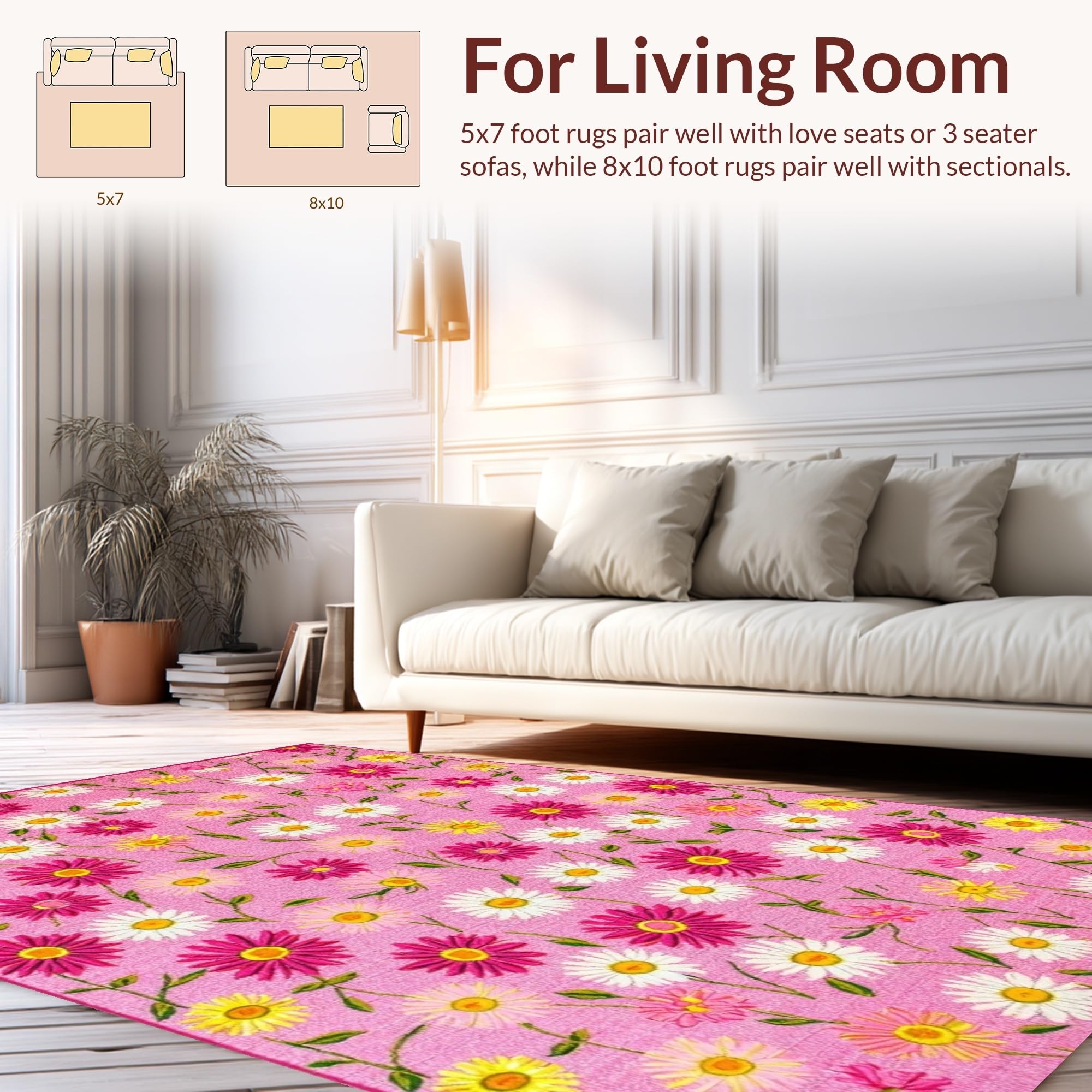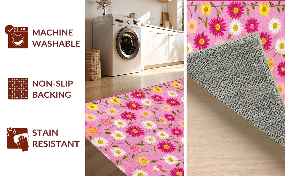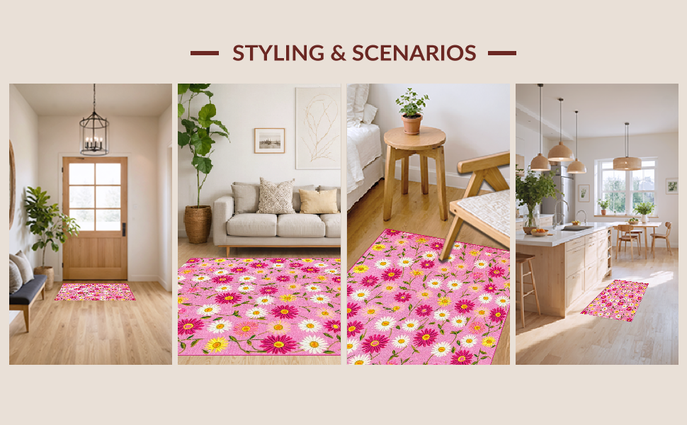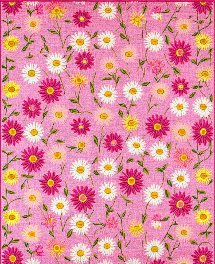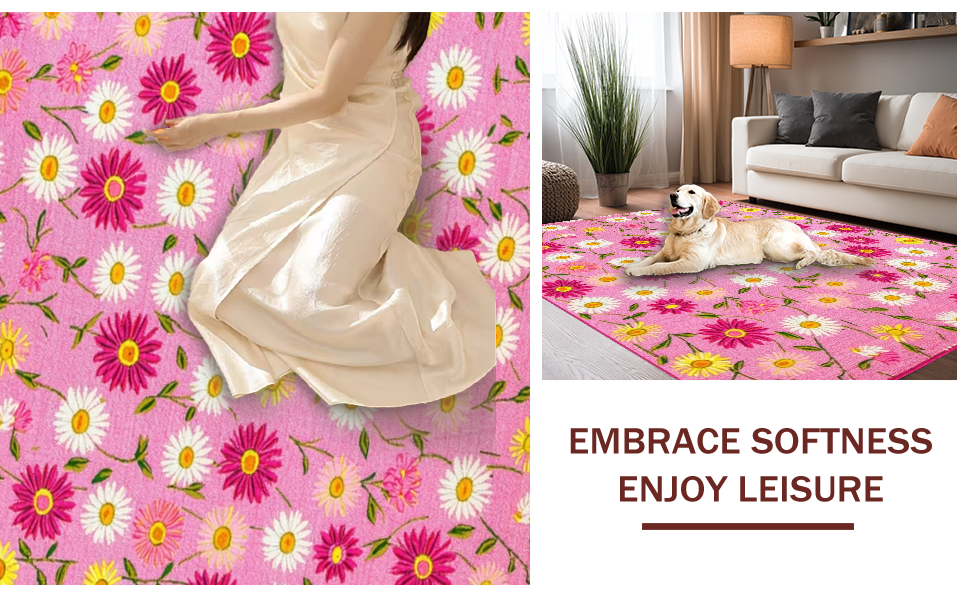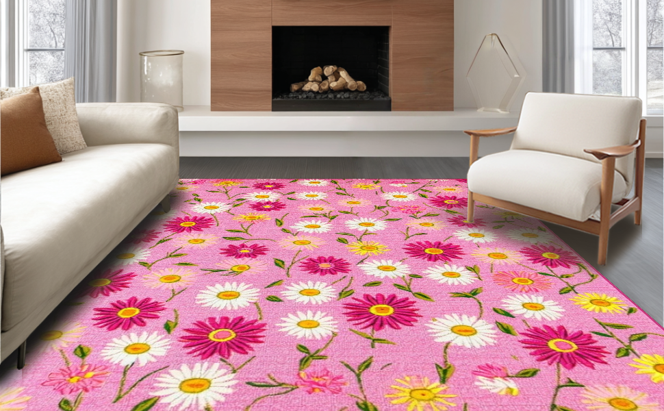 Ultra Soft Area Rug, Non Slip, Stain Resistant, Washable Area Rugs for Living Room, Bedroom, Cheerful Nature-Inspired Design(Pink) Overview: