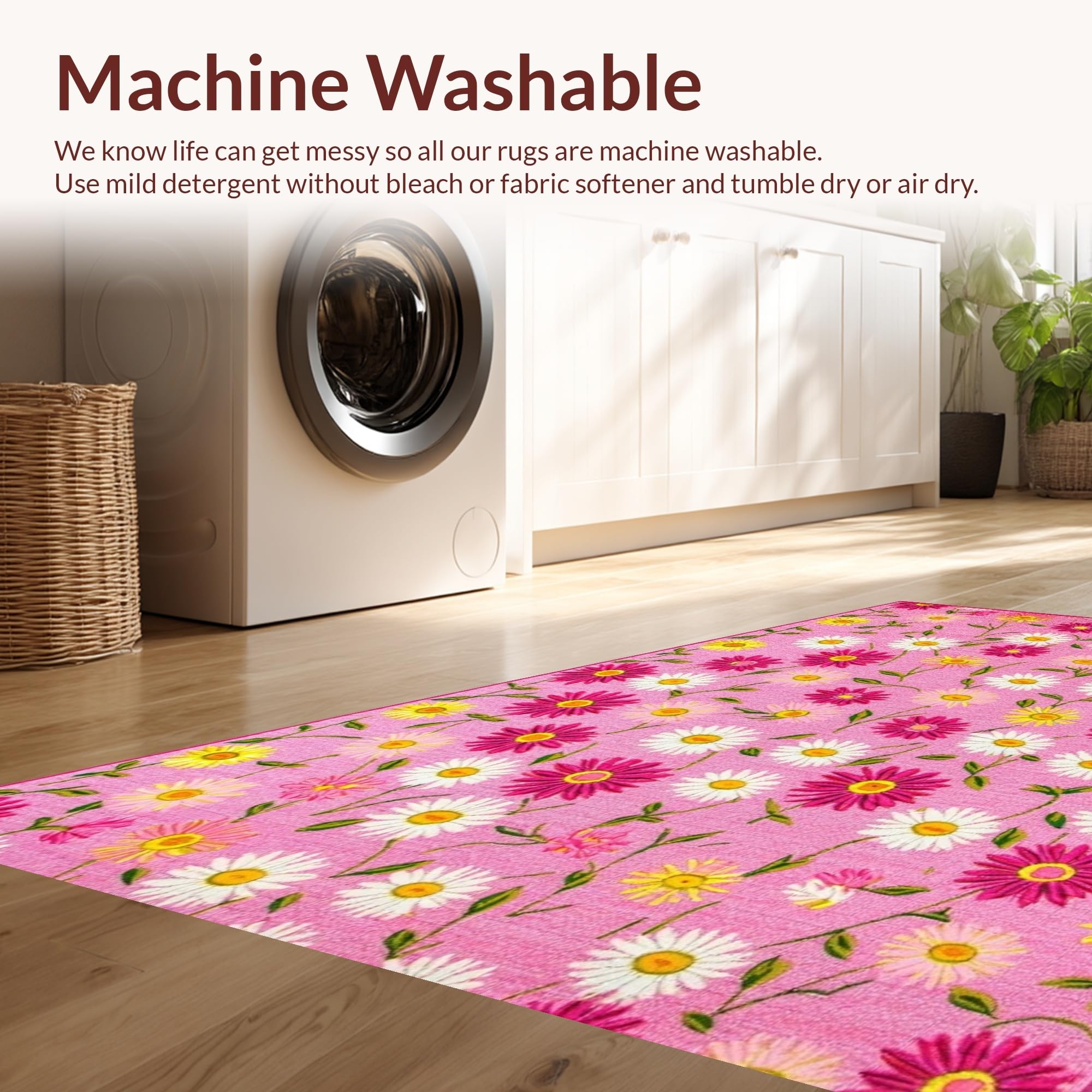 - Machine Washable: Our rugs can be easily thrown in the wash machine.