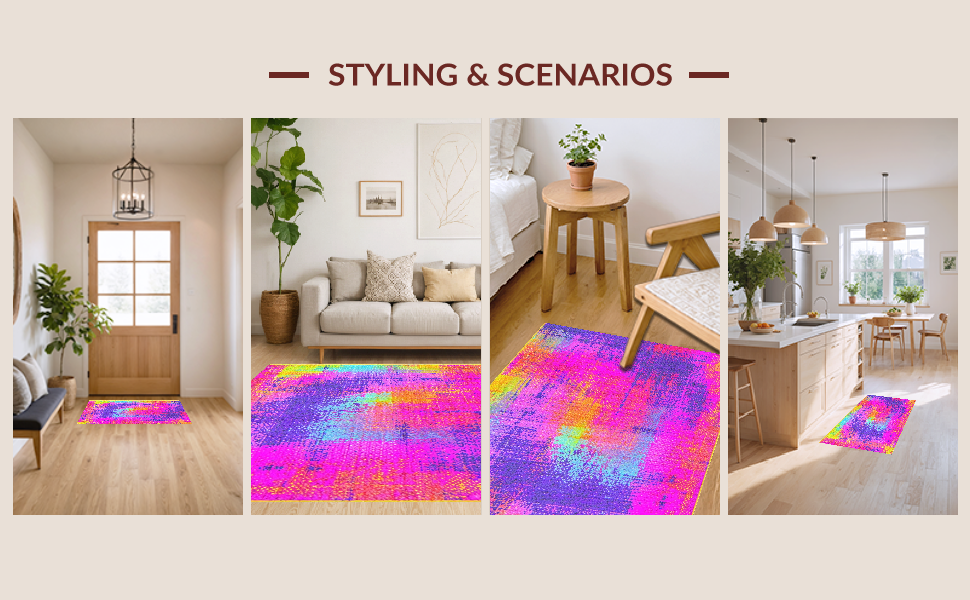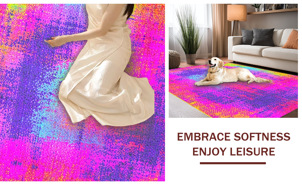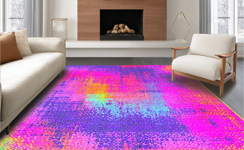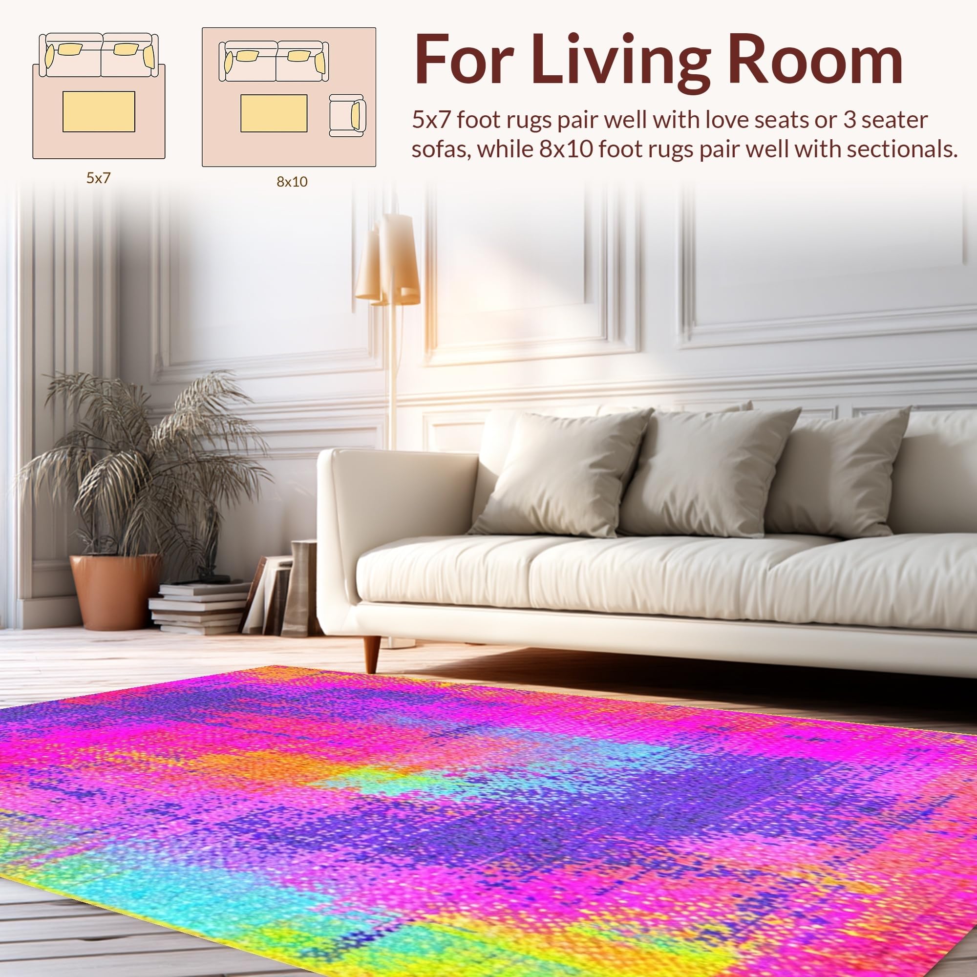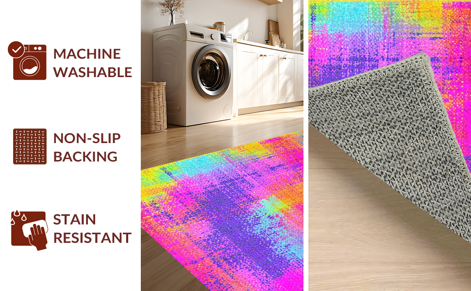 Ultra Soft Area Rug, Non Slip, Stain Resistant, Washable Area Rugs for Living Room, Bedroom, Cheerful Pastel Rainbow Vibe(Pink) Overview: