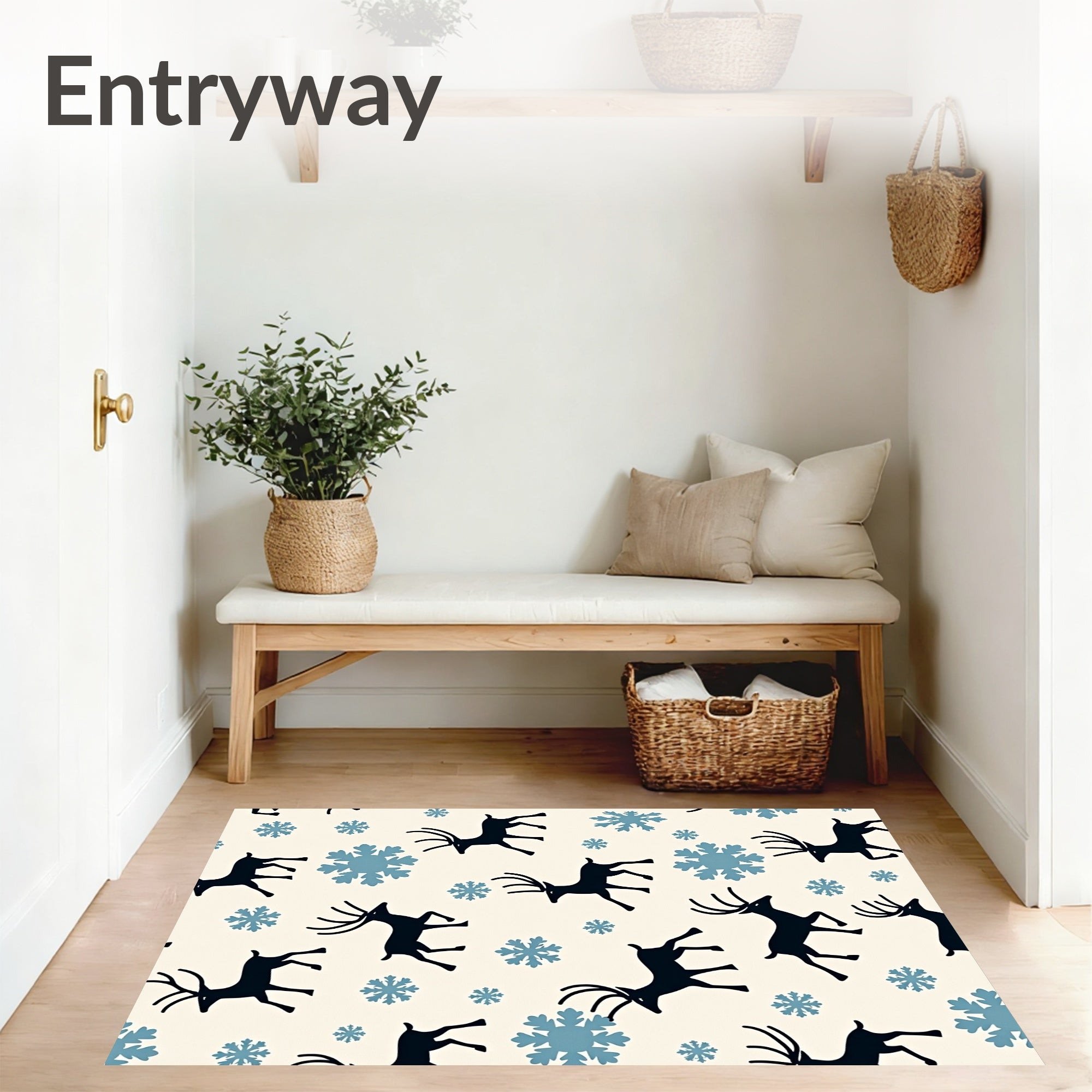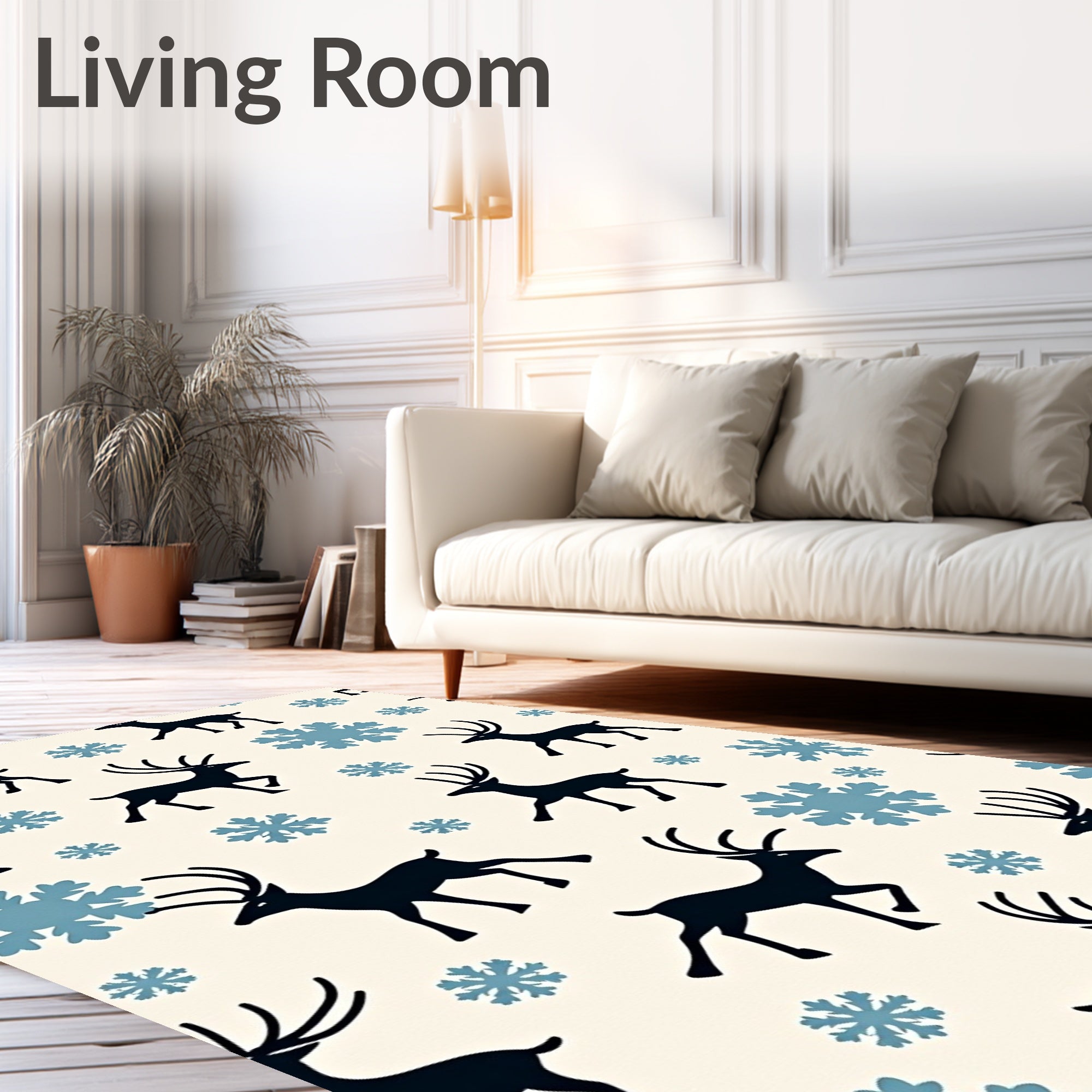Ultra Soft Area Rug, Non Slip, Stain Resistant, Washable Area Rugs for Living Room, Bedroom, Cheerful Reindeer with Nordic Snowfall(Black) Overview: