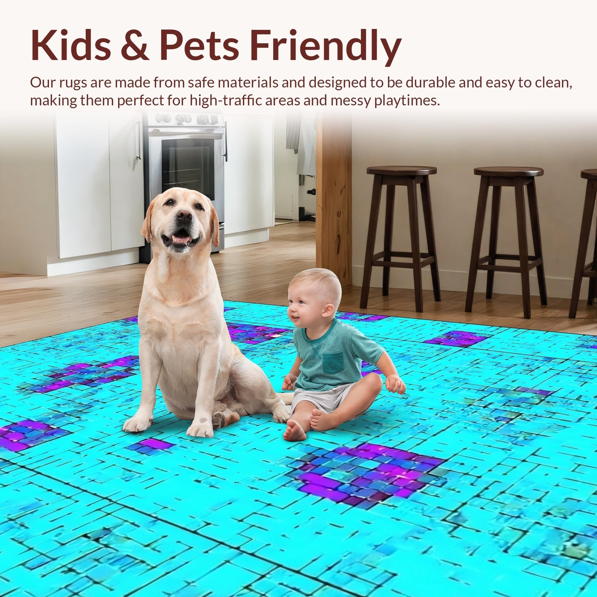 Ultra Soft Area Rug, Non Slip, Stain Resistant, Washable Area Rugs for Living Room, Bedroom, Cheerful Round Learning Floor Pads(Blue) Overview: