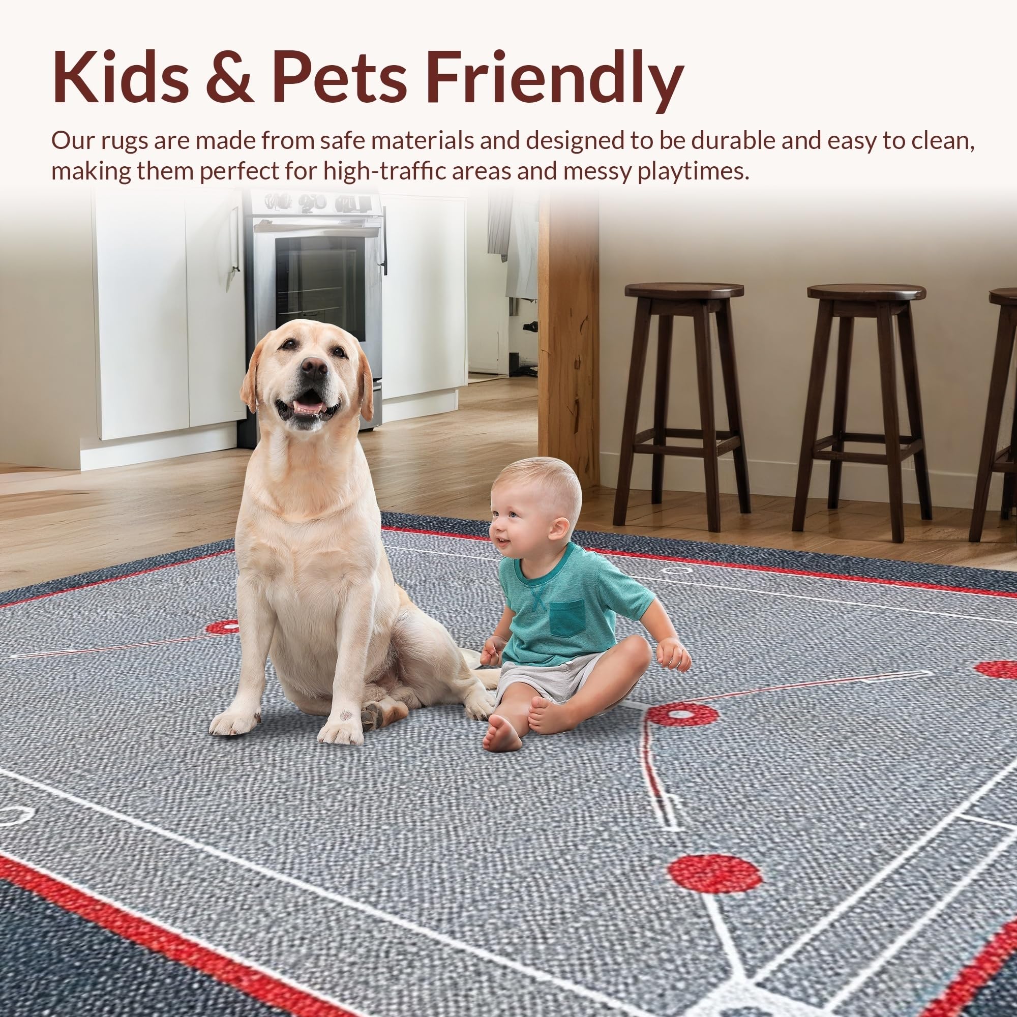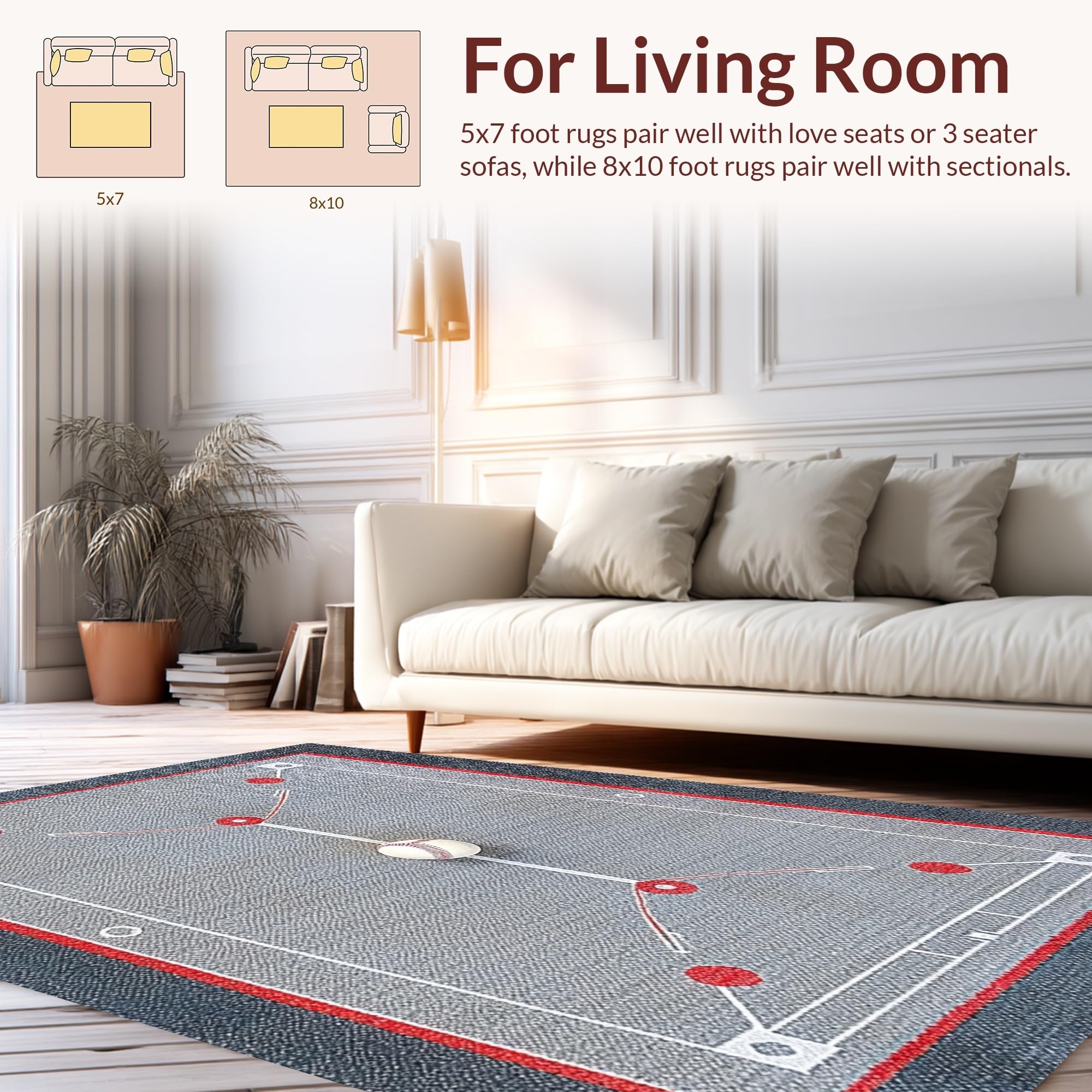 Ultra Soft Area Rug, Non Slip, Stain Resistant, Washable Area Rugs for Living Room, Bedroom, Cheerful Round Rug with Athletic Motif(Gray) Overview: