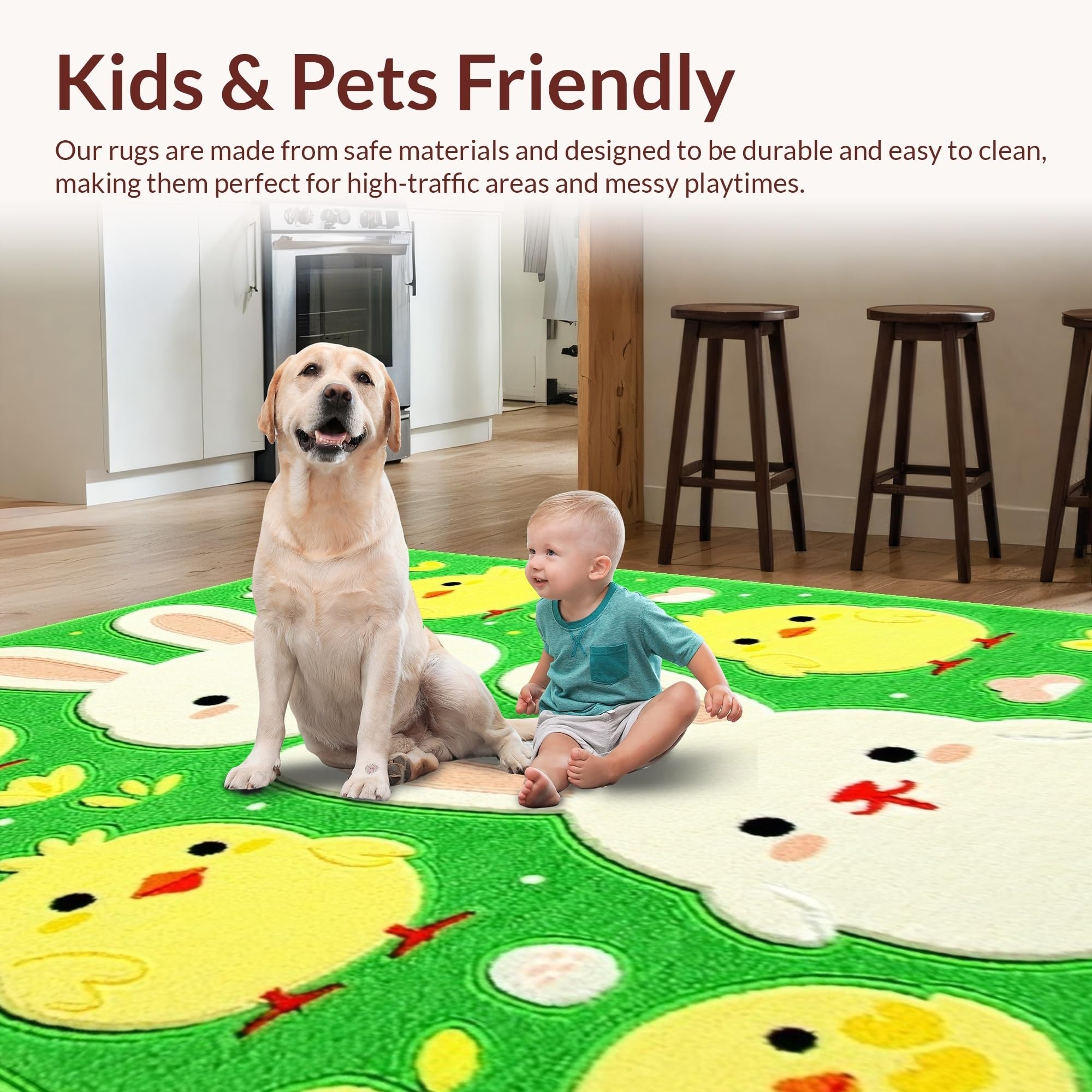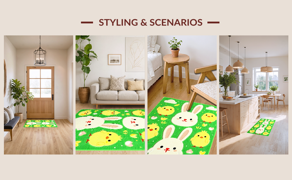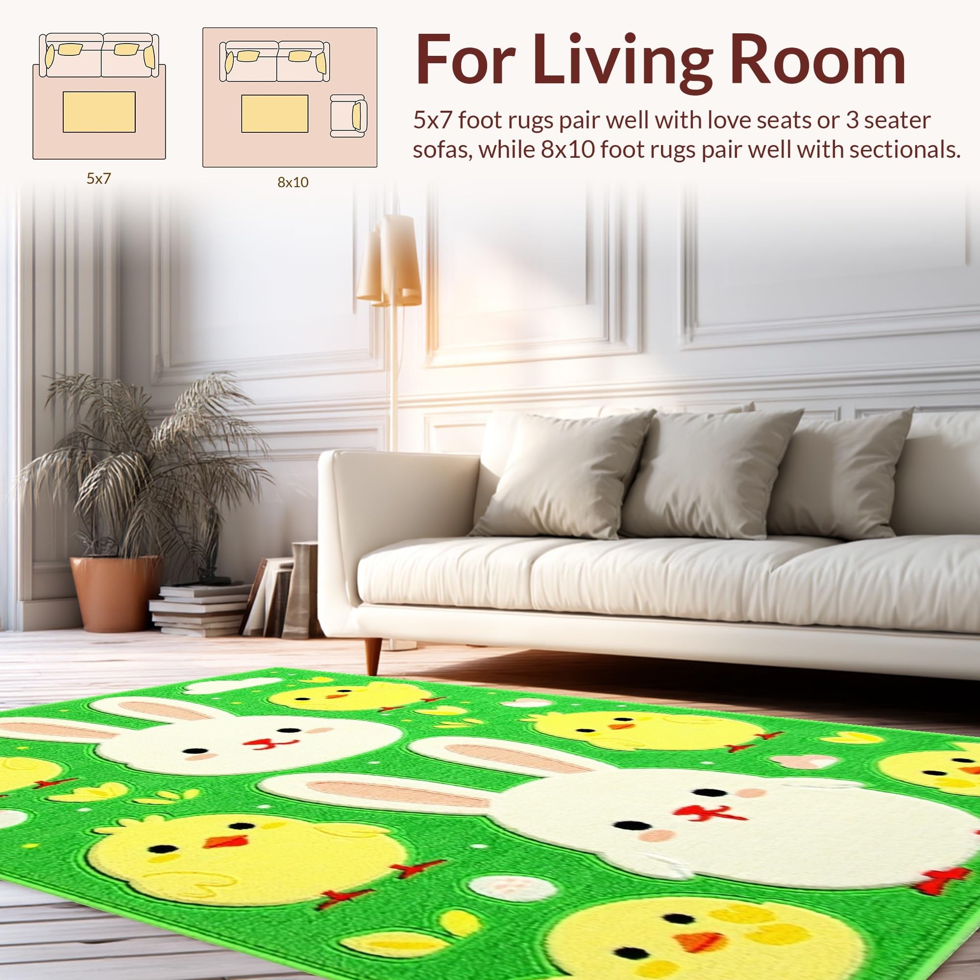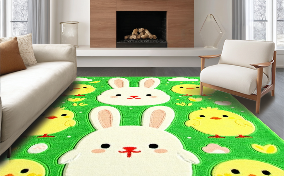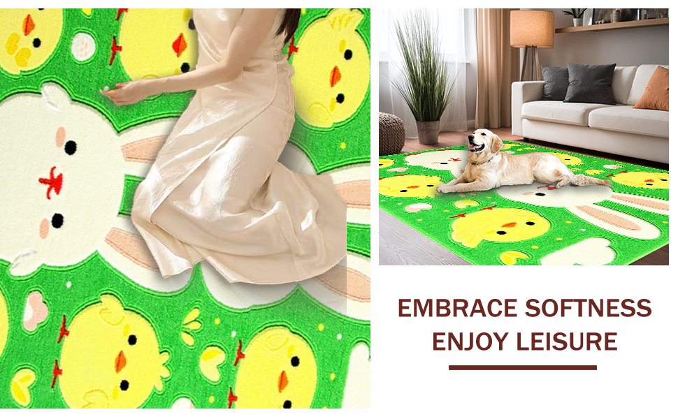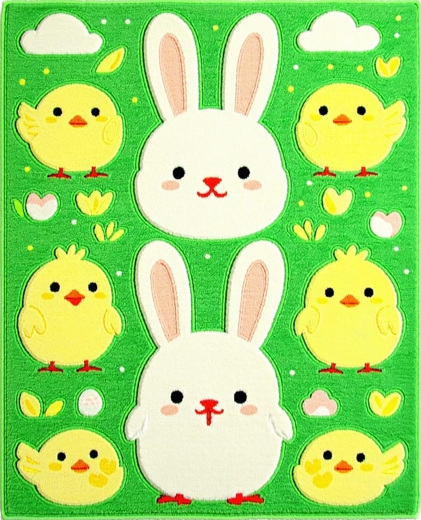 Ultra Soft Area Rug, Non Slip, Stain Resistant, Washable Area Rugs for Living Room, Bedroom, Cheerful Spring Garden Illustration(Green) Overview: