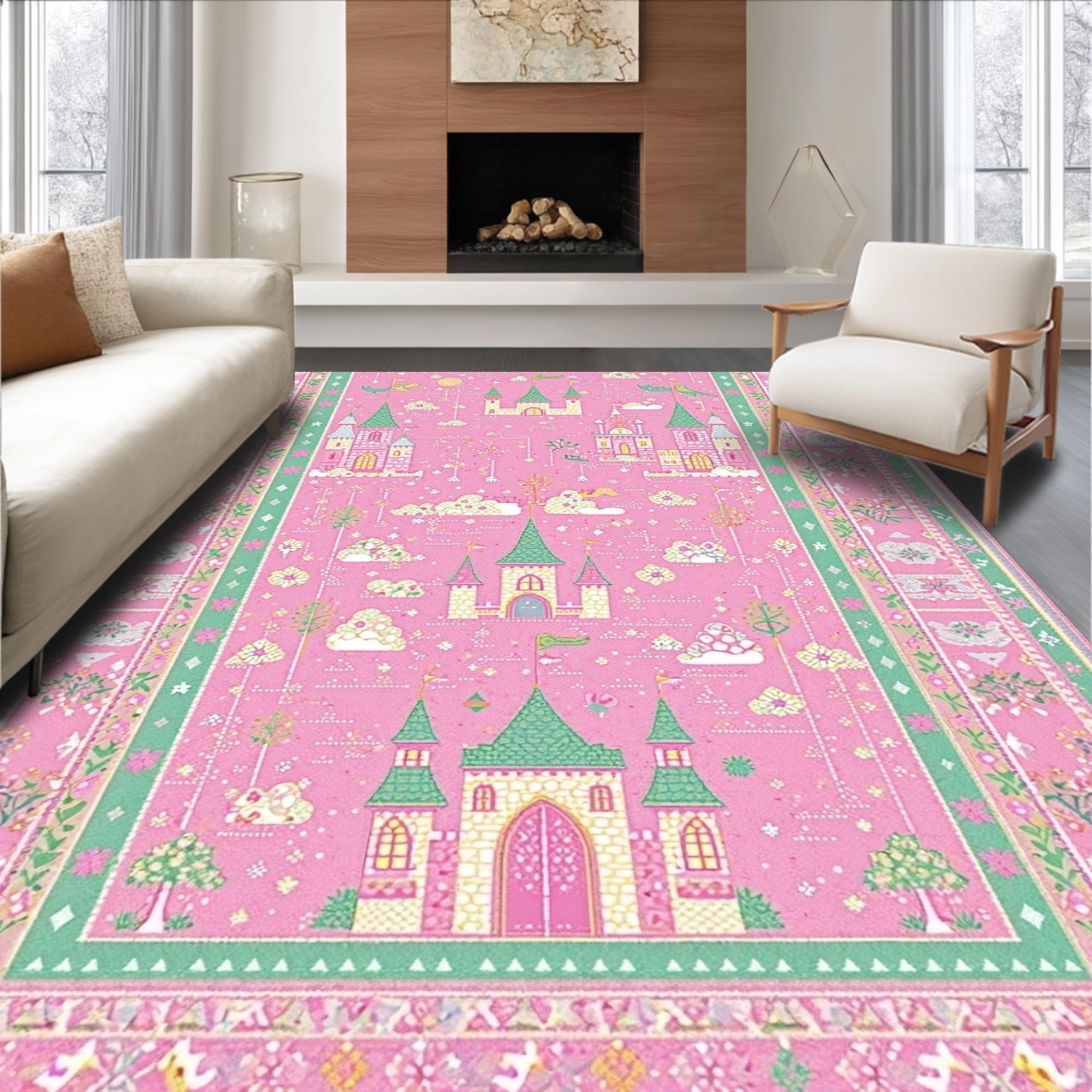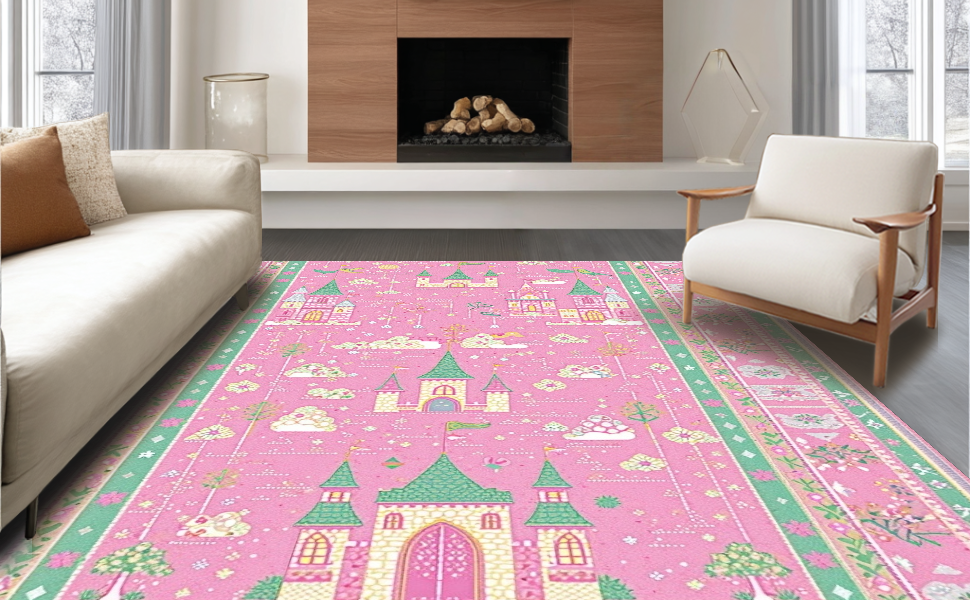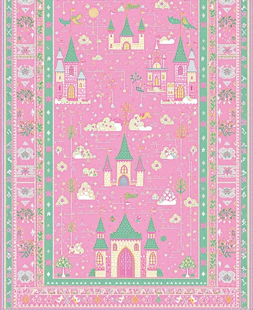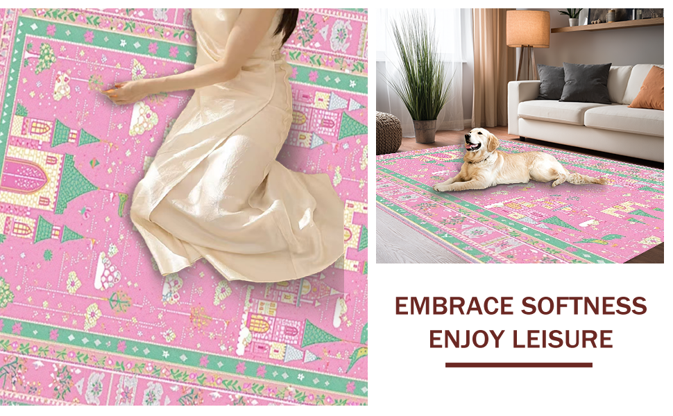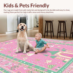 Ultra Soft Area Rug, Non Slip, Stain Resistant, Washable Area Rugs for Living Room, Bedroom, Cheerful Storybook Garden Theme(Pink) Overview: