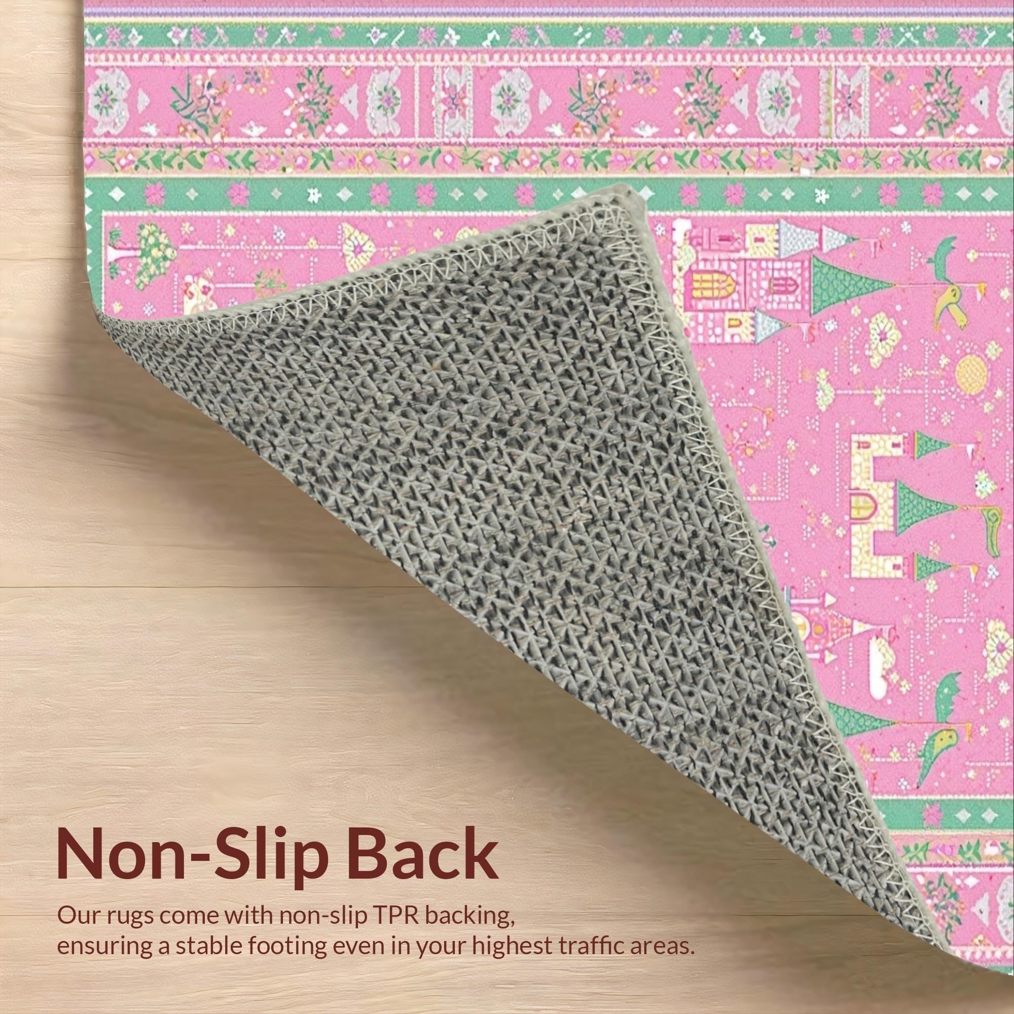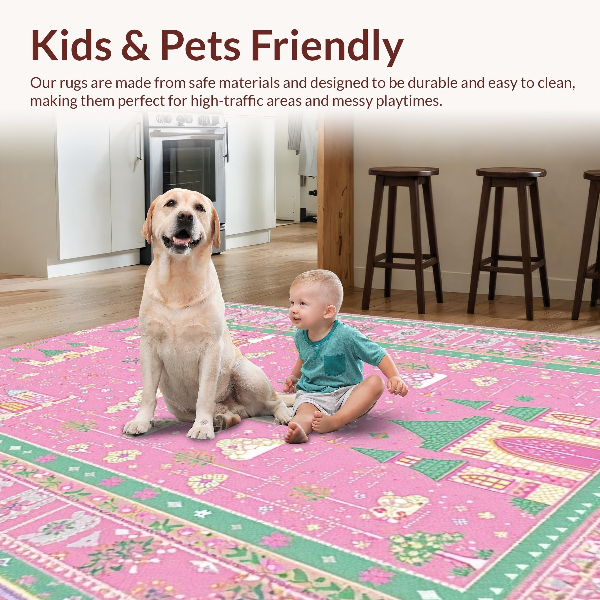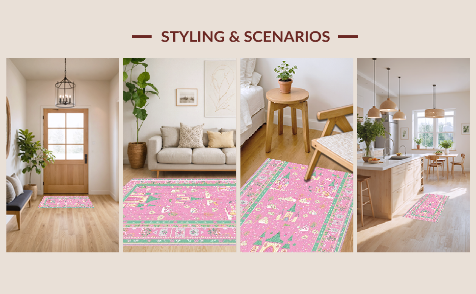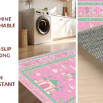 Ultra Soft Area Rug, Non Slip, Stain Resistant, Washable Area Rugs for Living Room, Bedroom, Cheerful Storybook Garden Theme(Pink) Overview: