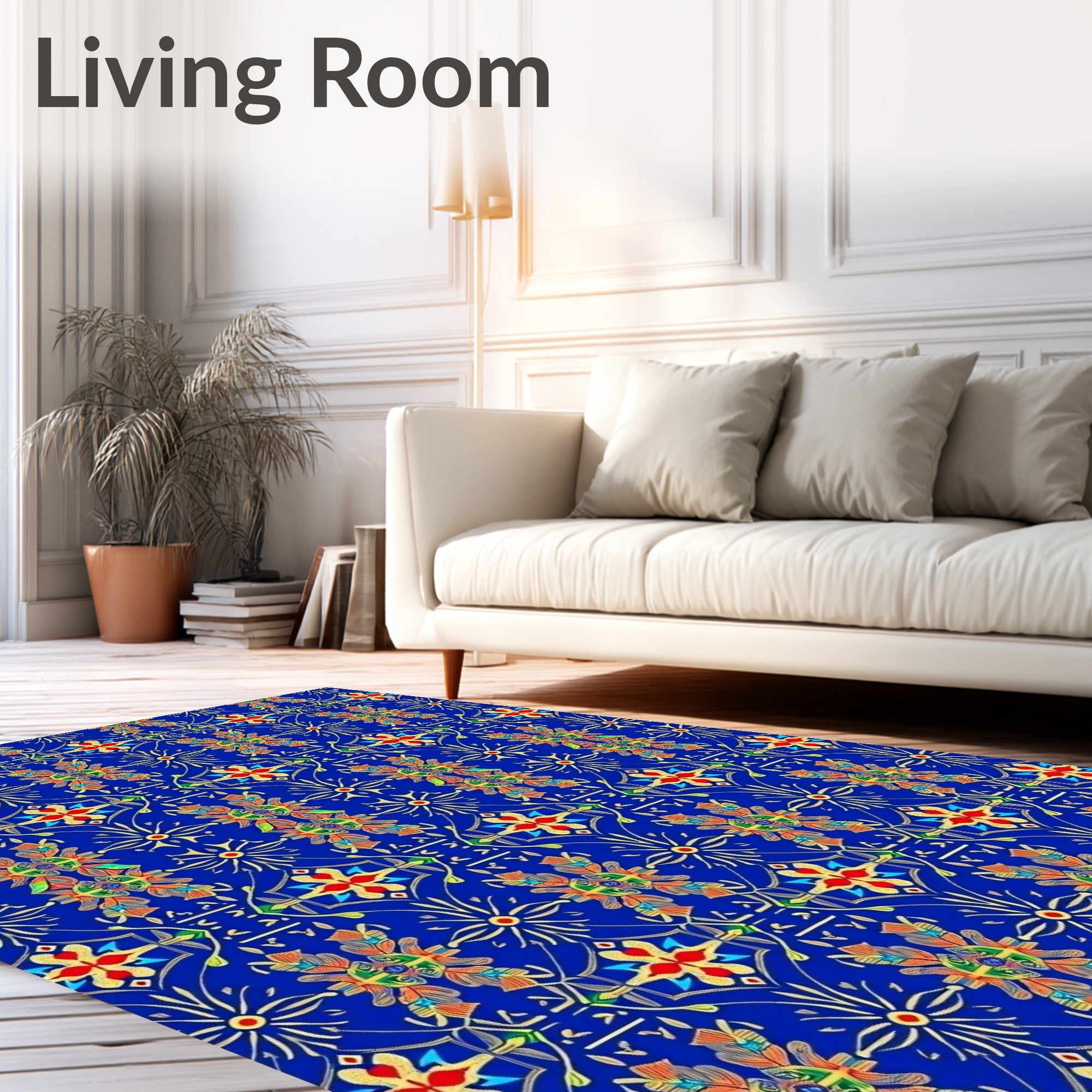 Ultra Soft Area Rug, Non Slip, Stain Resistant, Washable Area Rugs for Living Room, Bedroom, Cheerful Tinsel Trail with Interlocking Starbursts and Sparkling(Blue) Overview: