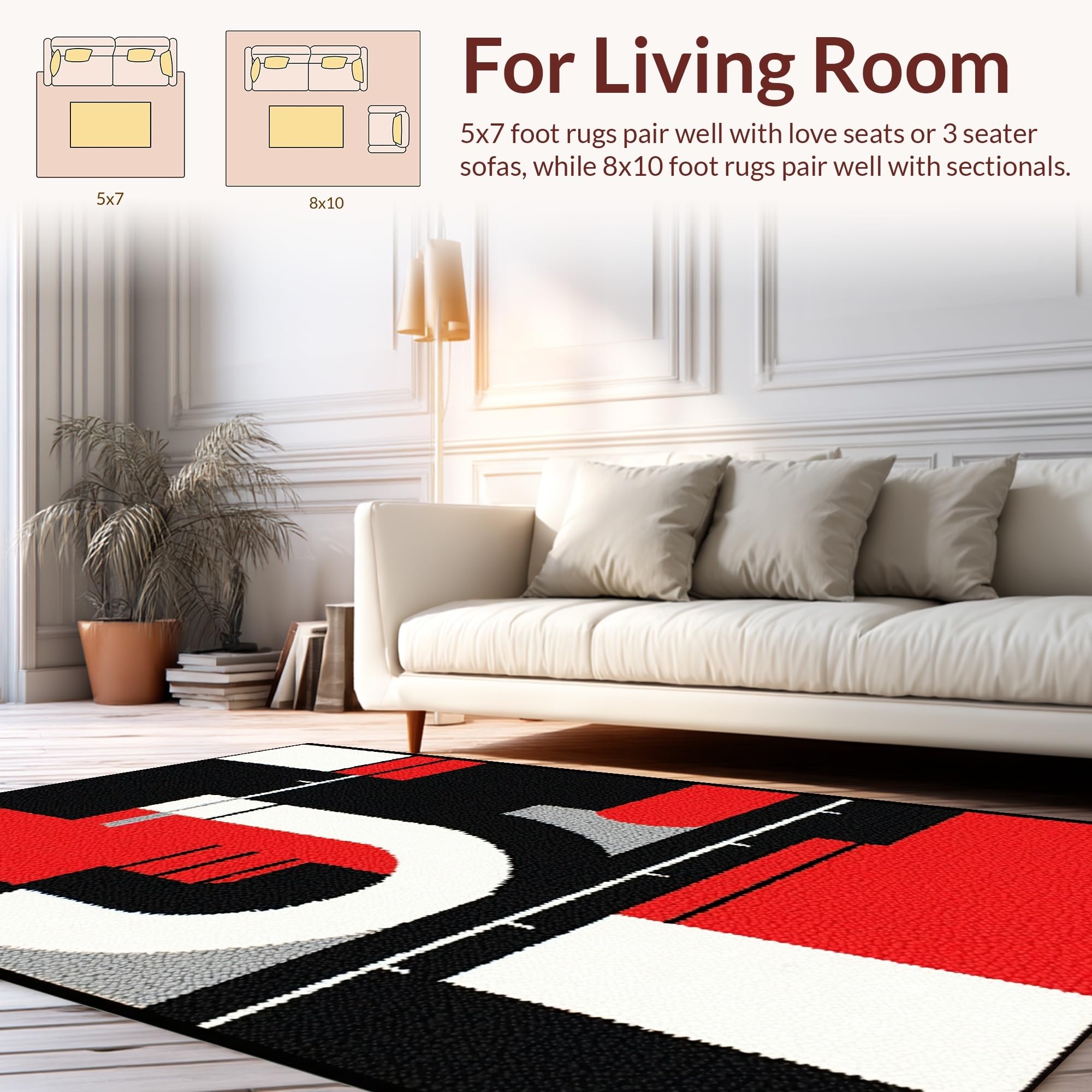 Ultra Soft Area Rug, Non Slip, Stain Resistant, Washable Area Rugs for Living Room, Bedroom, Cheerful Toy Car Route Display(Red) Overview: