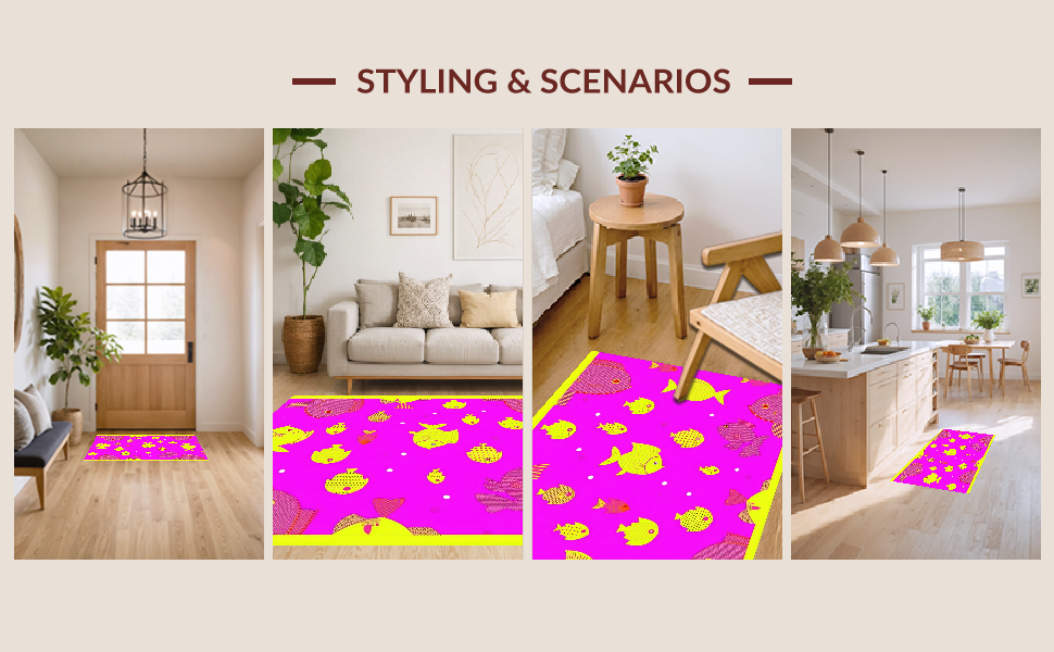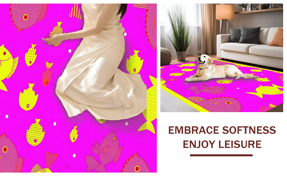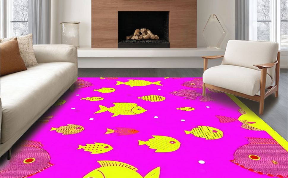 Ultra Soft Area Rug, Non Slip, Stain Resistant, Washable Area Rugs for Living Room, Bedroom, Cheerful Yellow Minimalist Design(Pink) Overview: