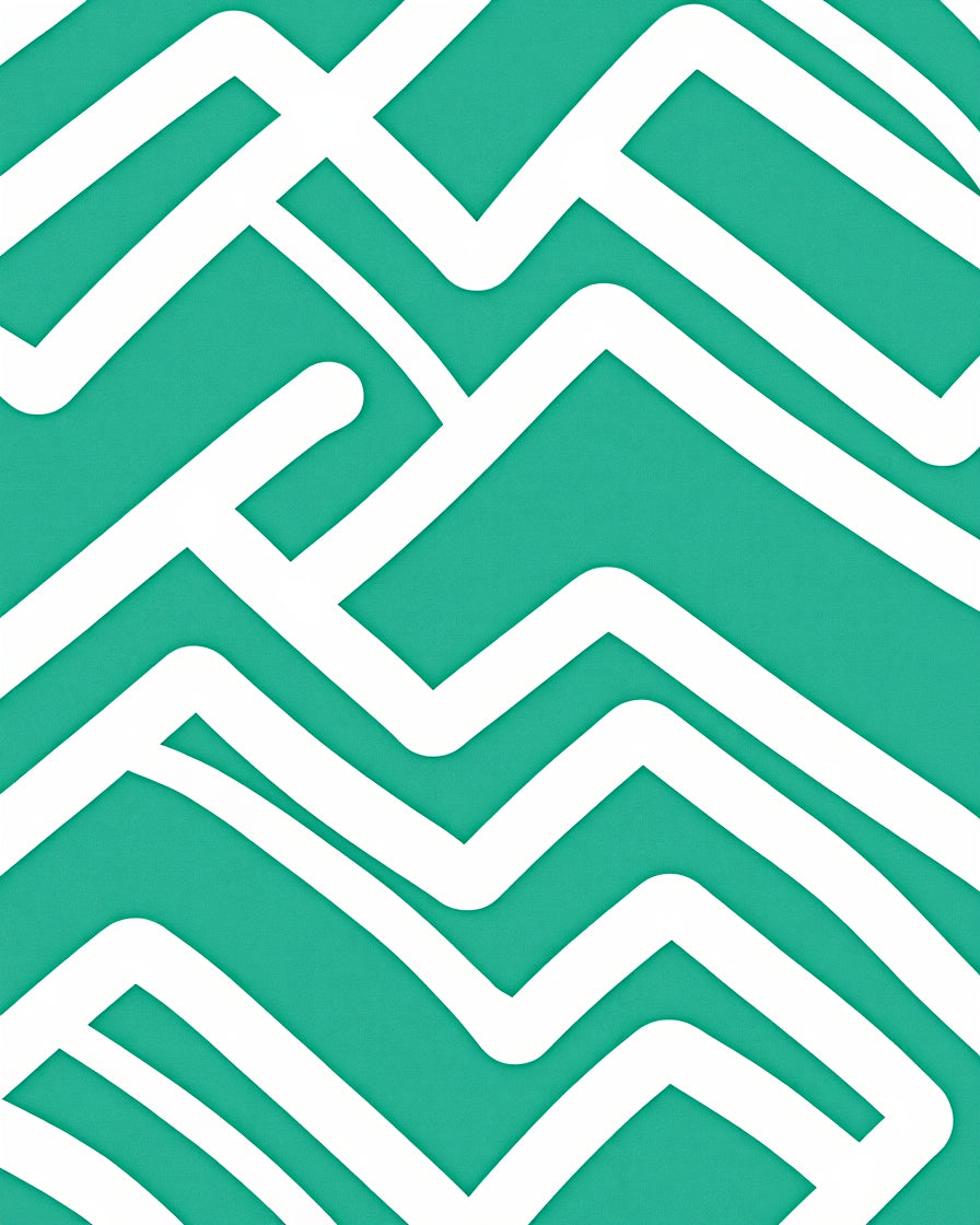 Chevron Zigzag Striped Floor with Contemporary Wave Design(Teal)