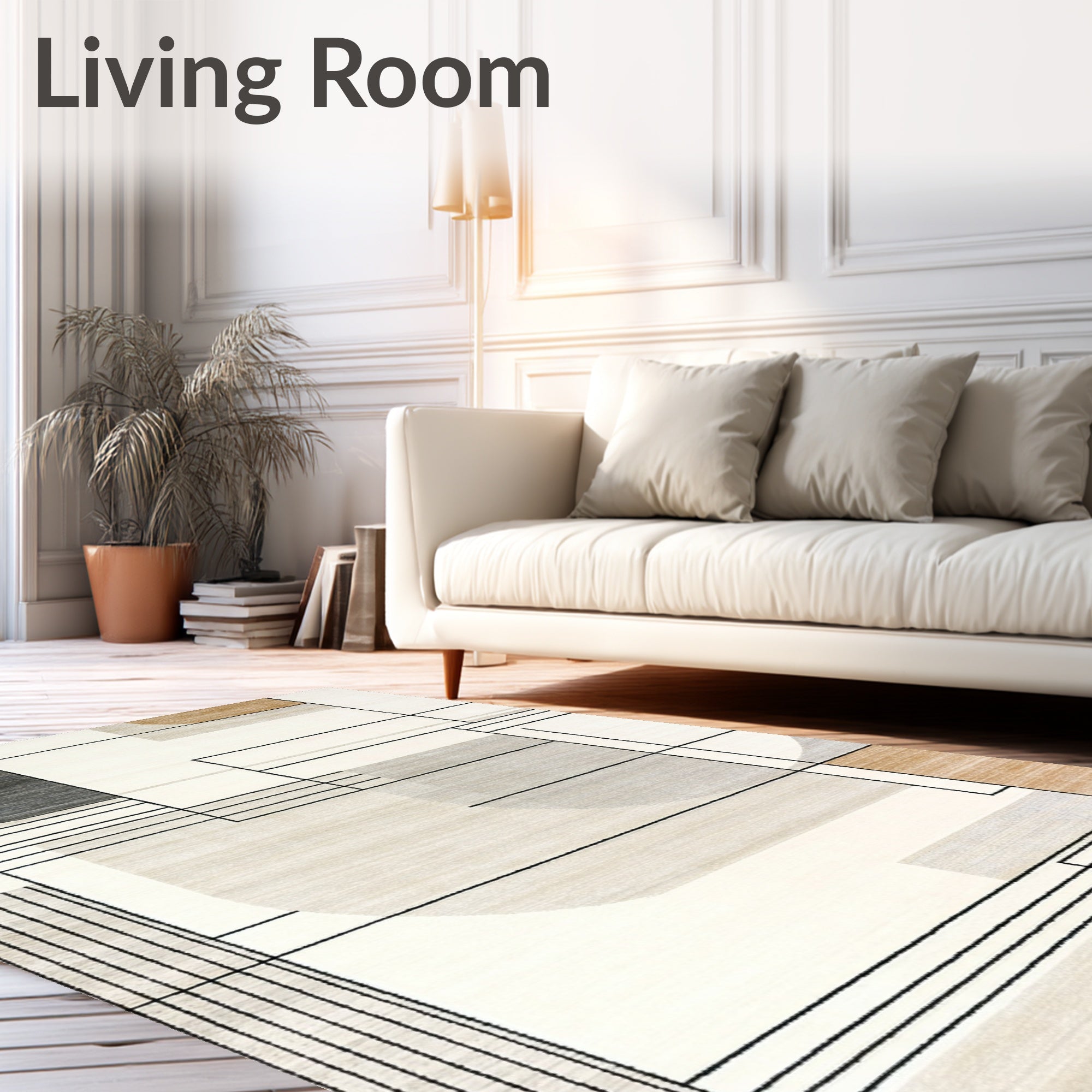 Ultra Soft Area Rug, Non Slip, Stain Resistant, Washable Area Rugs for Living Room, Bedroom, Chic Abstract Area Modern Beige Tones with Geometric Flair(Beige) Overview: