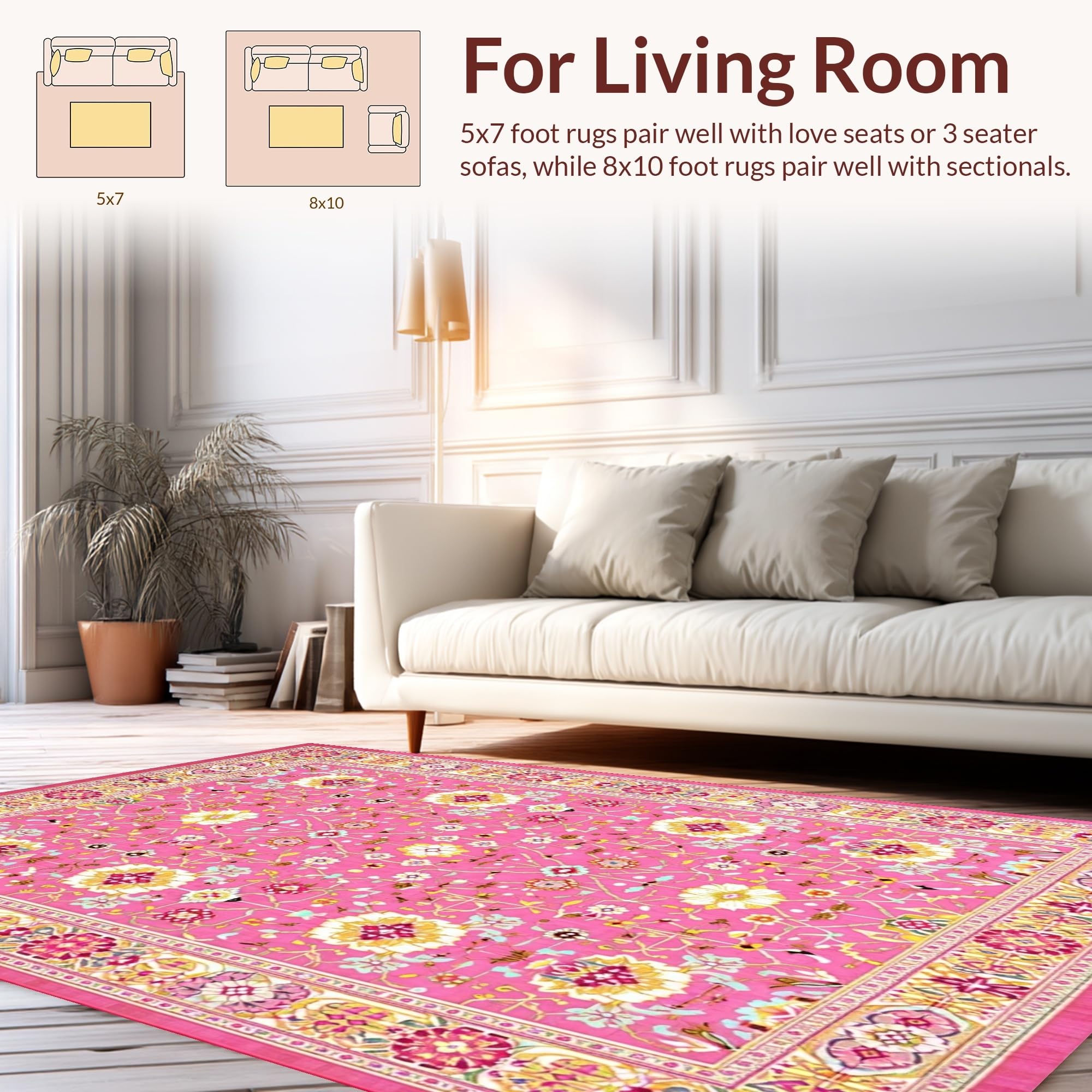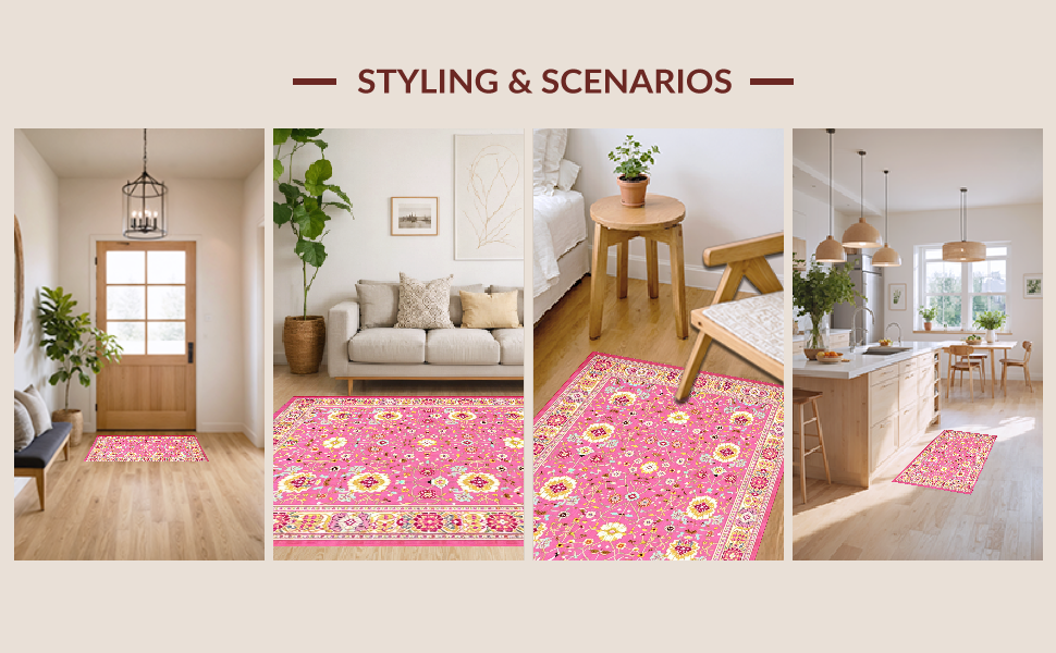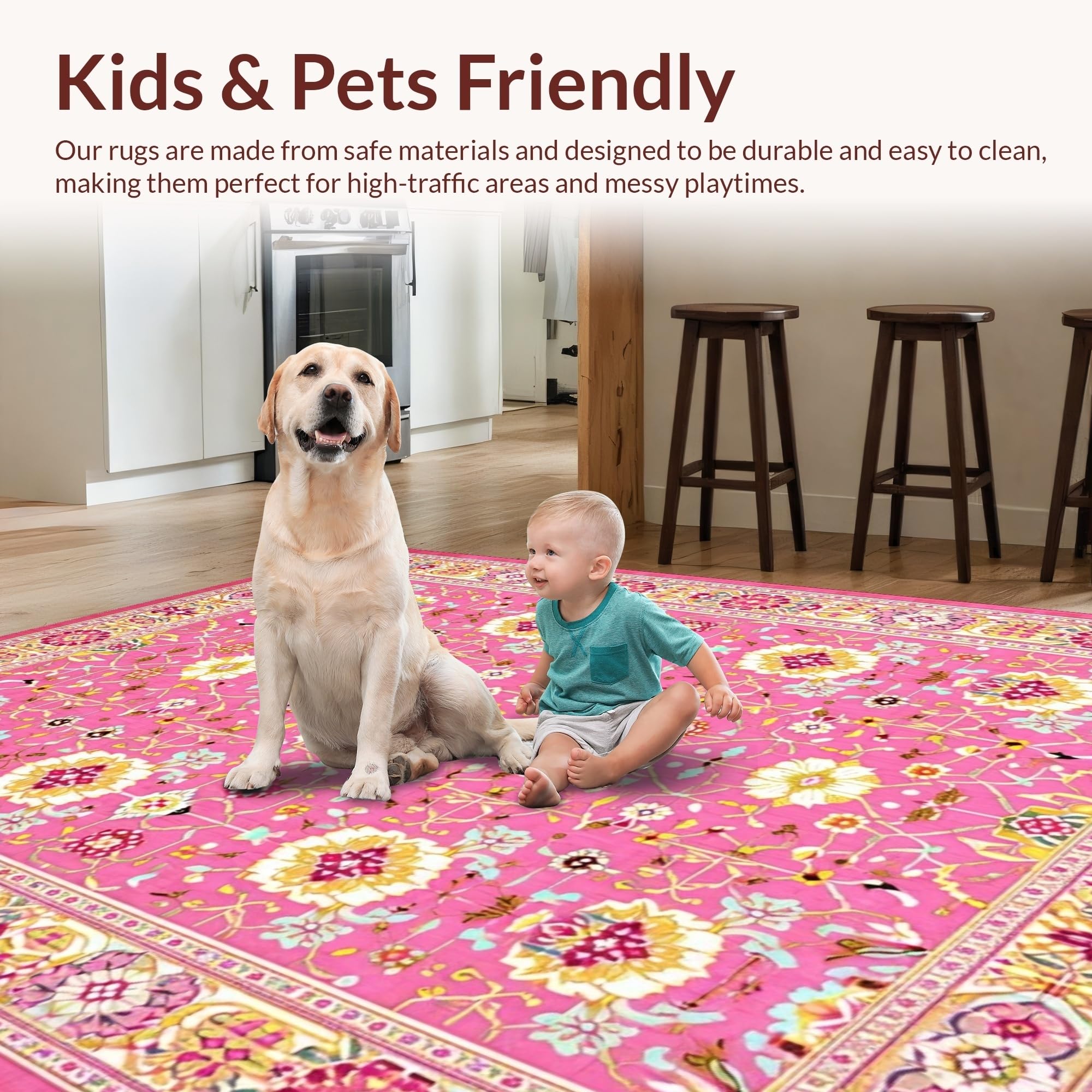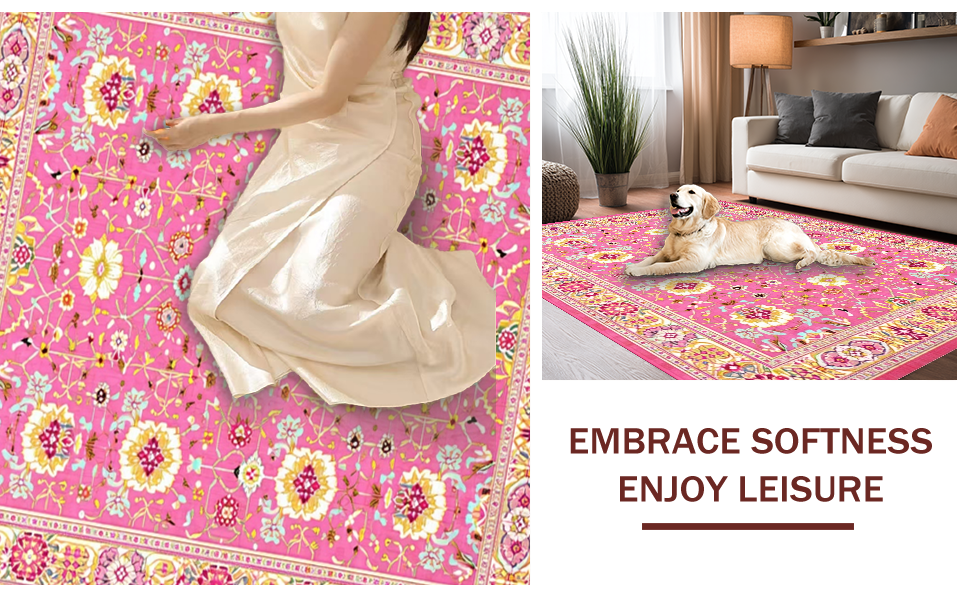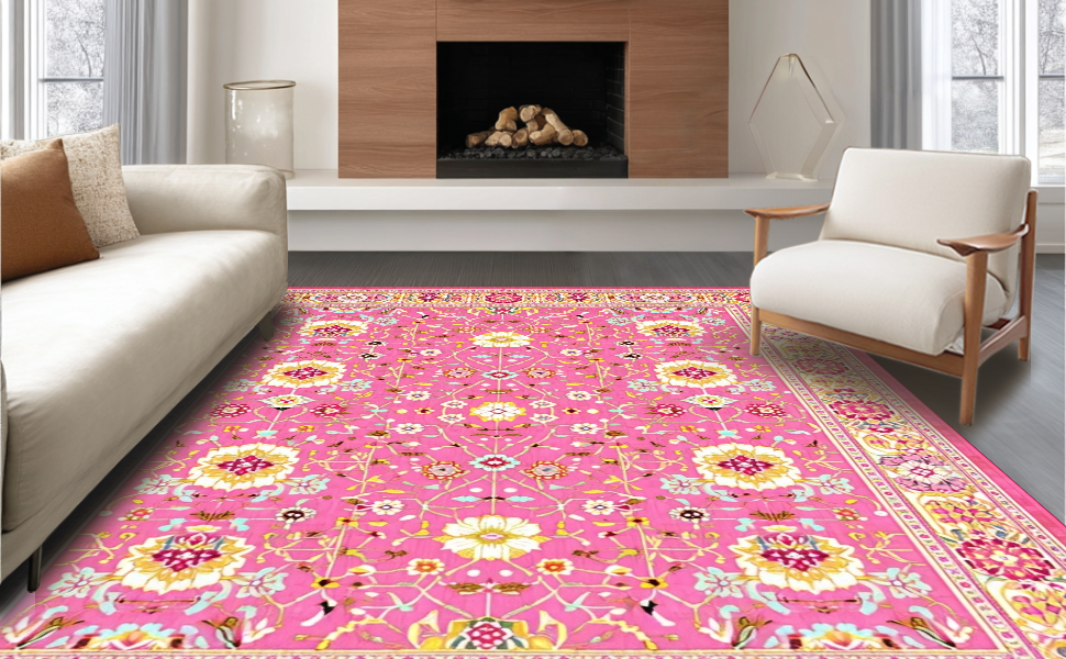 Ultra Soft Area Rug, Non Slip, Stain Resistant, Washable Area Rugs for Living Room, Bedroom, Chic Abstract Artful Arrangement(Pink) Overview: