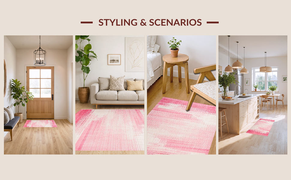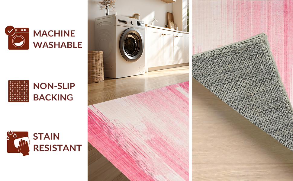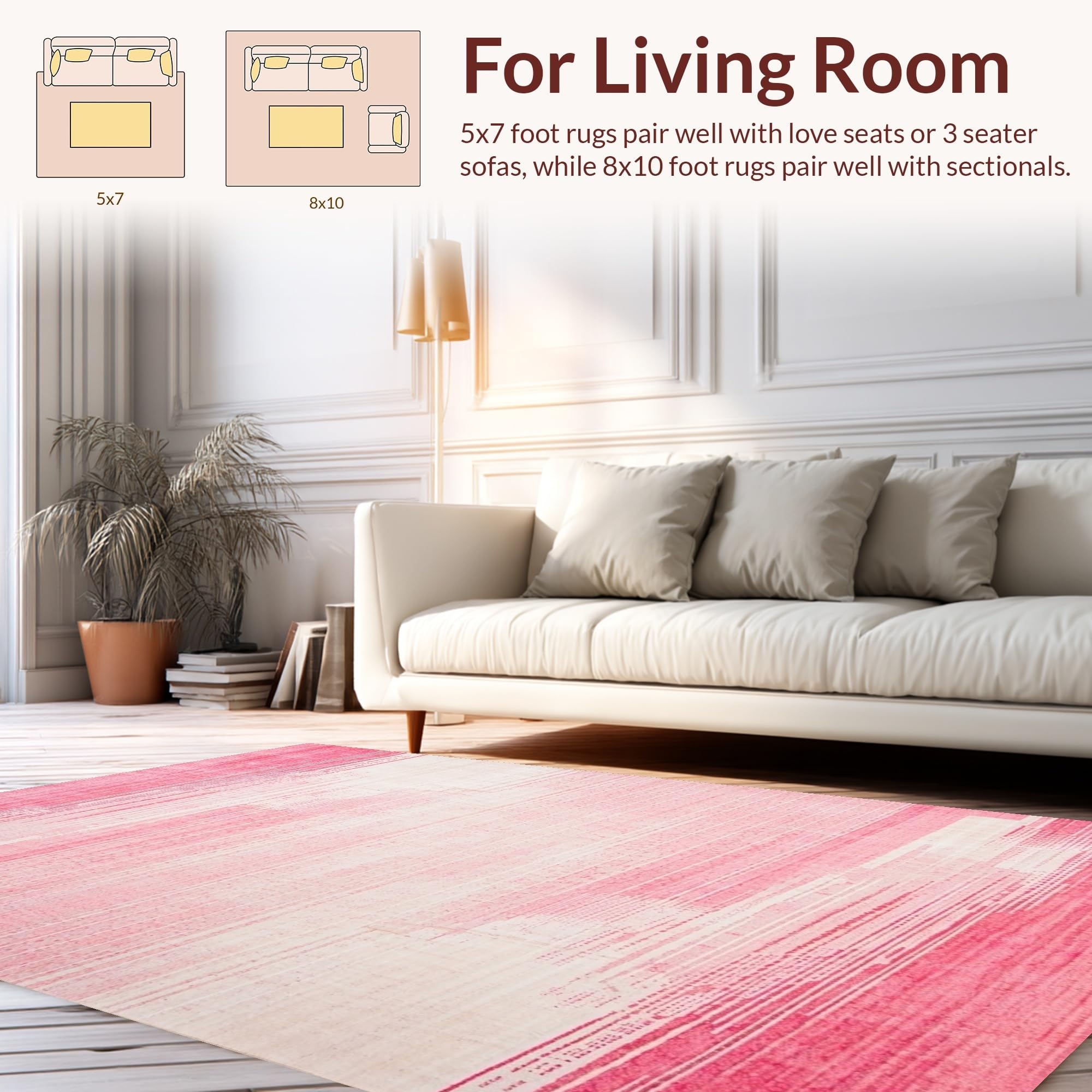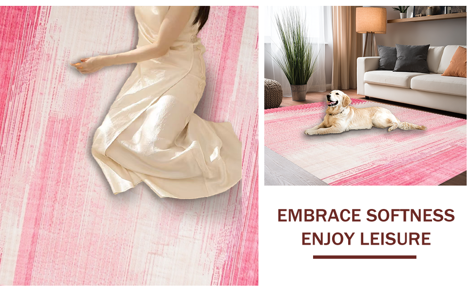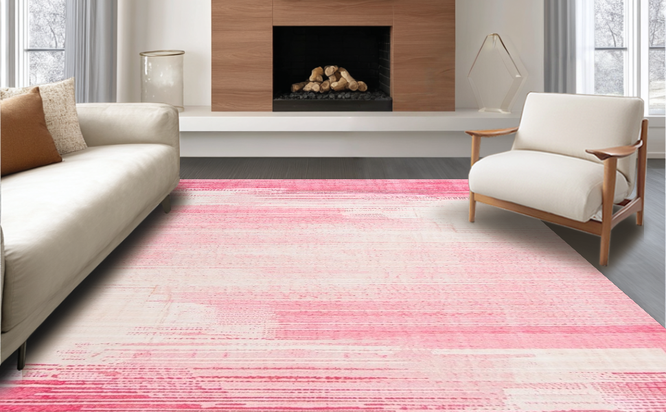 Ultra Soft Area Rug, Non Slip, Stain Resistant, Washable Area Rugs for Living Room, Bedroom, Chic Abstract Brushstroke Aesthetic(Pink) Overview: