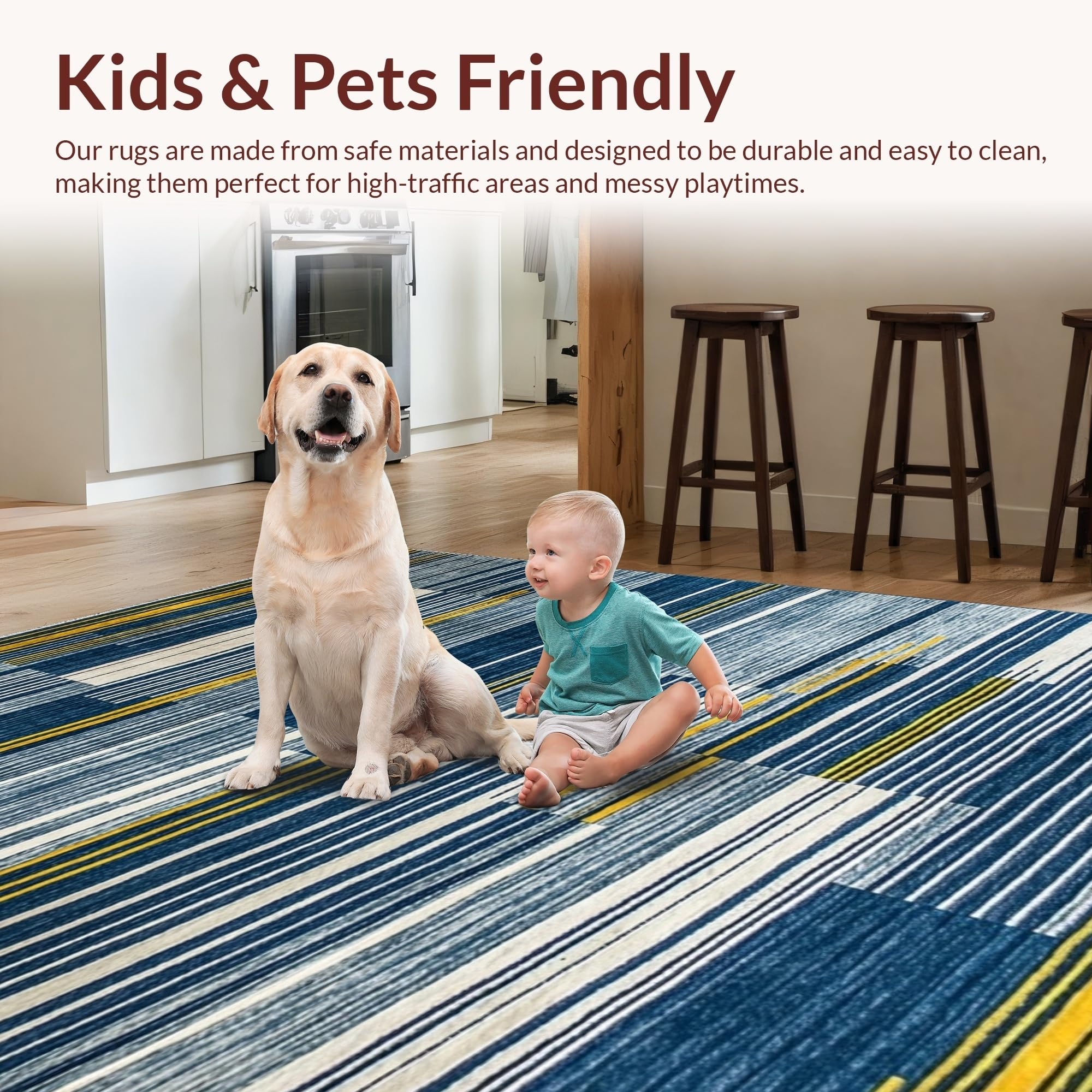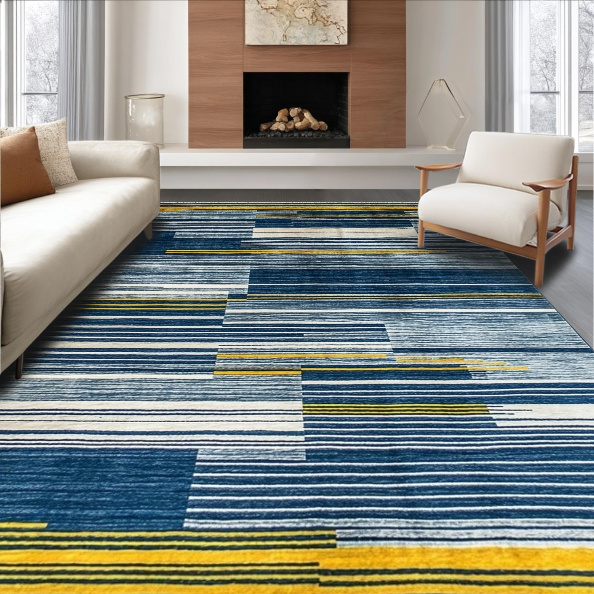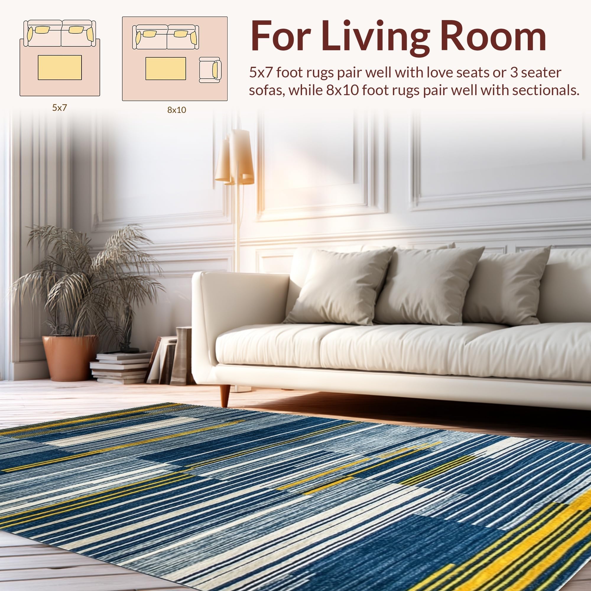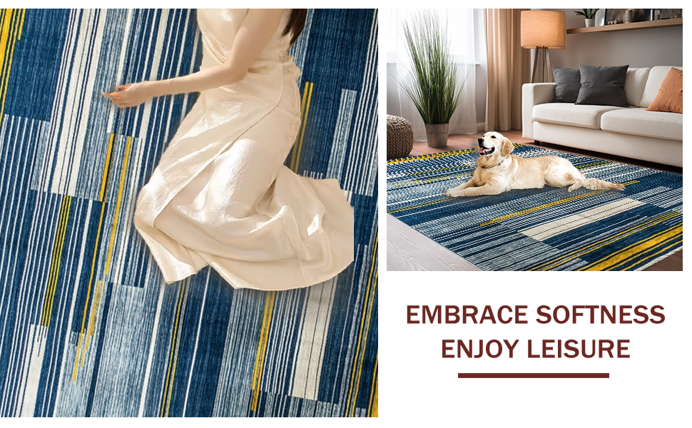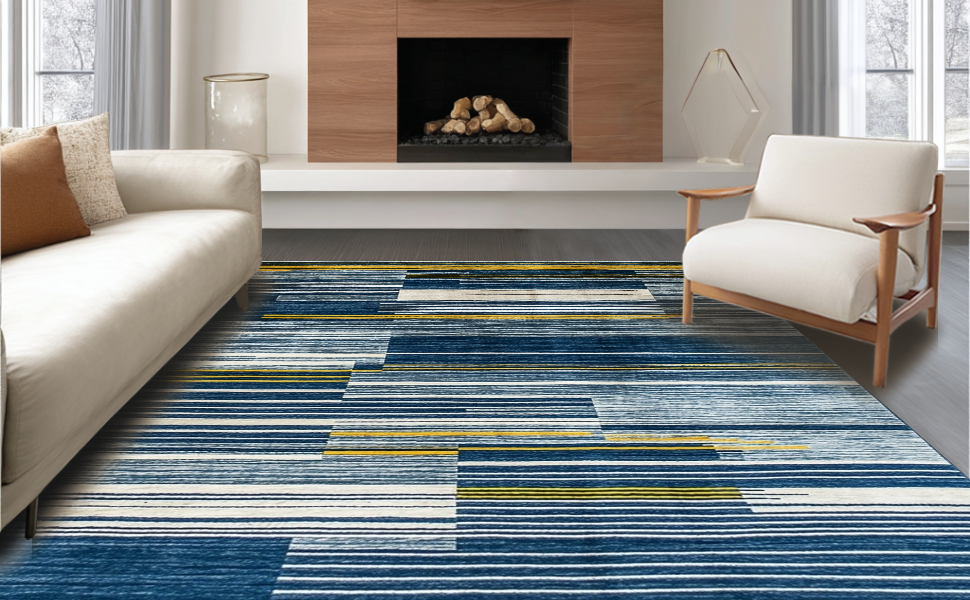 Ultra Soft Area Rug, Non Slip, Stain Resistant, Washable Area Rugs for Living Room, Bedroom, Chic Abstract Color Block Design(Blue) Overview: