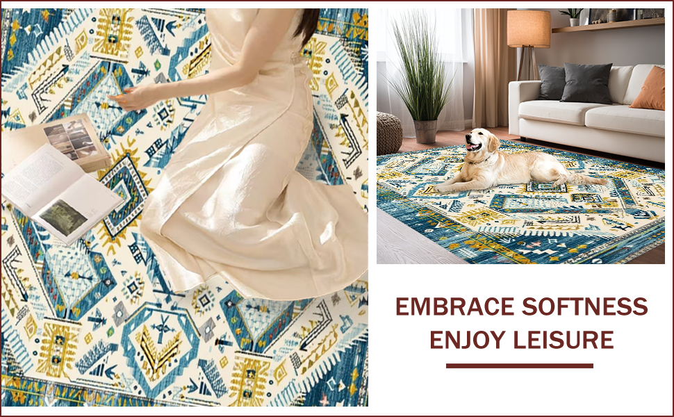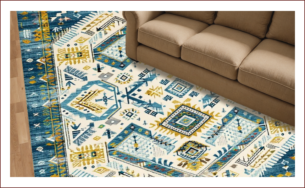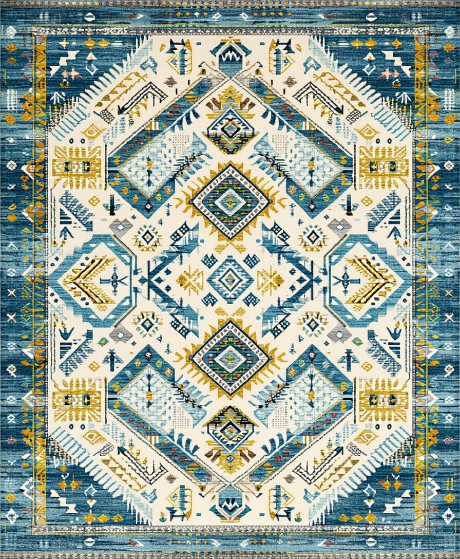 Ultra Soft Area Rug, Non Slip, Stain Resistant, Washable Area Rugs for Living Room, Bedroom, Chic Abstract Cream Aesthetic(Blue) Overview: