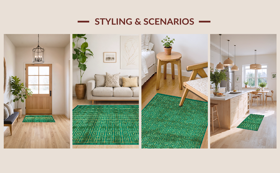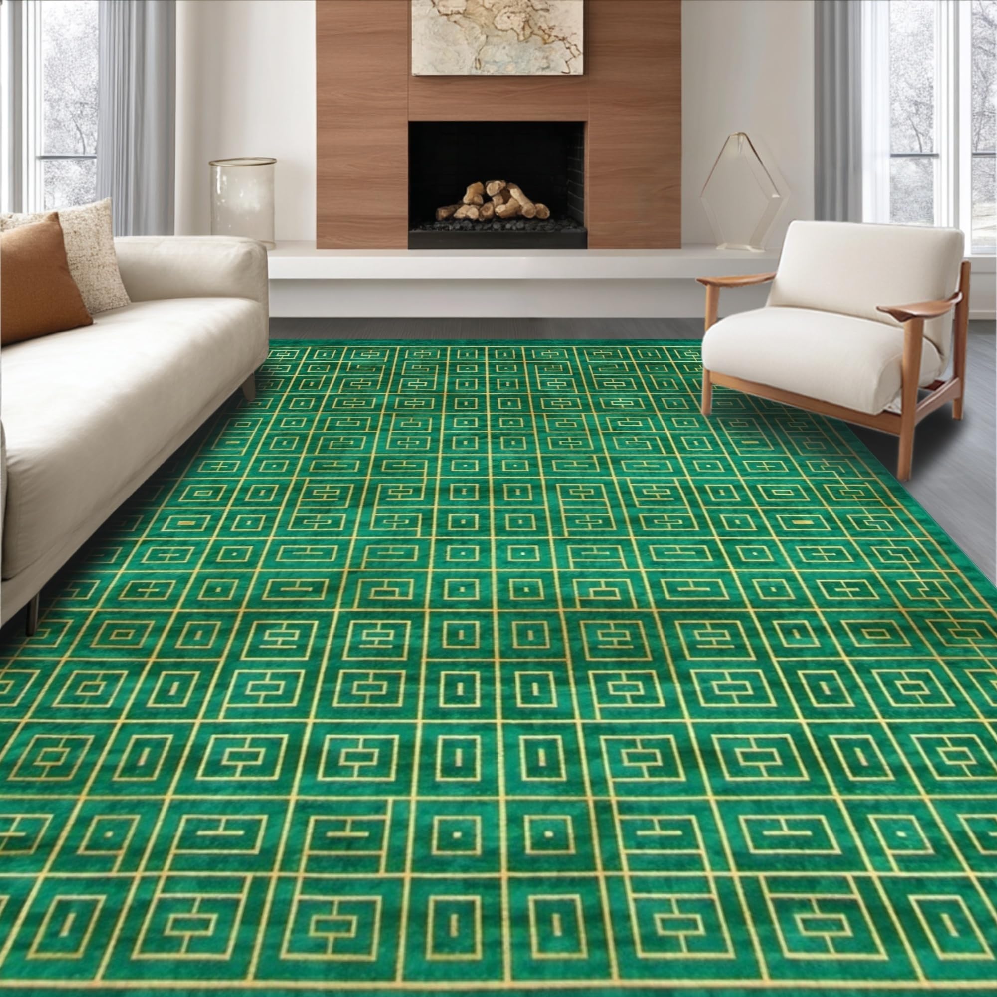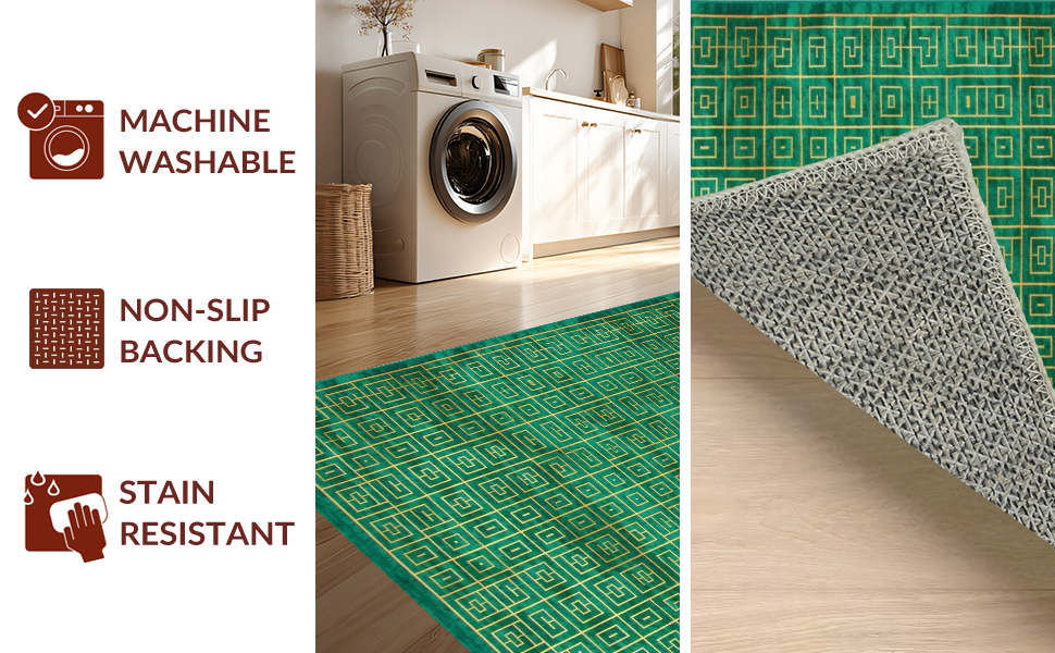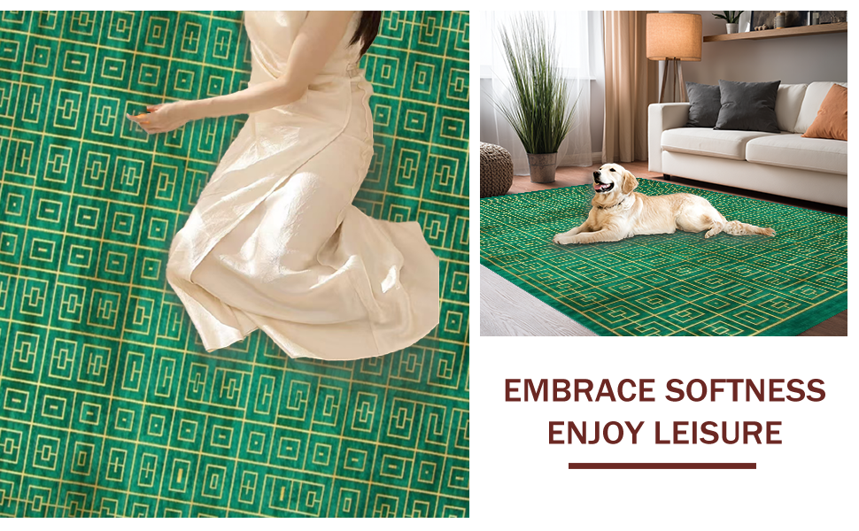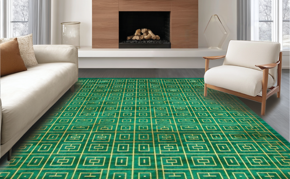 Ultra Soft Area Rug, Non Slip, Stain Resistant, Washable Area Rugs for Living Room, Bedroom, Chic Abstract Emerald Design(Green) Overview: