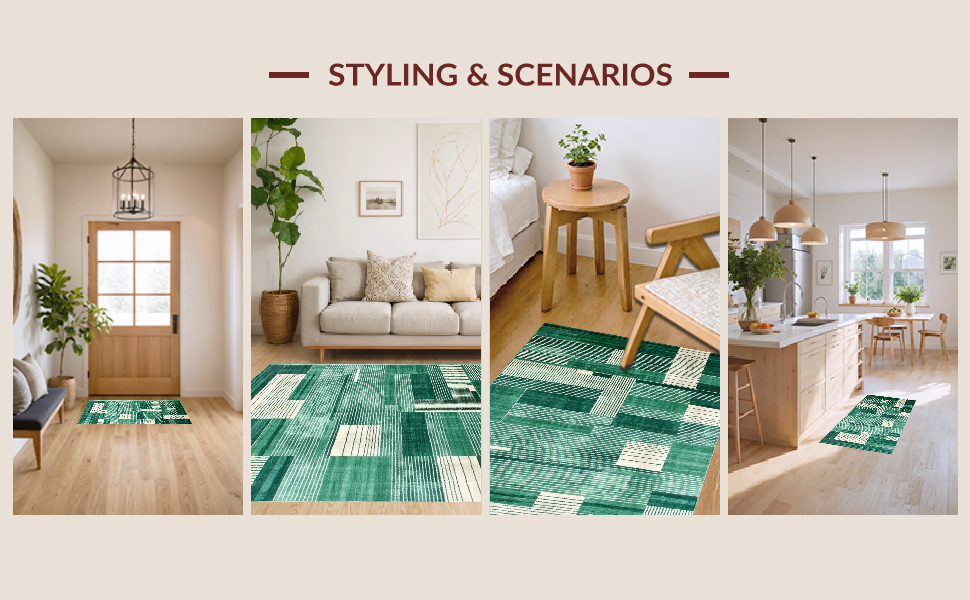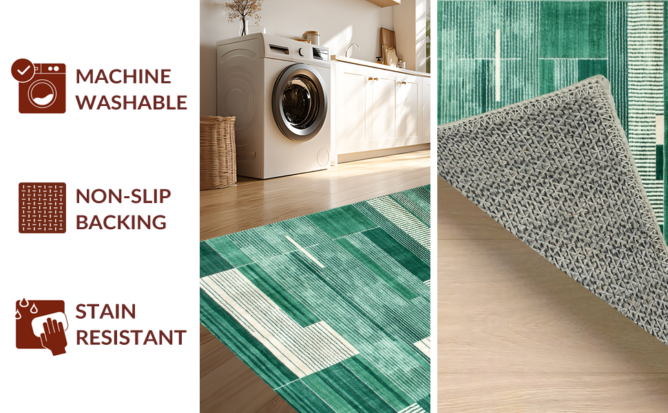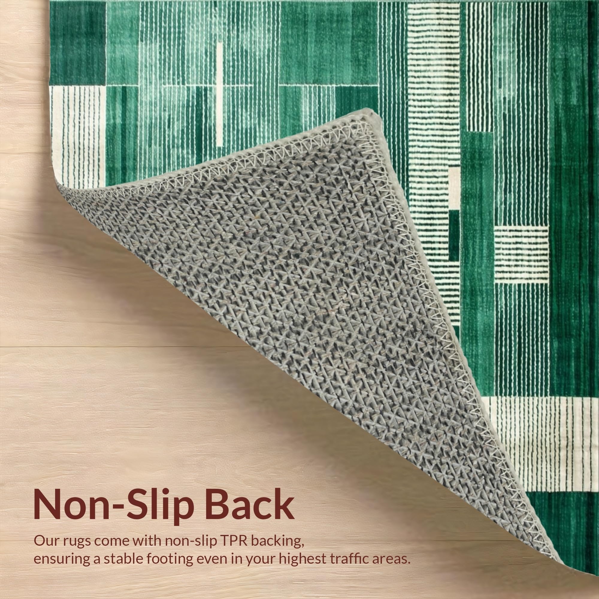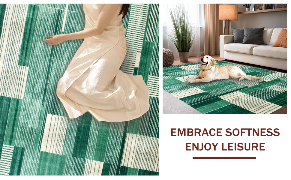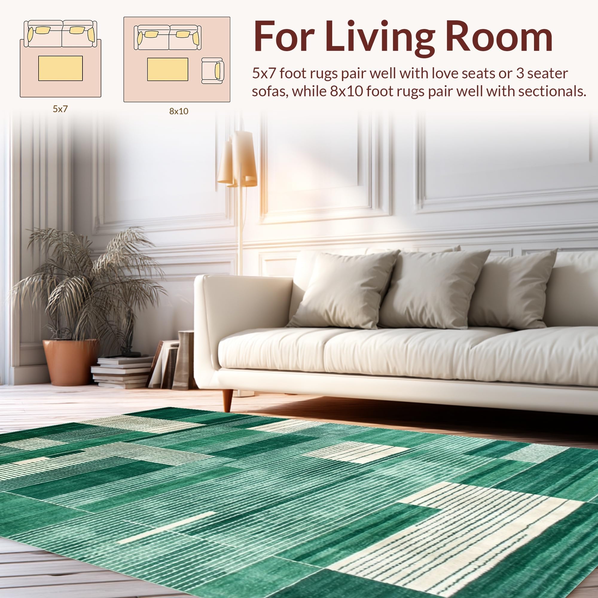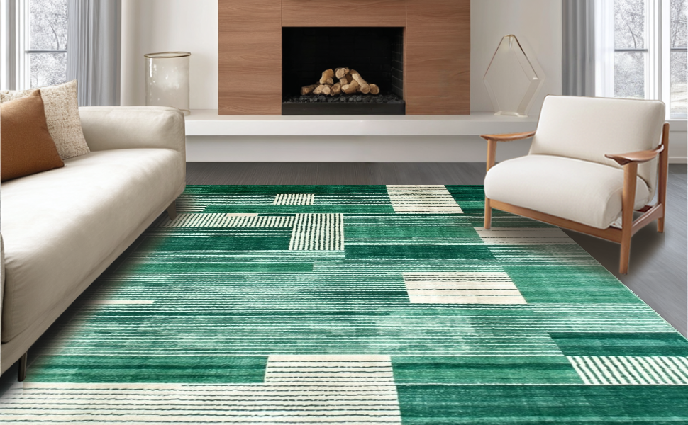 Ultra Soft Area Rug, Non Slip, Stain Resistant, Washable Area Rugs for Living Room, Bedroom, Chic Abstract Expressionist Motif(Green) Overview: